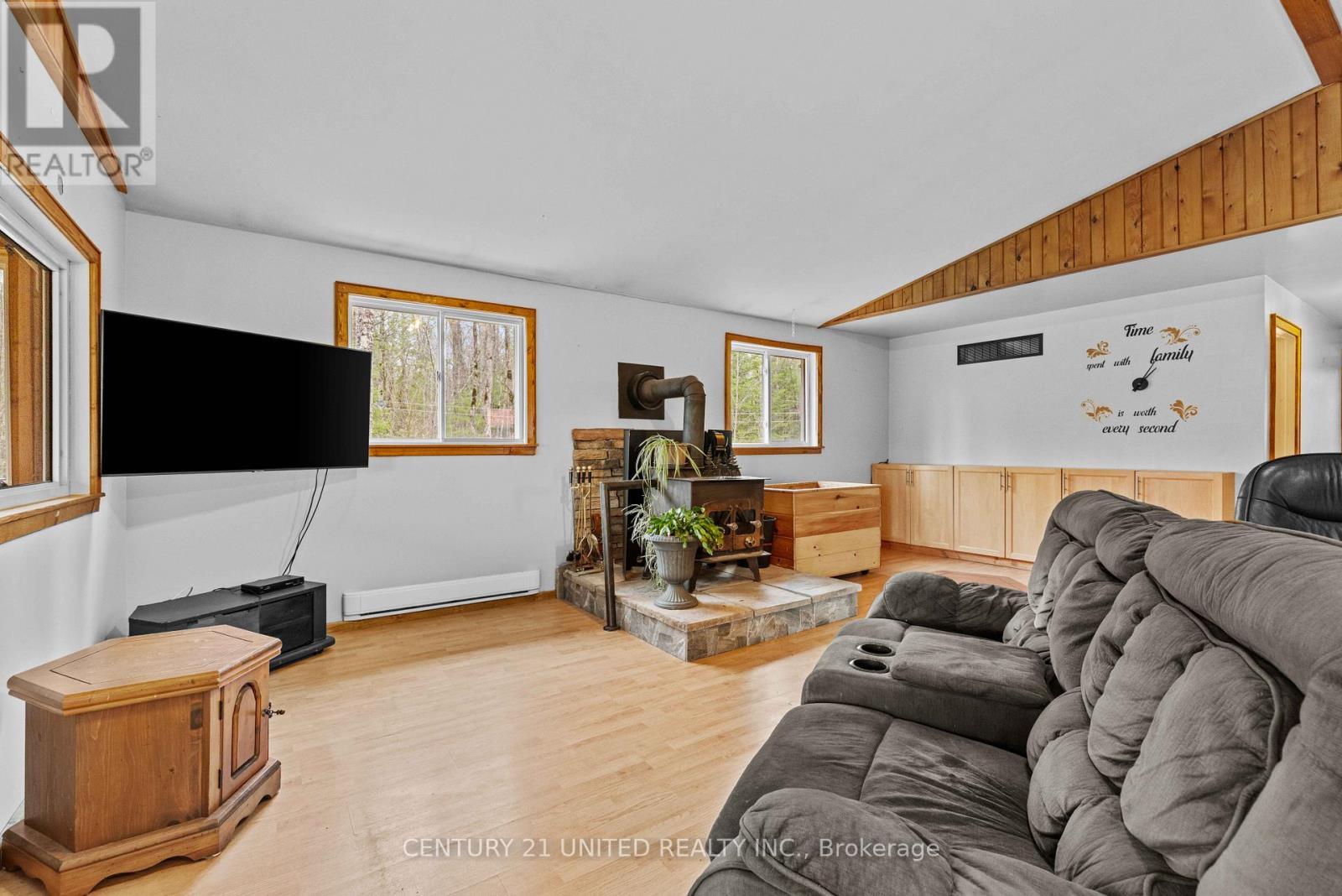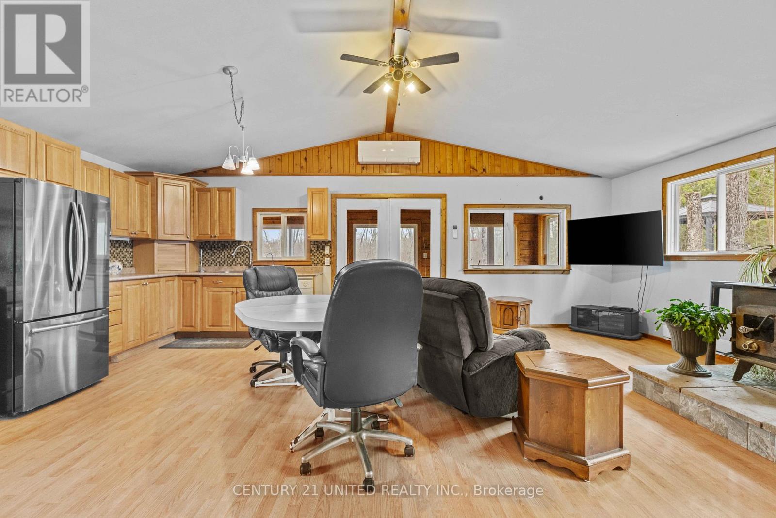 Set on just over 10 acres with waterfront access, this year-round property offers space, privacy, and the opportunity to create something truly your own, all within 20 minutes of the village. The home features an open-concept kitchen and living area with views of the water and a wood stove that adds warmth and character. With multiple high-speed internet options available, it's well-suited for those working from home or looking for a quieter setting outside of town.Step outside to the open space, mature trees, and abundant wildlife creating a peaceful backdrop, with plenty of room to explore, garden, or simply enjoy the outdoors. There's also a 24-ft above-ground pool for summer days, along with an insulated workshop, drive shed, and separate garage that provide excellent storage and flexibility for hobbies or recreational use. If you've been looking for acreage, privacy, and waterfront access with room to add value, this is an opportunity worth exploring. (id:43681)