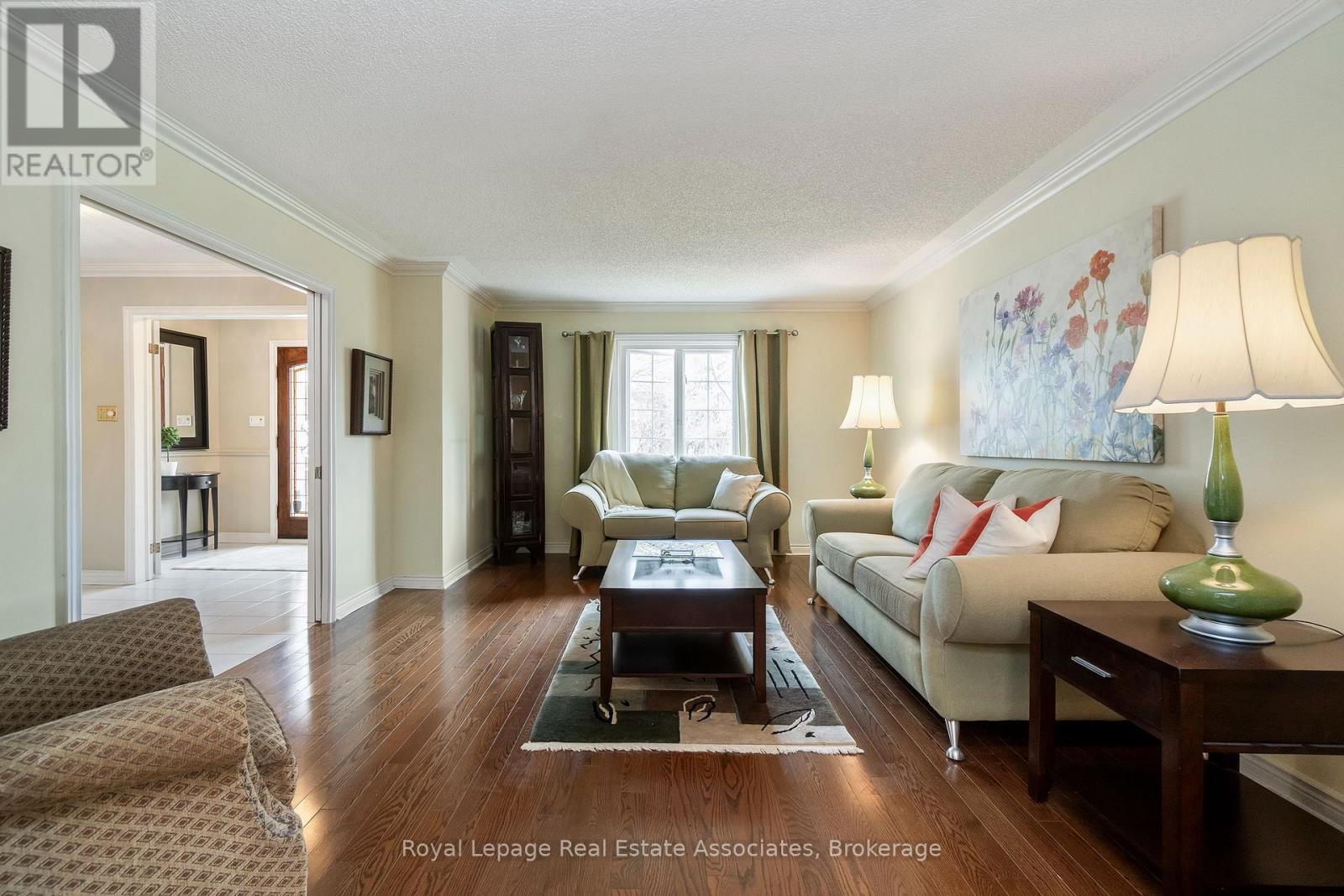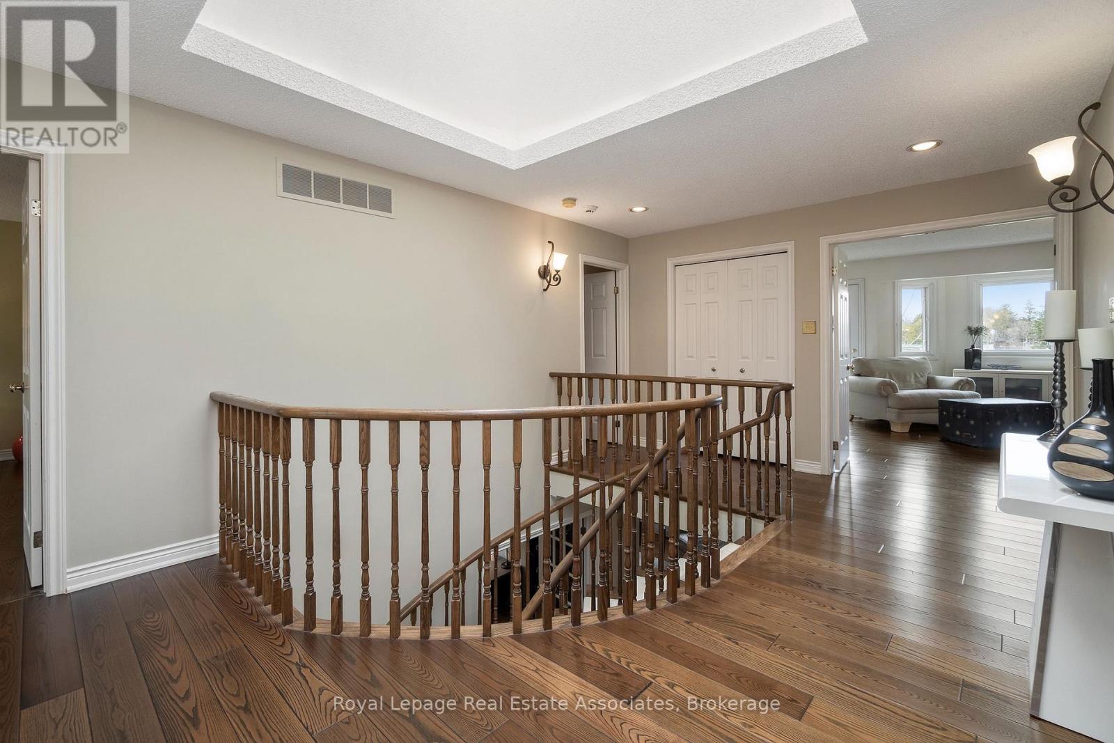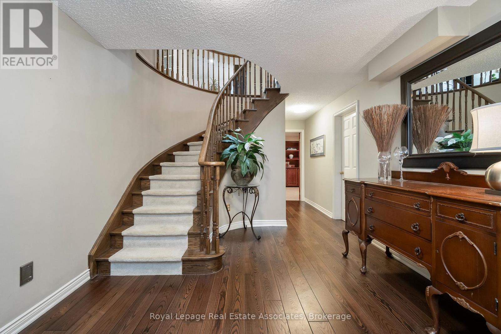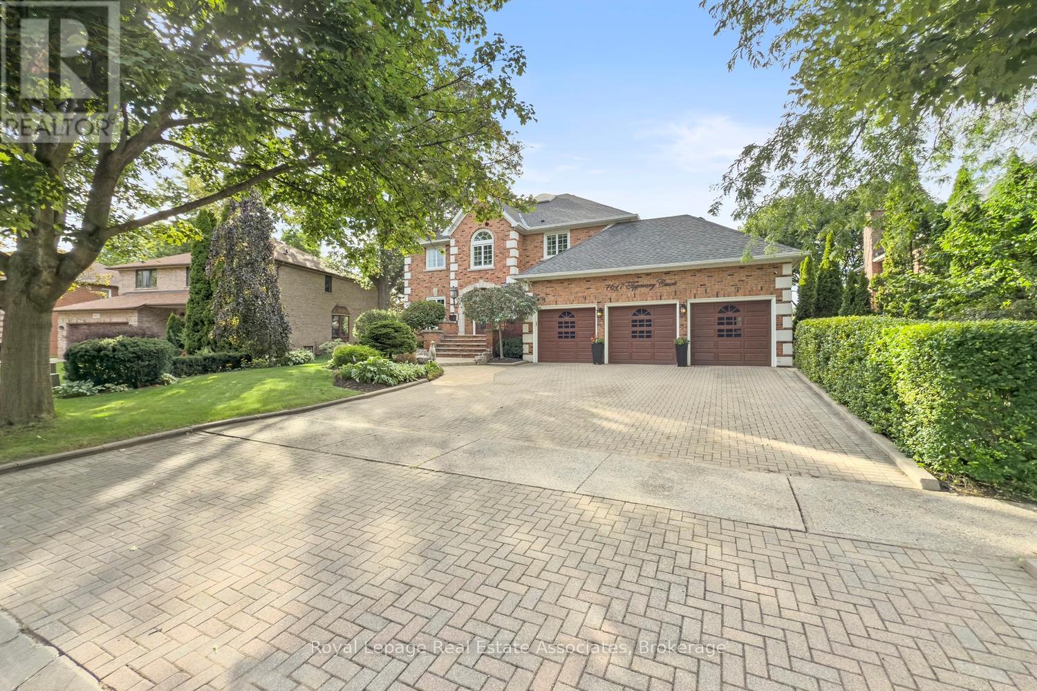 A truly rare offering in the prestigious community of Oakridge - located on a court and backing onto greenspace with complete privacy. This executive residence has never been offered for sale. Curb appeal, with an interlocking driveway, mature trees, lush landscaping, and an impressive three-car garage. Inside, 9ft ceilings through-out, and an impressive spiral staircase sets the tone for the elegance that unfolds throughout. Main level features, rich hardwood flooring, separate formal living and dining spaces, an oversized family room anchored by a beautiful gas fireplace, and a private Den ideal for a home workspace or future in-law suite. The Updated kitchen is illuminated by pot lights, Wall built-in, complete with a breakfast island, sliding doors that seamlessly walks out to the backyard retreat. Upstairs, the primary suite offers a private sanctuary with a reno'd spa-inspired five-piece ensuite, dual walk-in closets, and a serene balcony overlooking the lush backdrop. A striking Architectural Skylight floods the second floor with natural light. Three additional spacious bedrooms complete the upper level, with the third bedroom offering a private reno ensuite bathroom, and the fourth featuring a convenient semi-ensuite access. The finished lower level expands the living space with 9ft ceilings, large above-grade windows, an additional bedroom and bathroom, recreation area with Gas fireplace, Custom Recessed Shelving unit and bar, cold cellar, and flexible bonus space ready to be customized. There is an abundance of storage and space in this home, where the potentials are endless. Set on a premium pie-shaped lot, this backyard oasis offers an ideal retreat for entertaining, with an expansive deck in a secluded setting. True pride of ownership. Must see! Amenities, Hwy's, Go and Transit all around you. Walking distance to Mississauga Golf and Country Club. (id:43681)