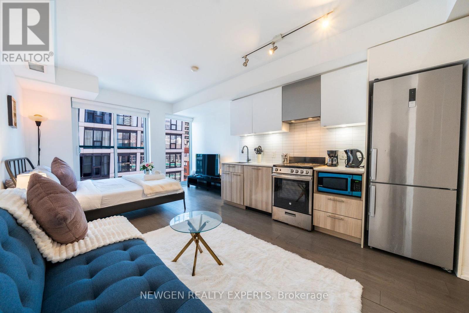$405.42 每月This functional studio suite is located in one of Toronto's vibrant downtown neighbourhoods. Conveniently situated within walking distance to Toronto Metropolitan University, George Brown College, TTC/Subway, Eaton Centre, St. Lawrence Market, and Massey Hall. The unit features an efficient open-concept layout with a modern kitchen including quartz countertops, backsplash, valence lighting, and stainless steel appliances, along with a contemporary bathroom. Large windows provide natural light and views toward the lake and Eaton Centre area. The building offers a range of amenities for residents, including a rooftop sky lounge, four rooftop gardens, multiple BBQ stations, a library, and additional common facilities. A well managed condominium building located close to shopping, dining, entertainment, and public transit. Short-term rentals may be permitted subject to condominium by-laws and municipal regulations. Buyers and agents to verify all details. (id:43681)