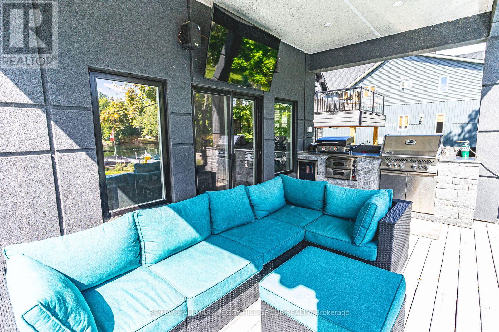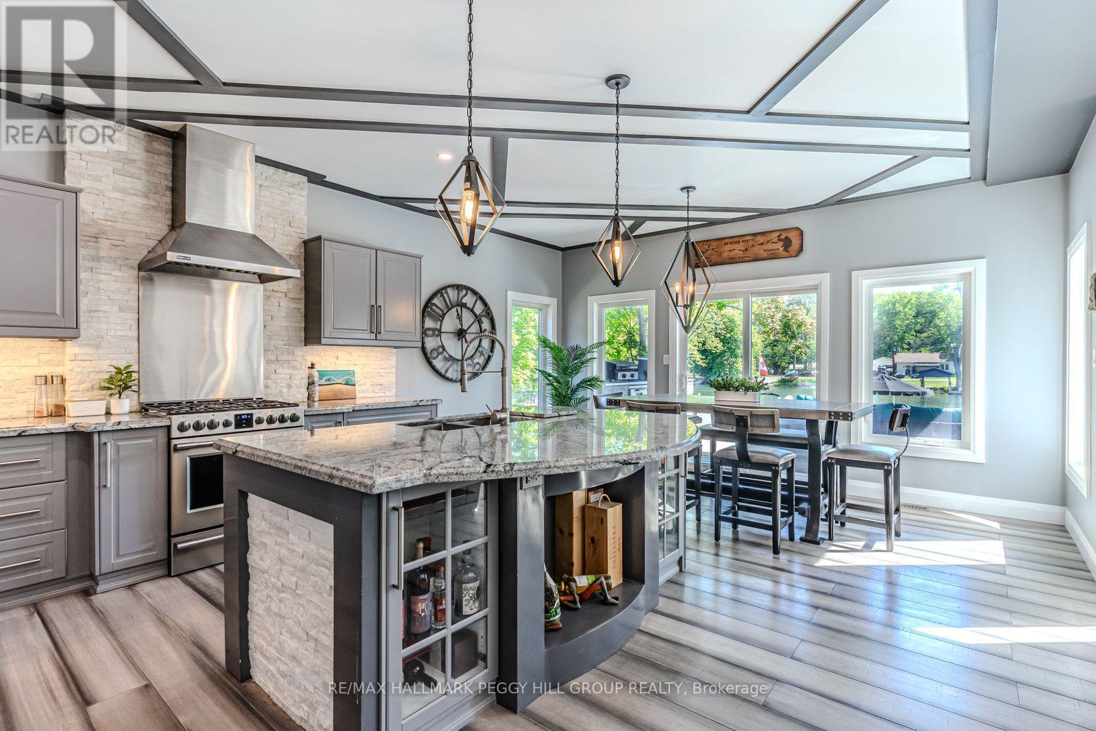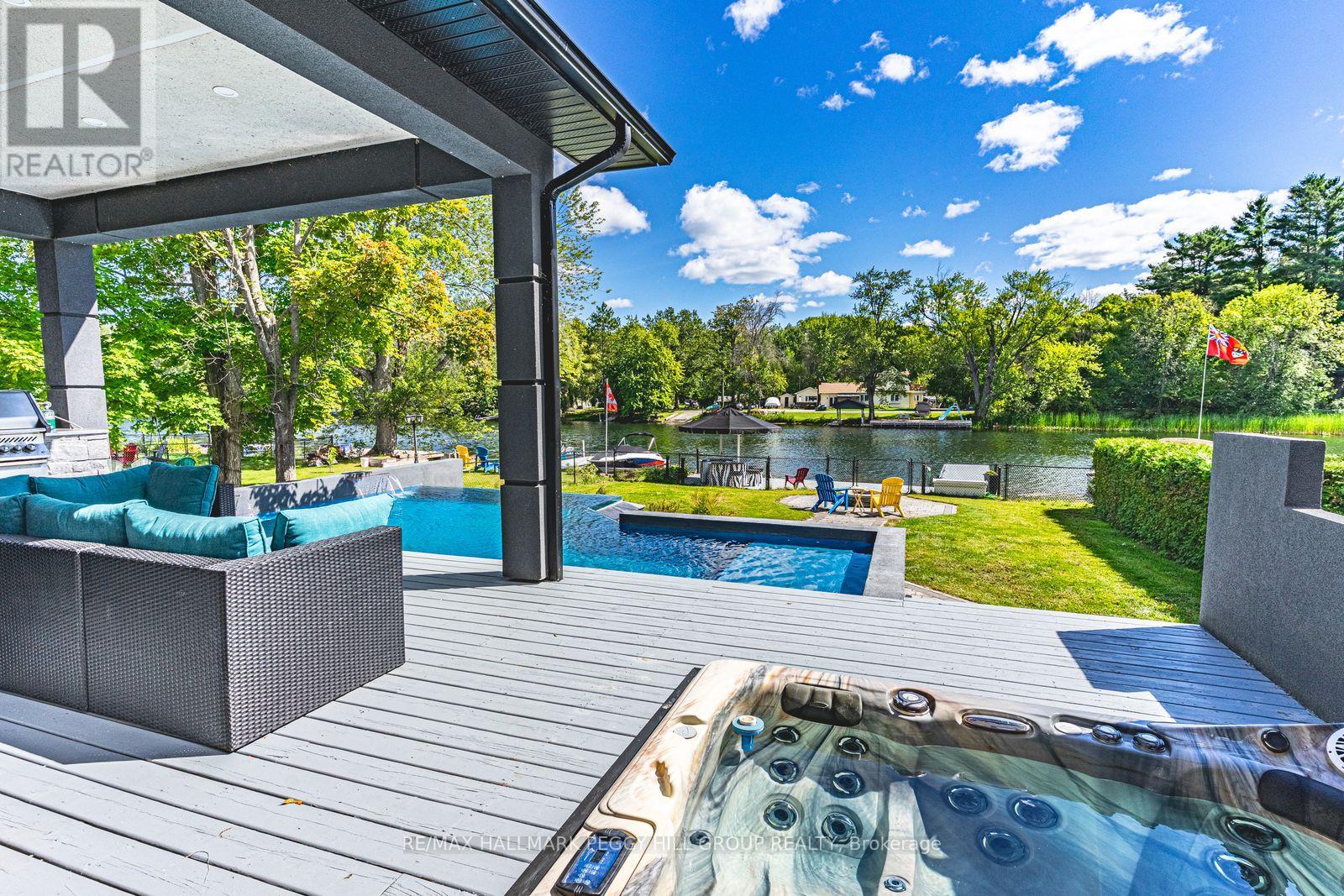 STRIKING ARCHITECTURE, WATERFRONT SERENITY, & ENDLESS LUXURY - A CONTEMPORARY MUSKOKA HAVEN WITH OVER 2,800 SQ FT OF STYLE! Welcome to a waterfront retreat with 50 feet of direct shoreline on the Trent Severn Waterway, where every day feels like a Muskoka getaway. Surrounded by lush forests, lakes, hiking trails, and golf courses, this location offers year-round adventure, with the Lauderdale Point Marina and Resort just steps away for waterside dining and boating convenience. Only 15 minutes to Washago and 25 minutes to Gravenhurst, the property balances peaceful seclusion with easy access to daily essentials. Striking curb appeal is showcased by bold modern architecture with rare imported stone, while the driveway and attached double garage provide parking for 10+ vehicles and toys. The private, fully fenced backyard has been transformed into a luxury resort with a heated pool, bubbling hot tub, outdoor TV, firepit lounge, and an outdoor kitchen, all overlooking a private dock with a jet ski ramp and the charming "Zebra Bar," a beloved landmark amongst the welcoming neighbours. Inside, 2,800+ sq ft of stunning living space offers open-concept flow, with a living area centred around a fireplace and a walkout to the deck, and a designer kitchen with an oversized island, professional gas stove, and custom lighting. The main level also features a versatile bedroom or office, a powder room, and a mudroom with garage entry. Upstairs, three bedrooms and a laundry room are enhanced by a flexible rec space, while the primary suite delivers a spa-like escape with panoramic lake views, a walk-in closet, and a 5-piece ensuite with a deep soaker tub and walk-in glass shower. Thoughtful upgrades, including dual 200-amp services, a Generac transfer switch, on-demand hot water, and a UV water treatment system ensure peace of mind for years to come. This is more than a #HomeToStay - it's a Muskoka waterfront lifestyle of luxury, leisure, and unforgettable memories! (id:43681)