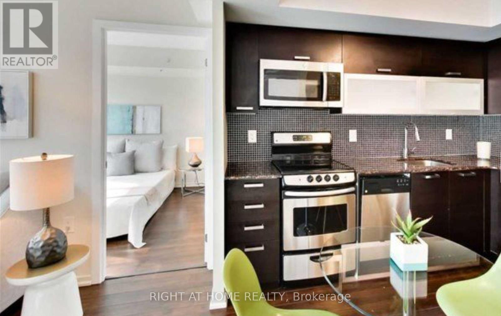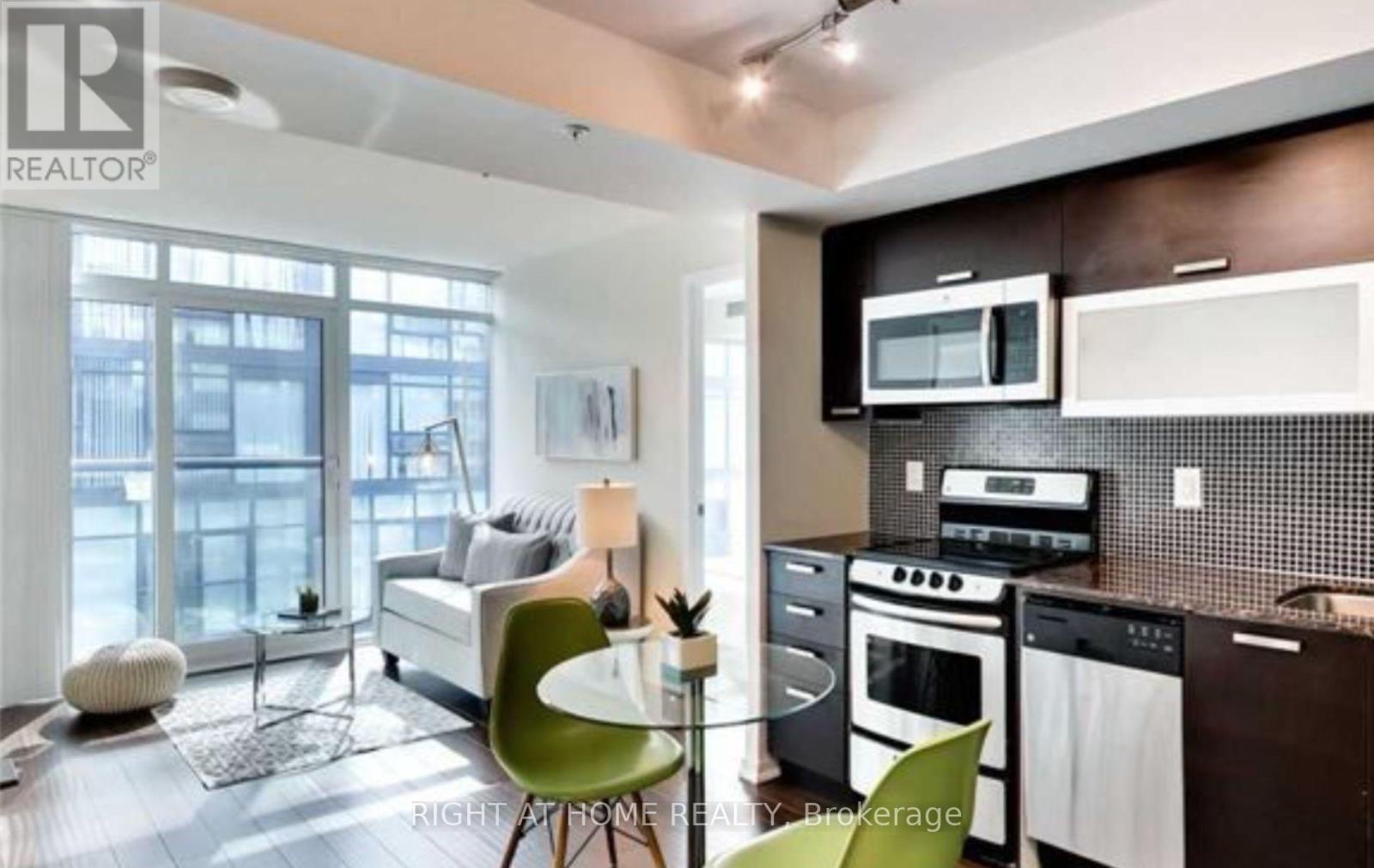 Step into this beautifully upgraded 2 bedroom condo featuring floor-to-ceiling windows in the living room and both bedrooms, filling the space with natural light. The modern open concept kitchen is designed for both style and function, complete with granite countertops, a sleek backsplash, and stainless steel appliances. Enjoy one of the best layouts in the building with laminate flooring throughout and the convenience of ensuite laundry. This unit includes both parking and a locker for added value and ease. Ideally situated in the heart of Little Portugal at Queen St W, you're just steps from vibrant shops, trendy restaurants, parks, nightlife, transit, and everyday amenities, offering the perfect balance of comfort and city living. (id:43681)