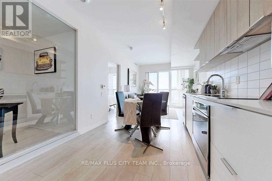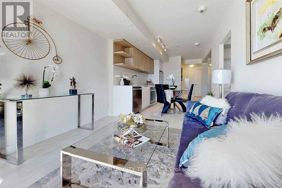 This bright and spacious 1-bedroom + den, 1-bathroom condo offers a modern, open-concept layout designed for comfortable everyday living. Floor-to-ceiling windows fill the space with natural light, while sleek laminate flooring adds a clean, contemporary touch throughout. The kitchen features stainless steel appliances, quartz countertops, and plenty of storage-perfect for both cooking and entertaining. The generously sized den offers flexibility, whether you need a home office, guest space, or even a second bedroom setup. Step out onto the private west-facing balcony and enjoy open views and beautiful sunsets. Residents have access to a range of amenities, including a fitness centre, party/meeting room, visitor parking, and 24-hour concierge service. BBQs are also permitted, making it easy to enjoy outdoor dining during warmer months. Ideally located, you're just steps from the future Crosstown LRT, making commuting simple and convenient. Daily essentials, shopping, and dining are all within walking distance, along with nearby parks and popular attractions. With quick access to the DVP, getting into downtown Toronto takes just minutes. *Photos are from the previous listing (id:43681)