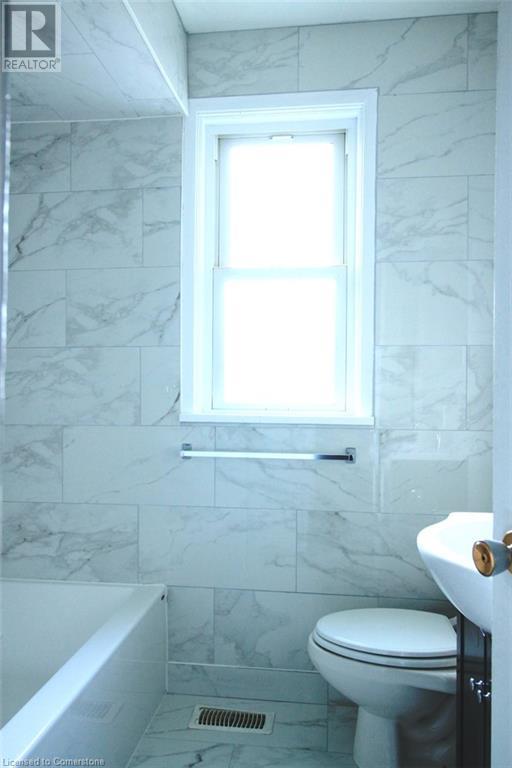Impressive renovated 3 bedroom main floor unit just minutes to hiway access, Juravinski Centre, public transit, schools and parks. Newly renovated kitchen with quartz counter tops and ceramic backsplash and porcelain tile floors. Hardwood flooring on main floor. Updated main bath with all new ceramics. Newly installed stackable laundry in the unit. Separate side entrance to lower level. Driveway parking for tenants. Main floor tenant to pay for 50% of utilities and has use of backyard. (id:43681)