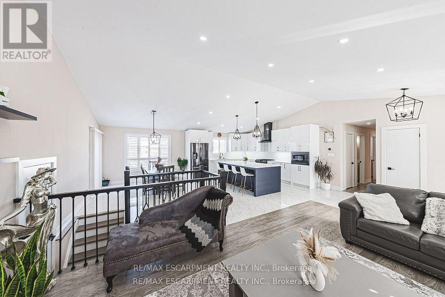 Welcome to this beautifully renovated bungalow nestled on a peaceful court, offering the perfect blend of country tranquility and urban sophistication. Situated on a sprawling 1.15-acre lot, this home boasts a modern design with an inviting open-concept layout, ideal for both relaxation and entertaining. Step inside to discover a bright and airy living space, highlighted by a large kitchen island, sleek finishes, and stylish fixtures. The main floor features three spacious bedrooms and two full bathrooms, providing comfort and convenience for the whole family. Downstairs, the fully finished basement offers additional living space with two more bedrooms, a cozy family room, a dedicated office space, and another full bathroom - perfect for guests or extended family. Outside, enjoy the best of both worlds with a heated 2-car garage, a large built storage shed, and a chicken coop providing fresh eggs daily. The property also features a picturesque small pond, adding to the serene outdoor setting. Located just minutes from urban amenities yet surrounded by nature. (id:43681)