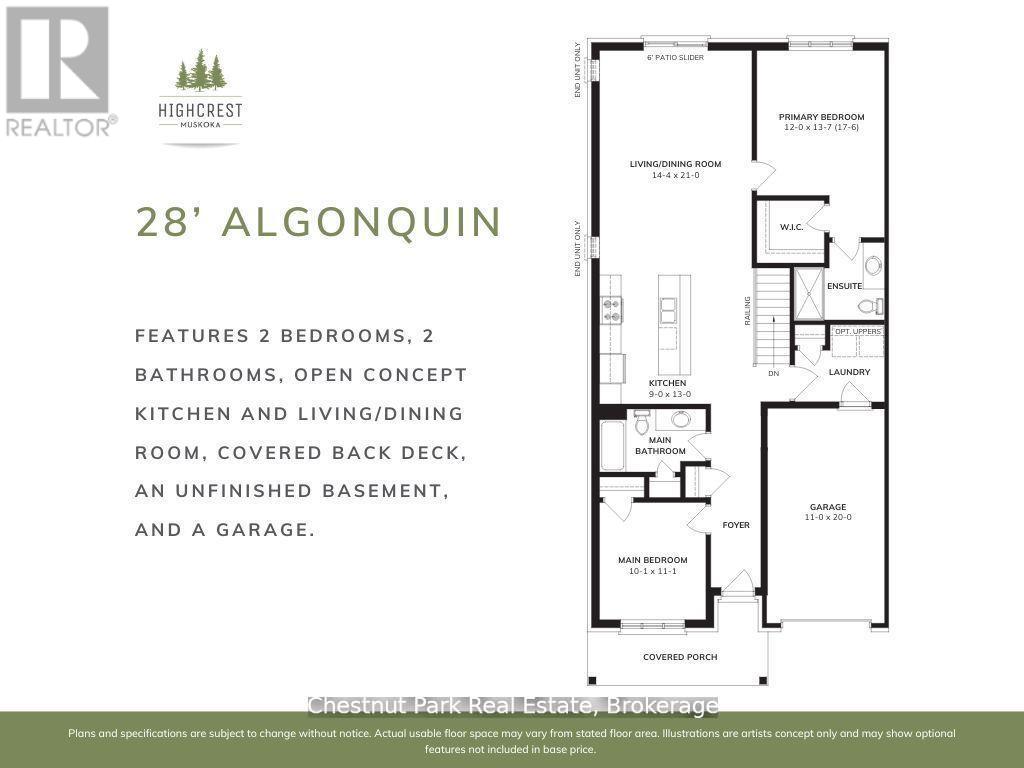 This is your opportunity to save big with the new HST rebate announcement!* Welcome to the newest phase of bungalow towns along Pine Needle Way, located in the coveted Highcrest transitional community. As part of Highcrest, Huntsvilles hidden gem, 16 Pine Needle Way is part of the active living community, which is conveniently located in-town within walking distance from restaurants, shopping, and the gorgeous Muskoka landscape. Excitingly, residents of this community will soon have access to amenities at The Ridge, including a fitness centre, indoor and outdoor kitchen and dining areas, an outdoor terrace, and a resident's lounge, adding even more value to this vibrant community. 16 Pine Needle Way offers two bedrooms and two baths, an unfinished full basement with option to finish it, boasts high-quality upgrades such as quartz counters, engineered hardwood flooring, and premium cabinetry, all of which add comfort and style. The covered private deck, offers a tranquil retreat overlooking greenery, ensuring moments of relaxation and rejuvenation. Solid composite exterior siding complimented with stone accents wraps all the way around the home. With completion expected for Summer 2025, this exceptional property awaits its discerning owner to choose its finishes and upgrades. Come and experience the perfect blend of luxury and comfort at 16 Pine Needle Way, presented by Edgewood Homes. Taxes are not yet assessed but are estimated to be between $4500 and $5500 based on similar properties. *Listing price includes announced HST rebate effective April 1st, 2026, pending legislation. (id:43681)