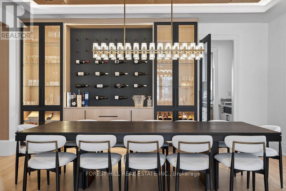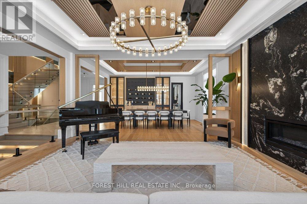 **Truly Spectacular**Architectural-Masterpiece**Step Into A Realm Of Contemporary Opulence Where LUXURY Seamlessly Meets Functionality(Blending Lavish Materials & Sumptuous Interiors That Epitomize In Luxurious Modern Living For Your Family----Ultimate Comfort & Impeccably Detailed Stylish/Remarkable Home-----Every details has been meticuopusly curated)**This Beauty Is Majestically Poised, and Spacious Living of 4,831 Sq.Ft(1st/2nd Flrs) + Prof. Finished W/O Basement(Appox 7,000 Sq. The Main Floor Offers Spaciously-Designed, Herringbone floor in hallway& Office, Solid brass inlay in the floor, Open Concept Living & Dining Rooms, this home's elegant-posture & airy atmosphere. Extra wide Custom Staircase The Dream Gourmet Kitchen Provides 2 Kitchens for a Chef's Kitchen + a Wok Kitchen, Perfect For Hosting of Guests and Daily Cooking for your family. Seamlessly flowing, the family room, with a gas fireplace and Walk out balcony, West facing welcomes endless natural sunlight. 3Level-Elevator . Upstairs A Serene Retreat-Prim Bedrm W/2W-In Closets & All Bedrm Has Own Ensuite(HEATED FLR) & Generous/Lavish W/I Closets. The Gracious Bedrooms Have Own Ensuites for Privacy and Functionality. The Impressive Lower Level Offers Endless Possibilities, Including a Large Rec Room, a Home Movie Theatre and an Additional Bedroom***TOO MANY Opulent FEATURES--A PRIVATE ELEVATOR--HEATED FLOOR BASEMENT--HEATED FLR(ALL WASHROOMS)--HEATED FLR(FOYER)--Perfect For Cozy MOVIE Night THEATRE W/ EUROPEAN CARPET,2FURNACES/2CACS---European Plumbing fixtures(Kitchens,Bar, Washrooms)---Intensive All---Expansive Entertainment Area Rec Rm W/HEATED FLR & Luxury Wet Bar & Movie-Theatre & Nanny's Rm W/3Pcs Ensuite & 2nd Laundry Rm & Extensive use of Natural Stone & Home automation system(Lights fixture/ Thermostat/Security Camera/B/I Speakers )In ground sprinklers***Top-Ranked School-- Earl Haig SS*** (id:43681)