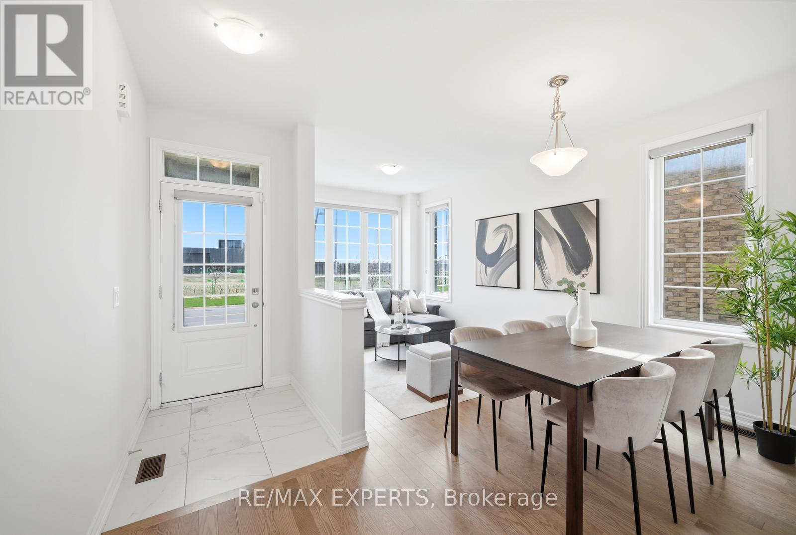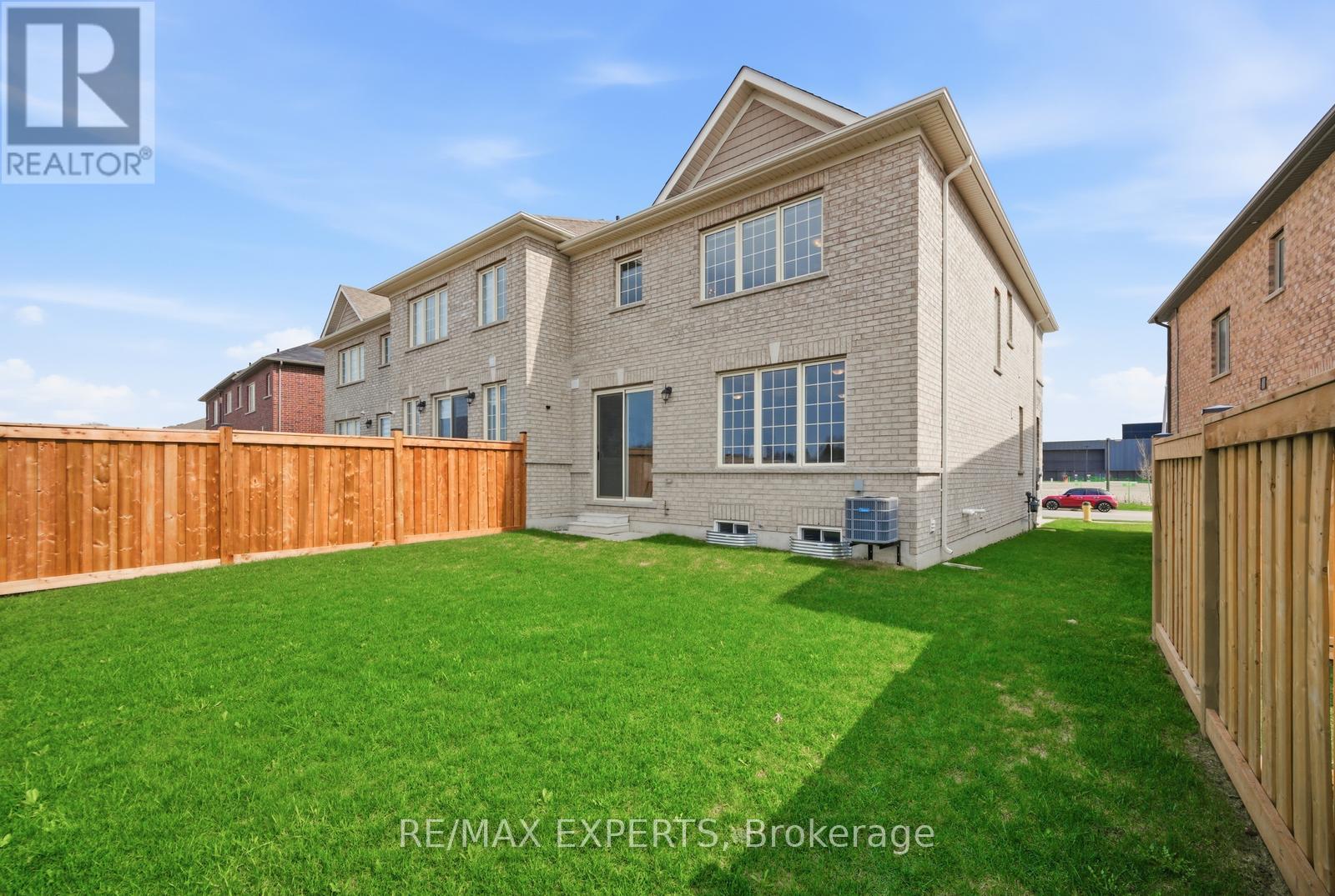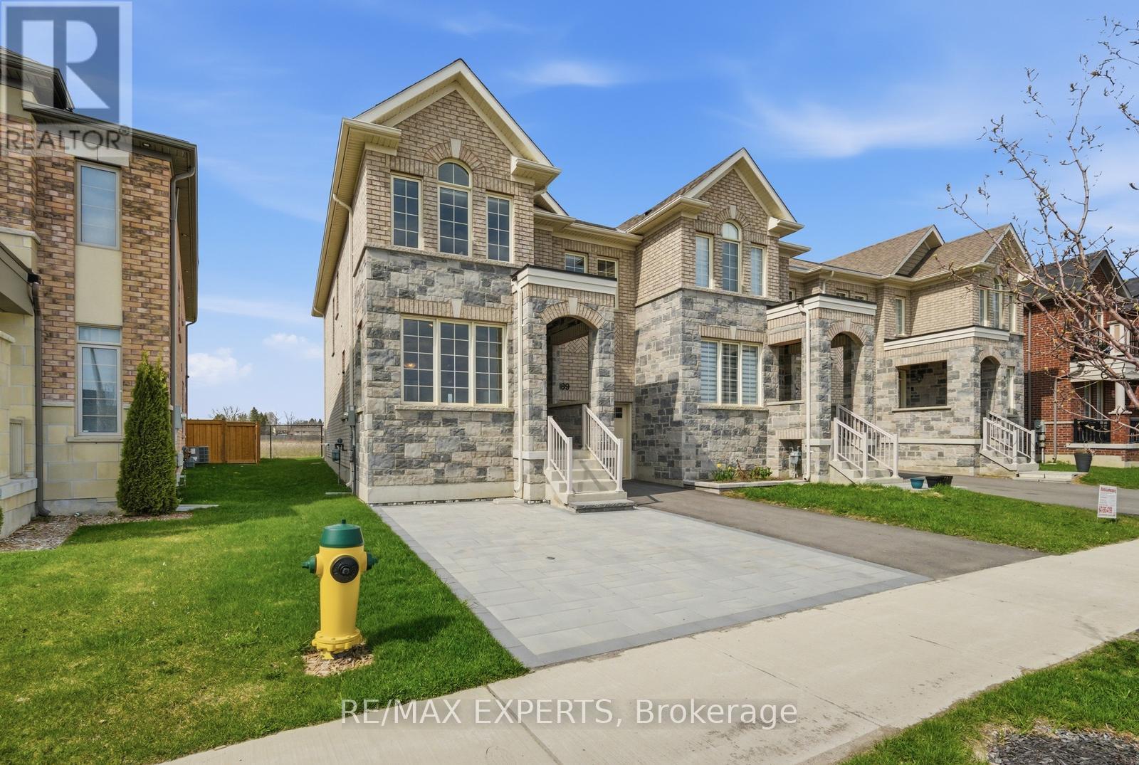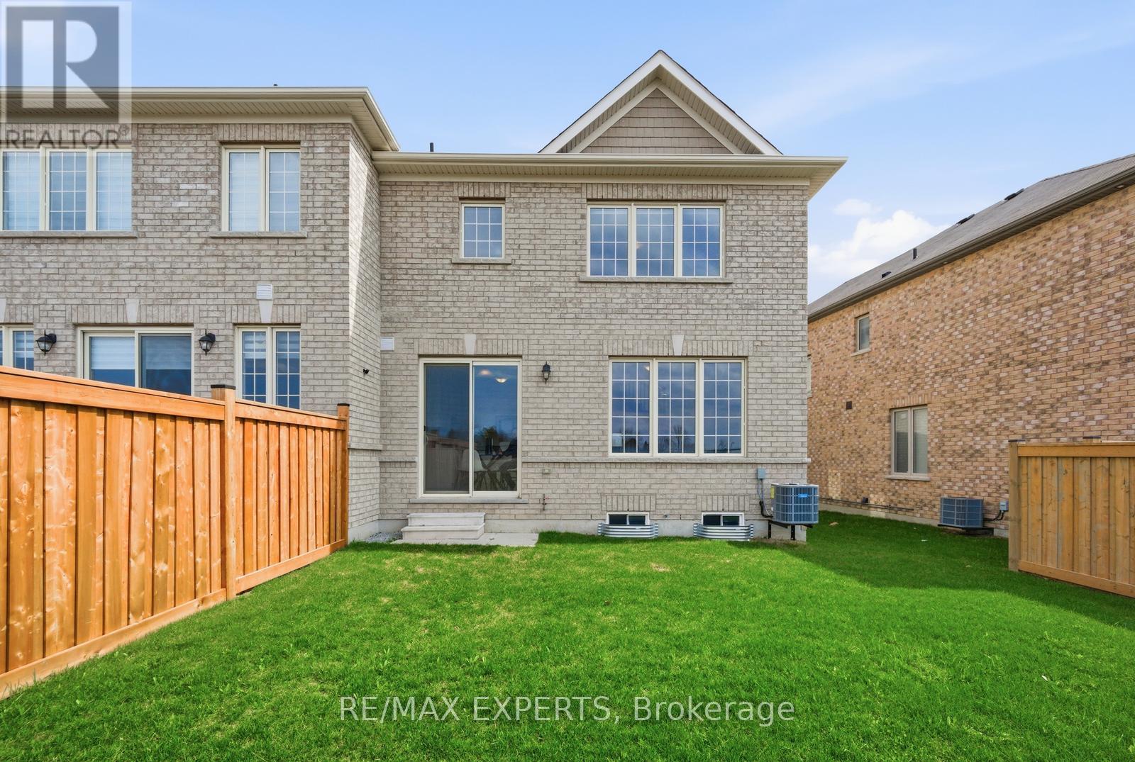 Rarely offered modern and elegant end unit freehold townhouse with a stunning stone and brick façade, offering nearly 2,000 sq ft of above grade living space with a spacious and functional layout including living, dining, and family rooms, three large bedrooms, and convenient upper level laundry. This bright home features 9 ft smooth ceilings on the main floor, a beautiful white kitchen, and no carpet throughout. The large primary bedroom includes a walk in closet and a spacious ensuite with a glass shower. Enjoy an interlocked driveway extension with extra parking, a generous 35 ft wide rear, and a large private backyard with no rear neighbours, perfect for relaxing and entertaining. The unspoiled basement offers endless potential. Ideally located close to parks, schools, shopping, the GO Station, Hwy 404, and just steps to the brand new state of the art Community Health and Active Living Plaza, adding exceptional convenience and long term value to the neighbourhood. A must see! (id:43681)