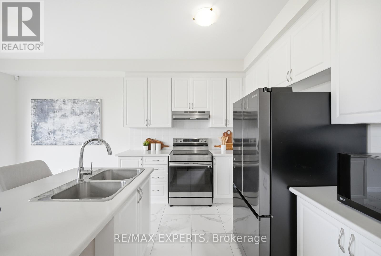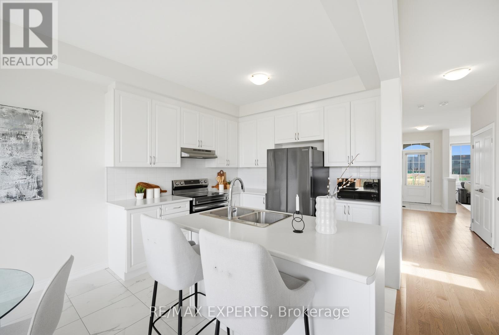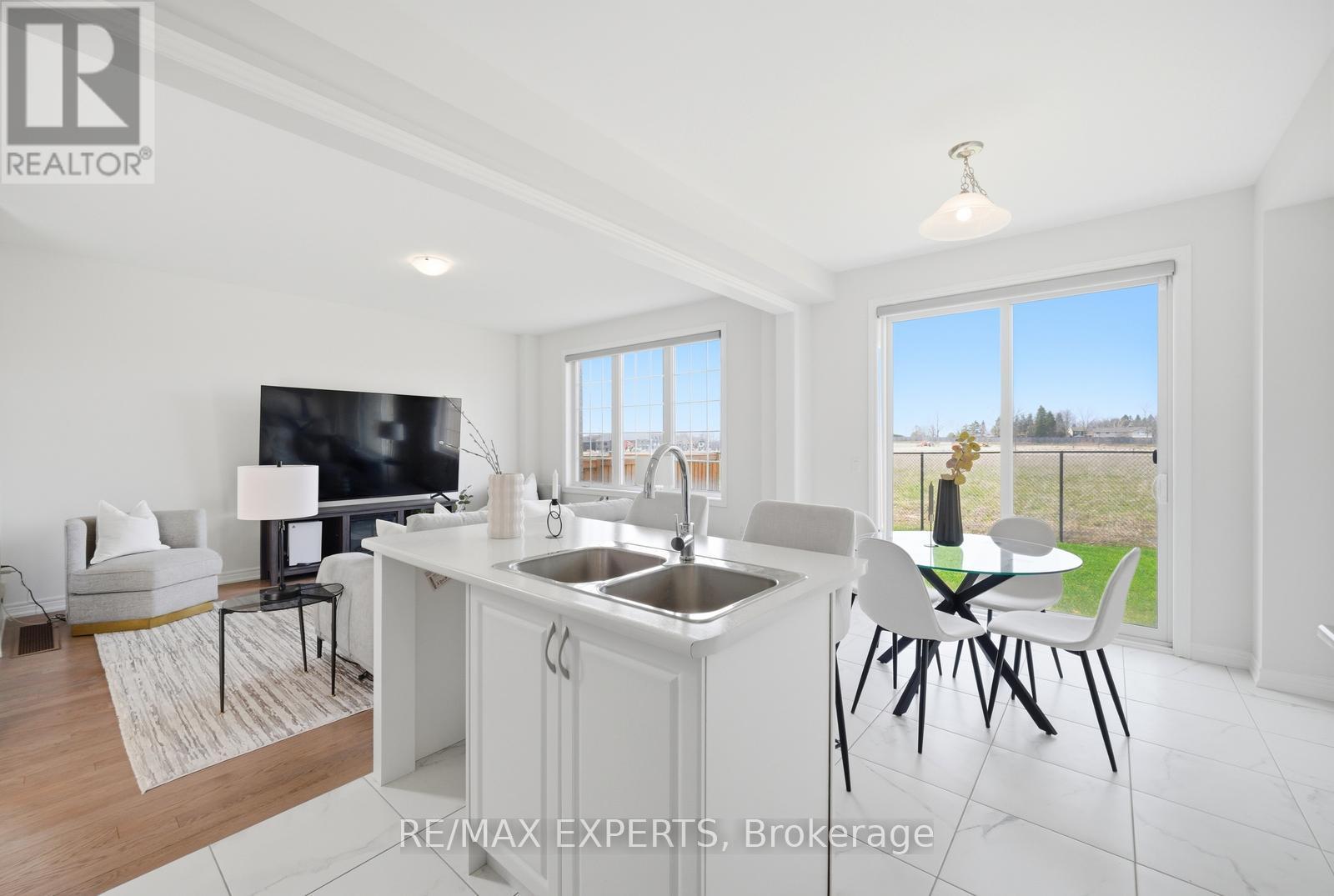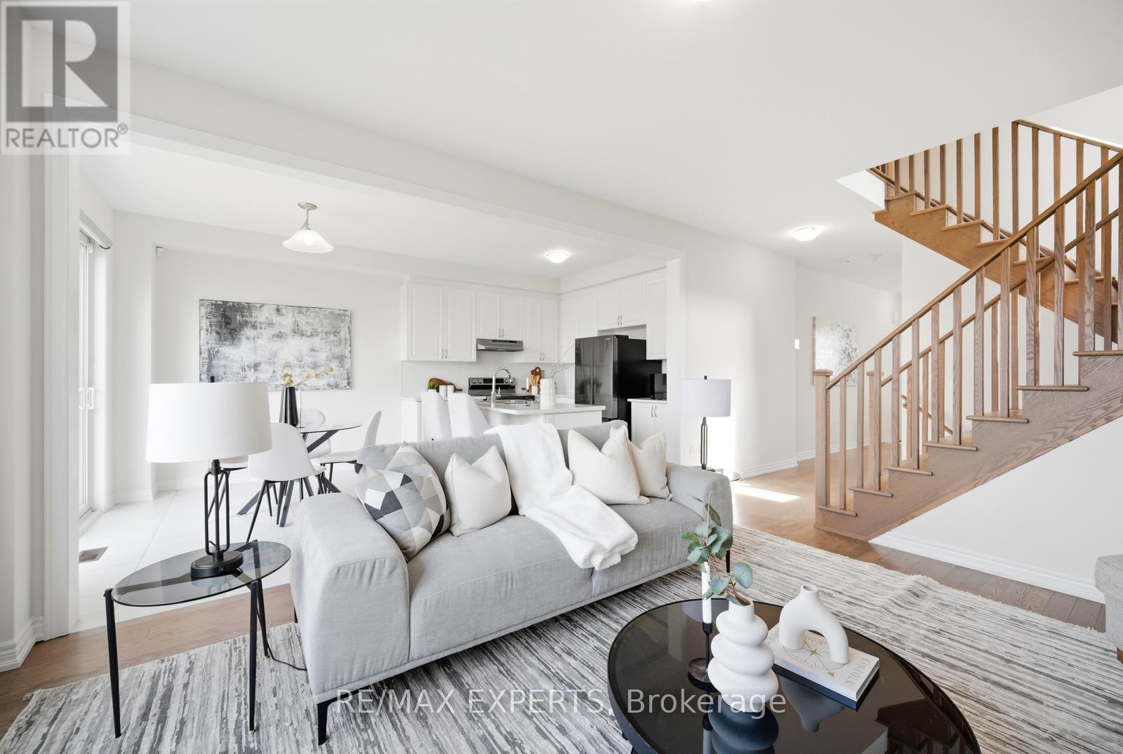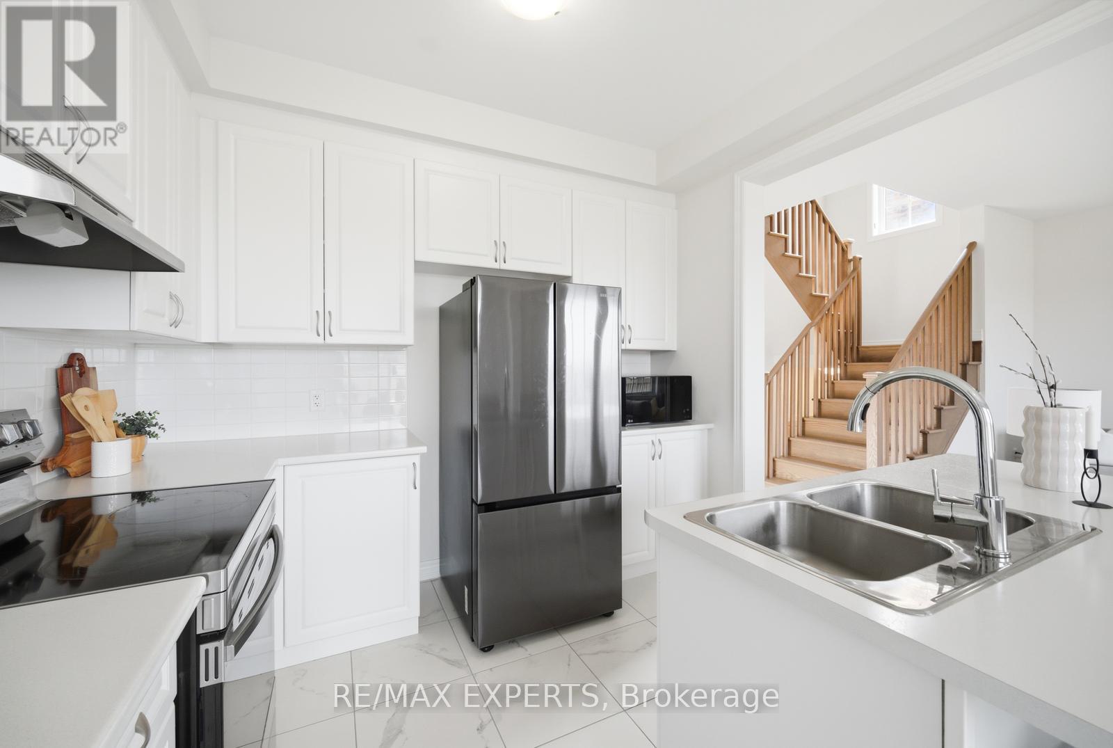 Rarely offered modern and elegant end unit freehold townhouse with a stunning stone and brick façade, offering nearly 2,000 sq ft of above grade living space with a spacious and functional layout including living, dining, and family rooms, three large bedrooms, and convenient upper level laundry. This bright home features 9 ft smooth ceilings on the main floor, a beautiful white kitchen, and no carpet throughout. The large primary bedroom includes a walk in closet and a spacious ensuite with a glass shower. Enjoy an interlocked driveway extension with extra parking, a generous 35 ft wide rear, and a large private backyard with no rear neighbours, perfect for relaxing and entertaining. The unspoiled basement offers endless potential. Ideally located close to parks, schools, shopping, the GO Station, Hwy 404, and just steps to the brand new state of the art Community Health and Active Living Plaza, adding exceptional convenience and long term value to the neighbourhood. A must see! (id:43681)