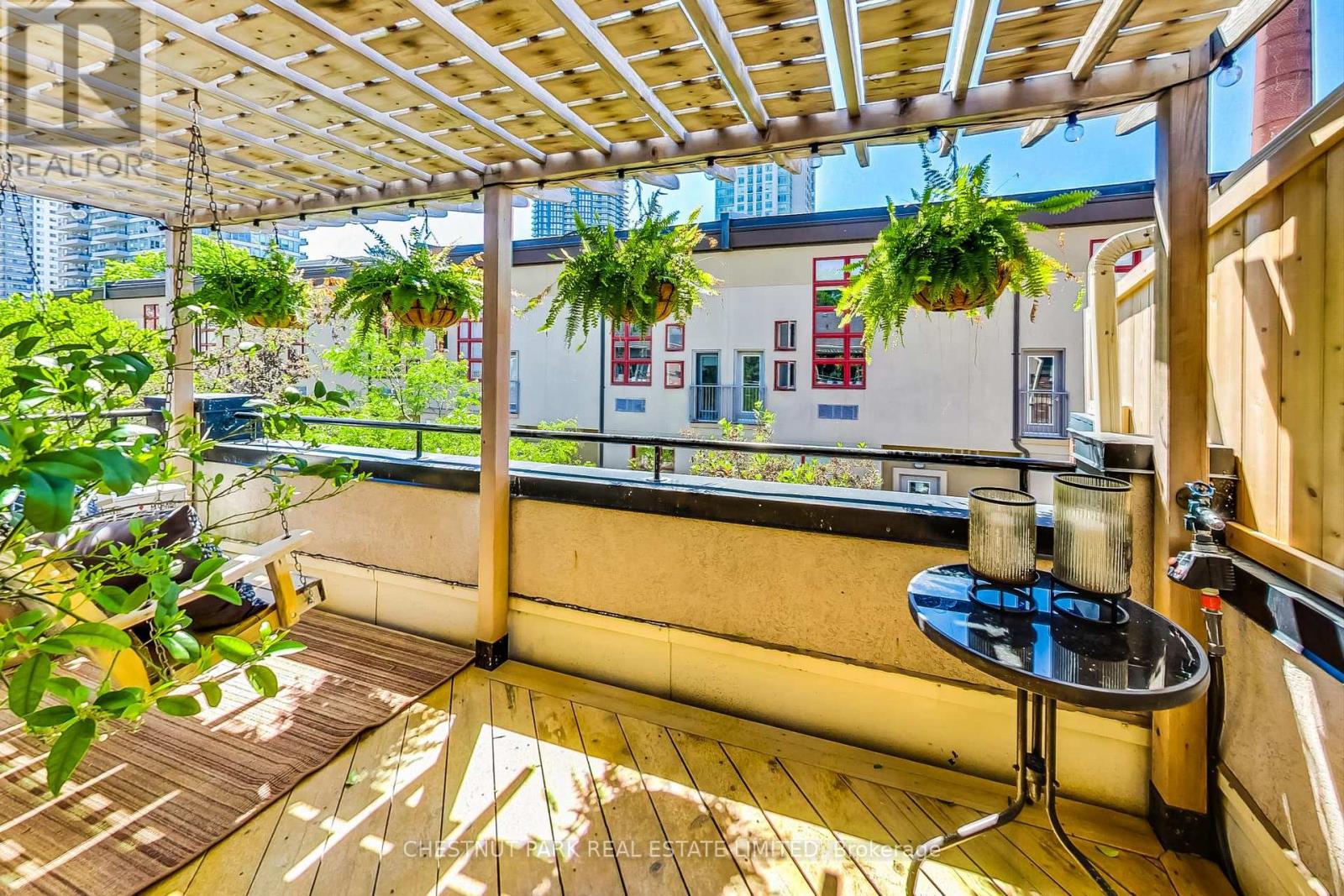 $961.82 每月This immaculate condo townhouse discretely tucked away on tree-lined Earl Street is the prefect spot for anyone seeking low-maintenance living (imagine not having to shovel snow!) coupled with the space and footprint of a house. Beaming with natural light, upgraded finishes and thoughtful touches throughout, this one is really, truly turnkey with over 2198 square feet of living space spread across four levels. Meticulously updated from top to bottom, this sun-soaked end-row townhouse will surprise you with both the level and the quality of tasteful, intentional and organized living. Truly, no detail has been overlooked. Start with the bright white kitchen featuring stainless Miele appliances and heated floors. Step outside and enjoy summer evenings on the cedar deck featuring a built-in Napoleon barbecue and custom cedar planters and flower boxes. Just upstairs are three more bedrooms with hardwood floors, two with double closets and a brand-new four-piece bathroom with heated floors. On the upper level, the primary retreat awaits, featuring a five-piece ensuite, designer marble-topped built-ins, motorized blinds, a large walk-in closet, and a walkout to a dreamy private terrace complete with cedar deck, cedar pergola and hanging swing bench. On the lower level, a full-sized laundry room, two storage rooms, and a direct access walkout to the self-contained private garage within the complex's underground garage. Interior garage is pre wired for an EV charger. This one is not to be missed! (id:43681)