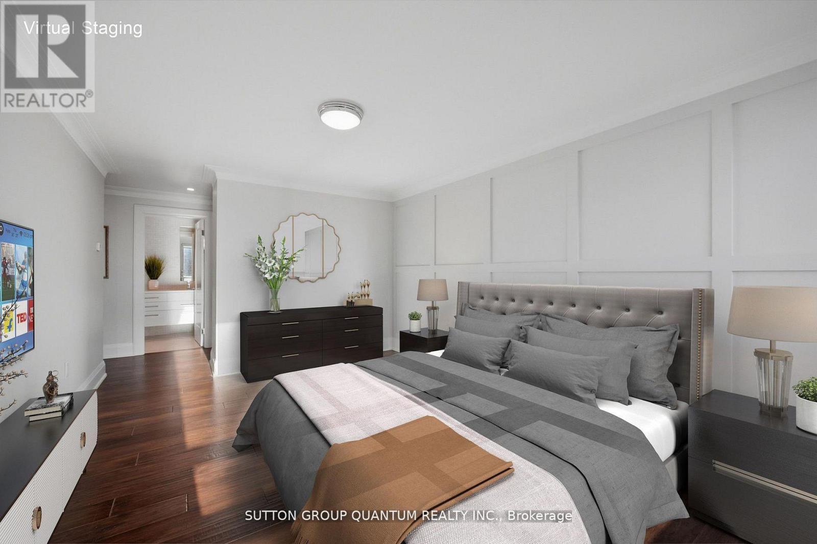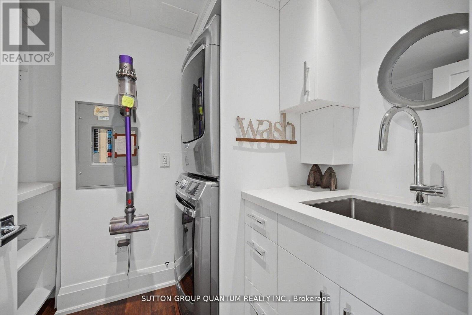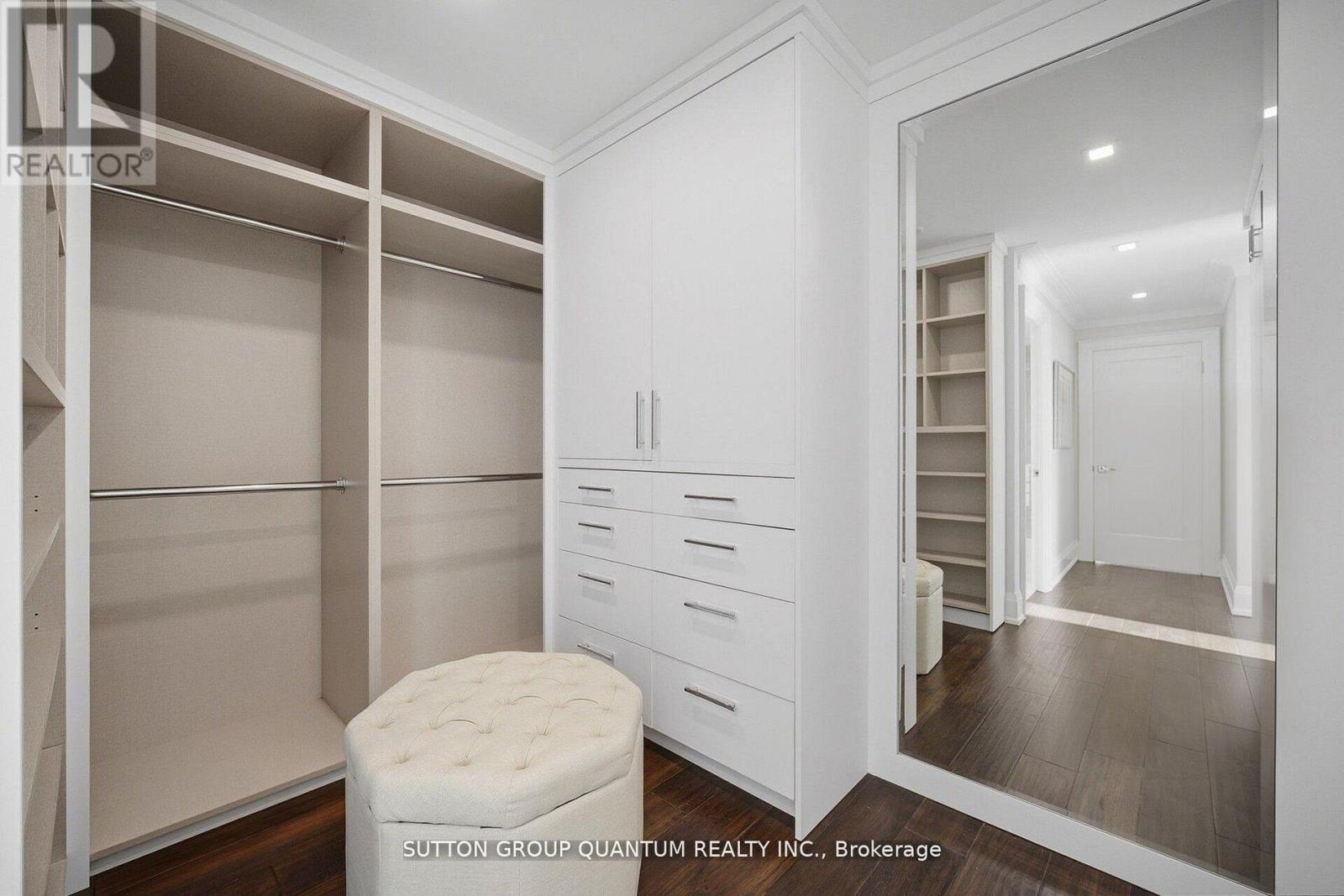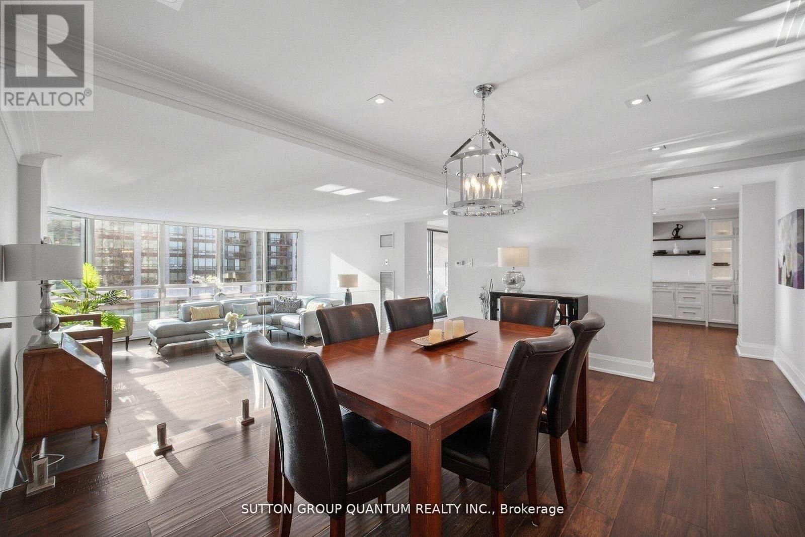Completely renovated luxury condo in the prestigious Ennisclare II on the Lake, showcasing exceptional craftsmanship and high-end finishes throughout. This exquisite 2-bedroom, 2-bath residence offers elegant living space designed for comfort, convenience, and entertaining. The airy layout features hardwood floors throughout, smooth ceilings, crown moulding, custom millwork, 8 inch baseboards, glass railings, pot lights, floor-to-ceiling windows, motorized blinds integrated with home automation. The gourmet kitchen includes quartz countertops, designer backsplash, premium stainless steel appliances, hidden built-in microwave, extensive cabinetry, pot drawers, built-in organizers, glass display cabinets with accent lighting, and an eat-in breakfast area overlooking the family room. Spacious family room with floor-to-ceiling sliding doors walks out to a balcony offering breathtaking, lake views. Formal living and dining area features large picture windows and elegant architectural detailing. The primary bedroom retreat offers a custom feature wall, and an expansive walk-in closet. Spa-inspired ensuite includes a double vanity with quartz counters and a stand-alone shower. Generous second bedroom, additional 3-piece bath, and convenient ensuite laundry with sink and storage complete the suite. Includes one underground parking space equipped with a Level 2 EV charger and access to a private locker. Residents enjoy resort-style amenities including 24-hour gated security, indoor pool, hot tub, sauna, fitness and yoga studios, tennis and squash courts, party and games rooms, library, golf driving range, woodworking and art studios, car wash, and terraced gardens and private access to the public walkway and paths along the lake and a clubhouse overlooking Lake Ontario. Ideally located steps to Bronte Harbour, Lake Ontario, waterfront trails, parks, boutique shopping, dining, QEW, and transit. Must be seen! (id:43681)