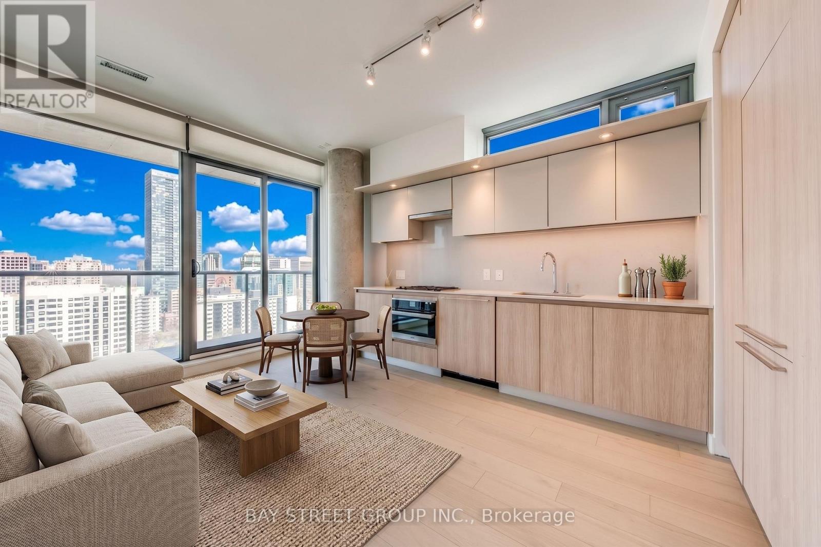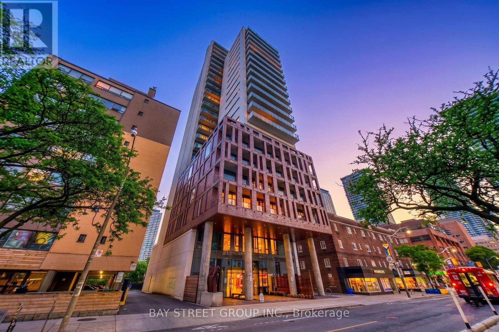 Welcome to Eighty One Wellesley - An Exquisite Contemporary Condo In The Heart Of Downtown Toronto's Vibrant Church-Wellesley Village! This bright and spacious 1-bedroom suite offers 556 sq ft of thoughtfully designed living space plus a full-size balcony with unobstructed city views - a rare find in one of the city's most walkable and sought-after neighbourhoods. | SUITE FEATURES: 9 ft smooth ceilings throughout | Floor-to-ceiling windows flooding the space with natural light | Laminate flooring throughout | Open concept living and dining layout | Generous bedroom with mirror closet and ample natural lighting | Luxuriously fully tiled bathroom with wall-mount toilet | In-suite front load washer and dryer | Full-size balcony with BBQ gas line and stunning northern city views. | GOURMET KITCHEN: High-end integrated Miele and Gaggenau appliances | RARE gas cooktop - perfect for the serious home chef | Quartz countertops and backsplash | Sleek cabinetry with contrasting colour palette for a modern, elevated aesthetic. | BUILDING AMENITIES: 24-hour concierge and security | Fully equipped gym | Party and meeting room | Recreation room | Rooftop terrace with open-air BBQ | And much more! | UNBEATABLE LOCATION: Walk Score of 98 - steps to Wellesley Subway Station and Yonge Street | Minutes to University of Toronto, Toronto Metropolitan University, and major hospitals | Close to Eaton Centre, top restaurants, cafes, grocery stores, shopping, and green spaces | Situated in the dynamic and lively Church-Wellesley Village, one of downtown Toronto's most vibrant and desirable communities. | This is your incredible opportunity to own a luxurious slice of the 416 and experience the dynamic downtown Toronto lifestyle. Don't miss it! (id:43681)