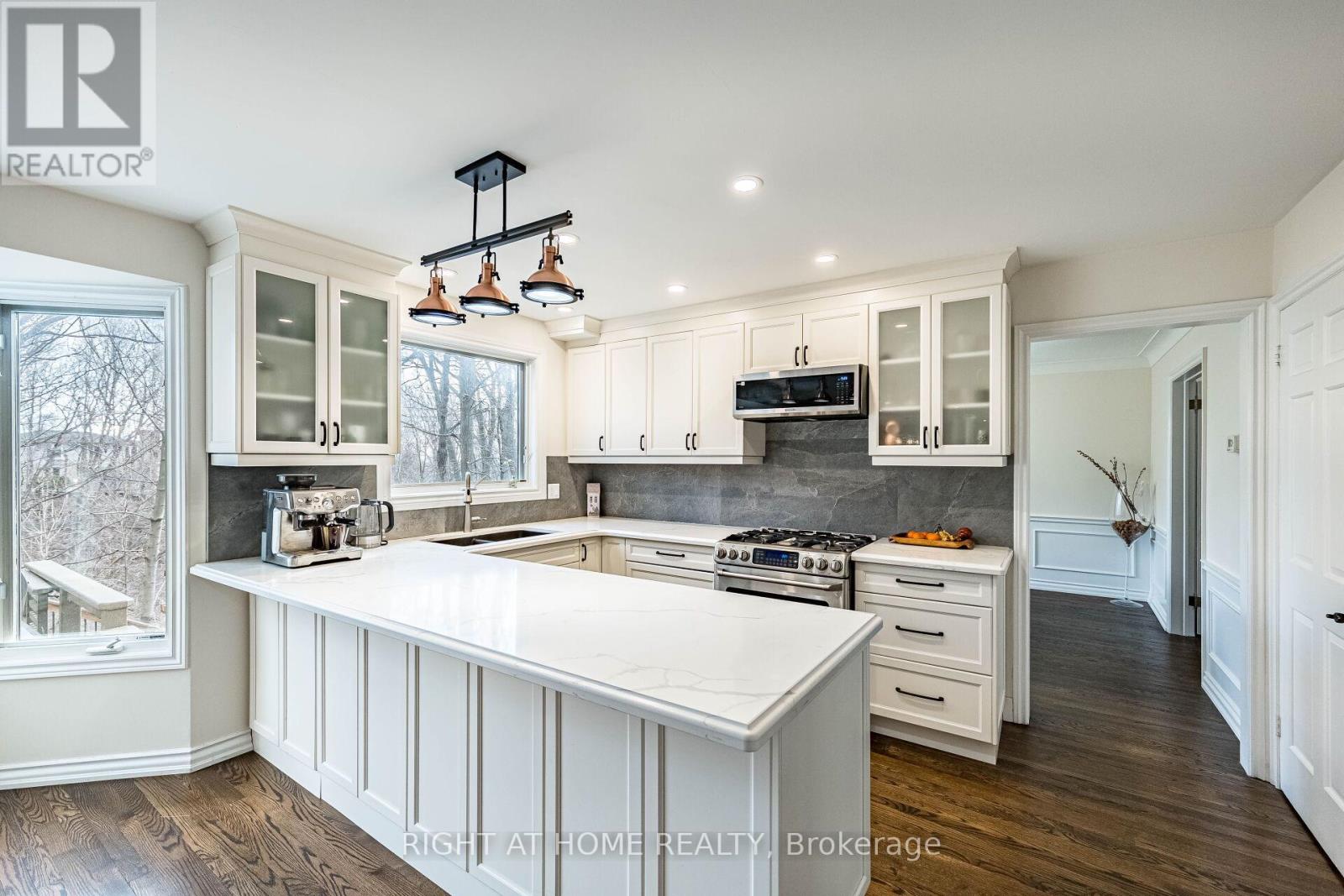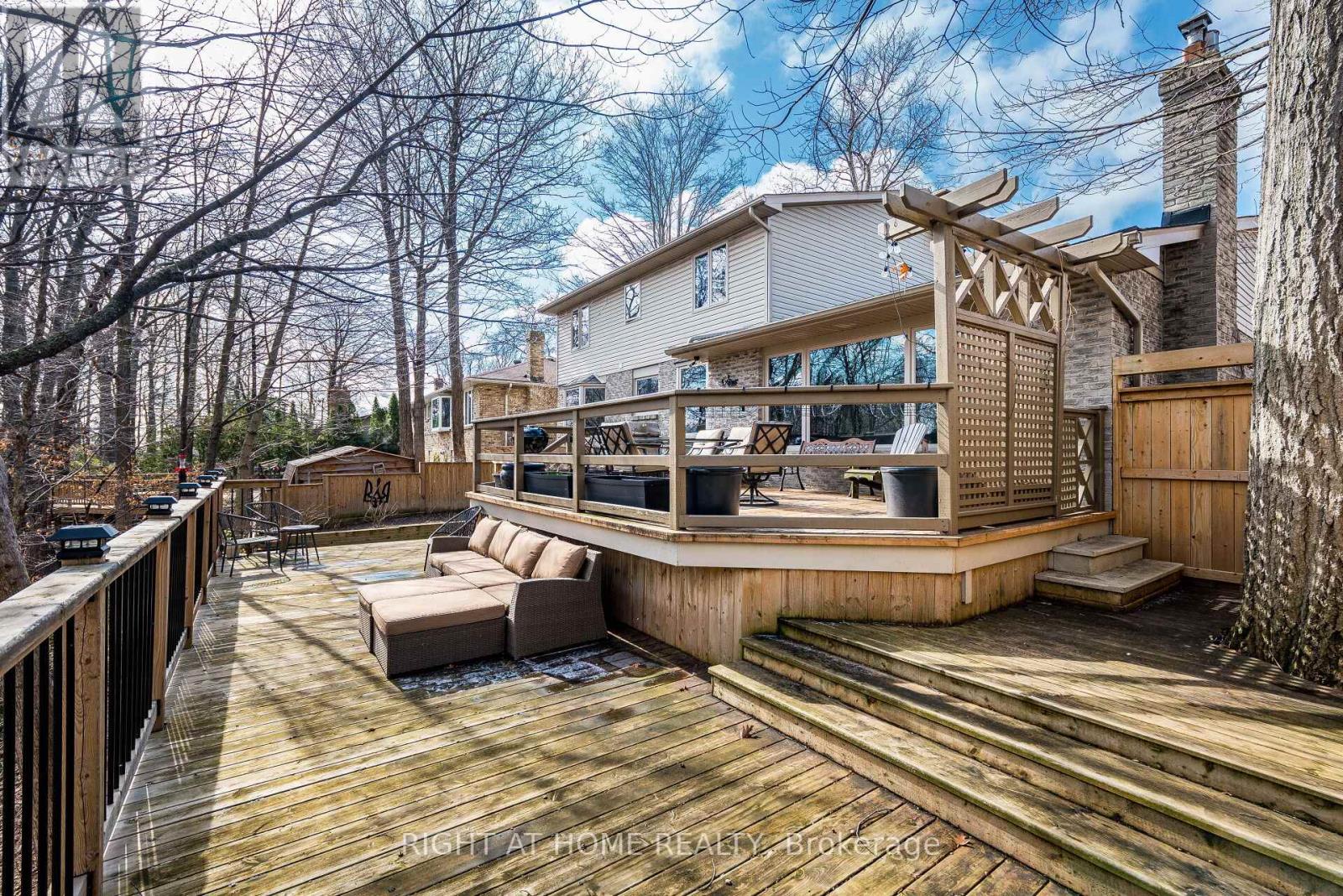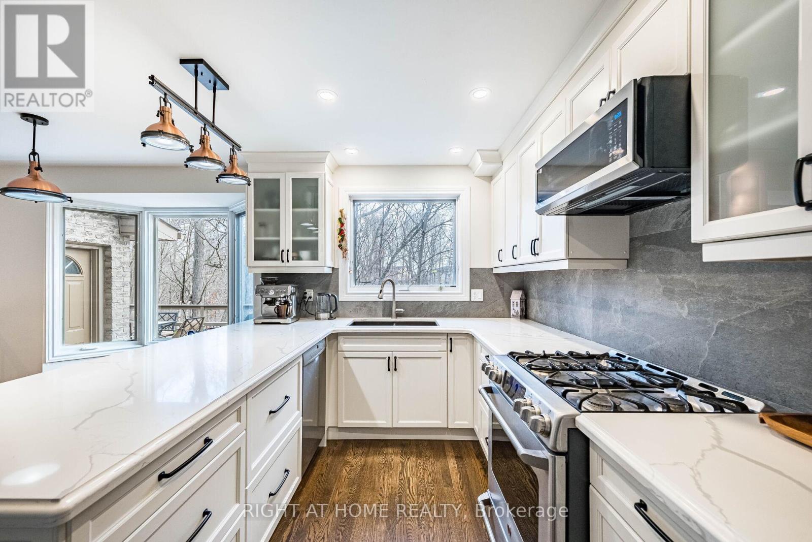 Experience this exquisite home on a mature, tree-lined lot on a prestigious Tyandaga's street. Backing onto a breathtaking ravine, this private retreat offers the perfect blend of nature and convenience, just minutes to all amenities.The main level is ideal for entertaining, featuring a den, formal living and dining rooms with wainscoting, and hardwood flooring throughout. The upgraded kitchen offers stainless steel appliances, new countertops and backsplash, a gas range, and a bright breakfast area with a bay window, plus a walkout to a private, tree-lined backyard.The sunken family room boasts a wall of windows, gas fireplace, pegged oak flooring, and beautiful wood accents with serene ravine views.Upstairs features three spacious bedrooms, all with hardwood floors, including a primary suite with ravine views, walk-in closet, and a 3-piece ensuite with heated floors.The finished lower level includes a recreation room with a wet bar and walkout to a stunning backyard oasis with a multi-level deck, patio, professional landscaping, and a hot tub with privacy wall. A truly exceptional ravine property! (id:43681)