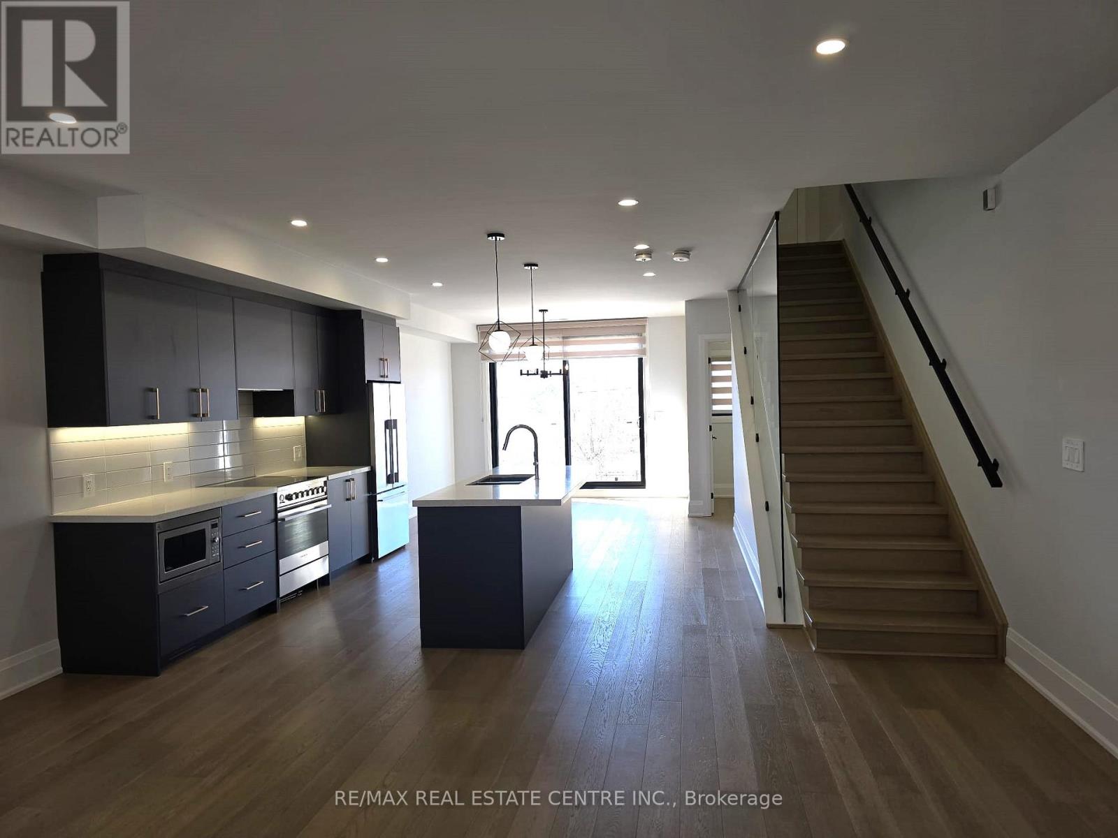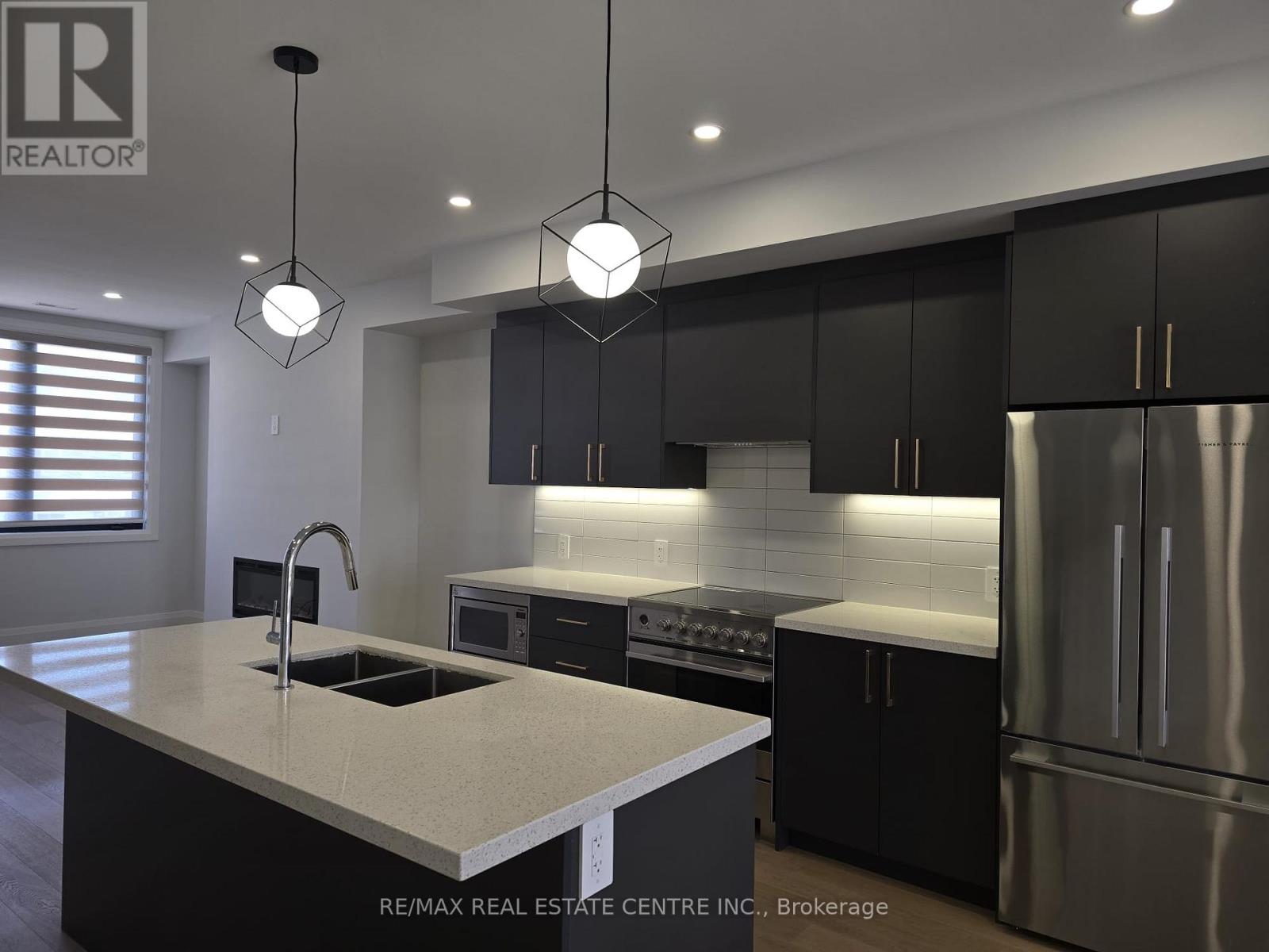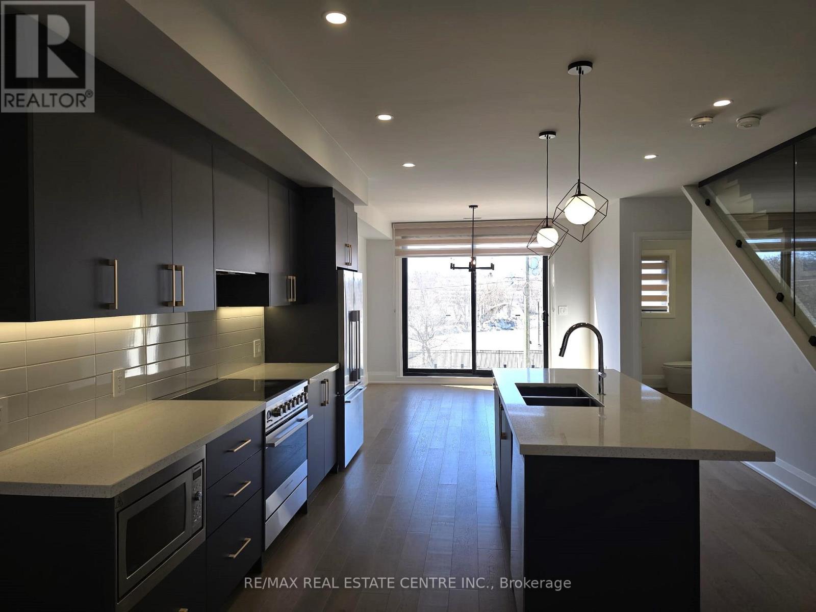 Welcome to 59 Charles St. This stunning boutique End unit condo townhouse offers an exceptional blend of premium quality workmanship and modern elegance. Featuring 3 spacious bedrooms and 3 bathrooms. This rarely available just 2 years new gem boasts engineered hardwood flooring throughout, creating a seamless and luxurious flow. Ascend the gorgeous oak staircase accented by elegant glass handrails that continue along the upper landing, adding a touch of contemporary sophistication. The breathtaking open-concept main level showcases a chef-inspired kitchen with upscale appliances, including a built-in microwave, quartz countertops, stylish backsplash, and a large central island complete with elegant pendant lighting-perfect for entertaining or everyday meals. The expansive living room is flooded with natural light from oversized windows and anchored by a cozy fireplace, while the dining area opens directly to a generous balcony studded with glass railing. Imagine starting your mornings with peaceful coffee moments or unwinding in the fresh air overlooking a serene unobstructed view. Upstairs, the private bedroom level includes a cozy primary bed with an upgraded 4-piece ensuite bathroom and a generous walk-in closet. Two additional well-sized bedrooms provide comfort and flexibility, with the convenience of laundry right on the same floor-no more lugging baskets up and down stairs! Located in the desirable core of New Market. delivering walkable access to New Market Go, public transit, shops & restaurants. Heartbeat to Costco, Hwy 404, Magna Centre Ice rink, The tannery Mall, Upper Canada Mall, parks, schools & all the amenities that make this location so sought-after. Exceptional attention to detail and high-end finishes throughout make this a true standout-ideal for discerning buyers seeking boutique luxury without compromise. Don't miss this opportunity to own a piece of New Market's. finest! Comes with one surface/porch parking, one ensuite locker/bike room. (id:43681)
