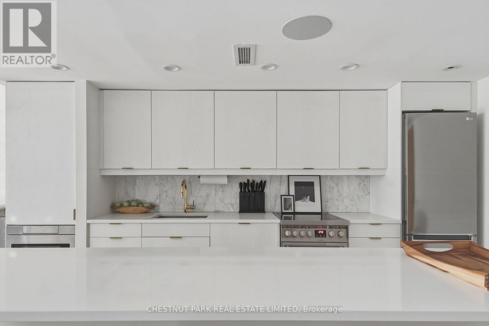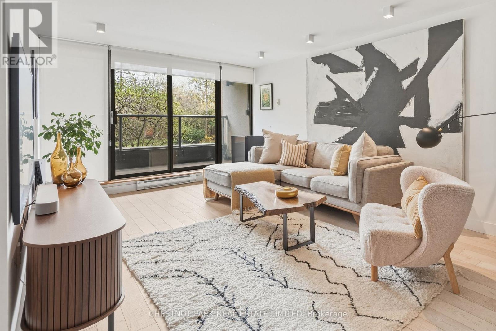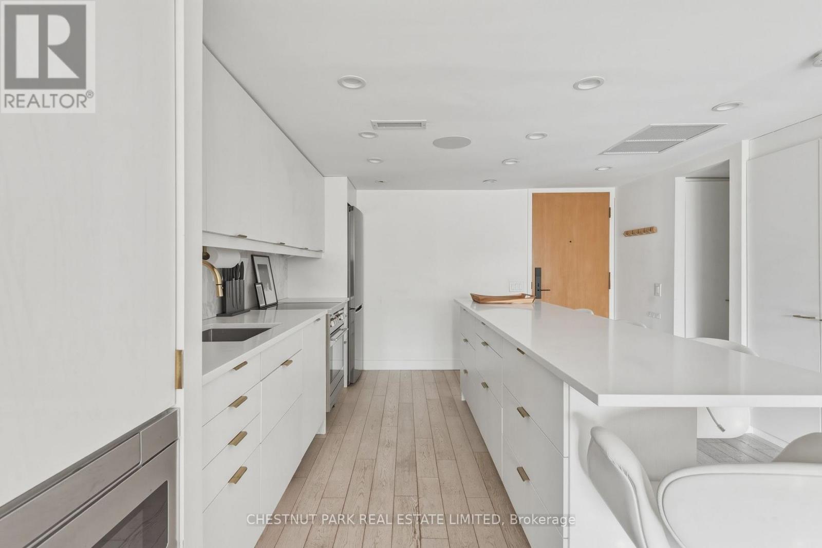 Rarely does a picture perfect rental come along in the wonderful Oaklands, -a boutique residence known for its serene setting, award-winning architecture, and beautifully landscaped grounds. This thoughtfully redesigned one-bedroom suite offers 764 square feet of highly functional, stylish living space. Completely gutted and reimagined by the acclaimed design team at Lloyd Ralphs, the unit blends timeless design with everyday practicality. The bright, white kitchen is the heart of the home, anchored by a generous island with seating-perfect for casual dining or entertaining. The open-concept layout maximizes flow and usability, while abundant, well-integrated storage ensures everything has its place. The living space extends to a private east-facing balcony overlooking the lush gardens of The Oaklands-an ideal spot for quiet morning coffee or a peaceful retreat. Additional features include one parking space and a well-managed, predominantly owner-occupied building known for its strong sense of community. Seeking a AAA tenant who will appreciate and care for this beautifully designed home-quiet, responsible, and respectful of the building's tranquil environment. A refined and turnkey lease opportunity in one of the city's most coveted low-rise residences. (id:43681)