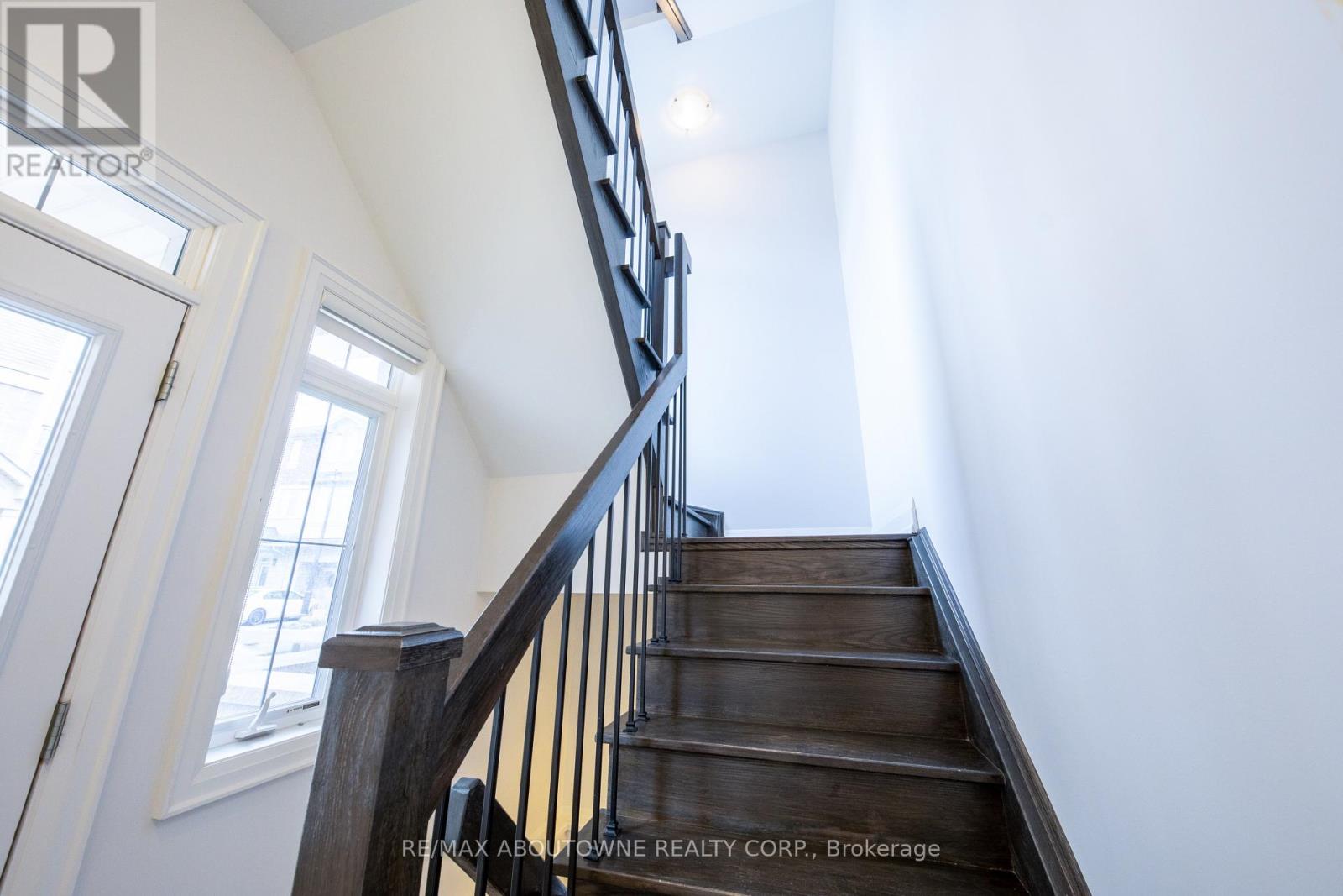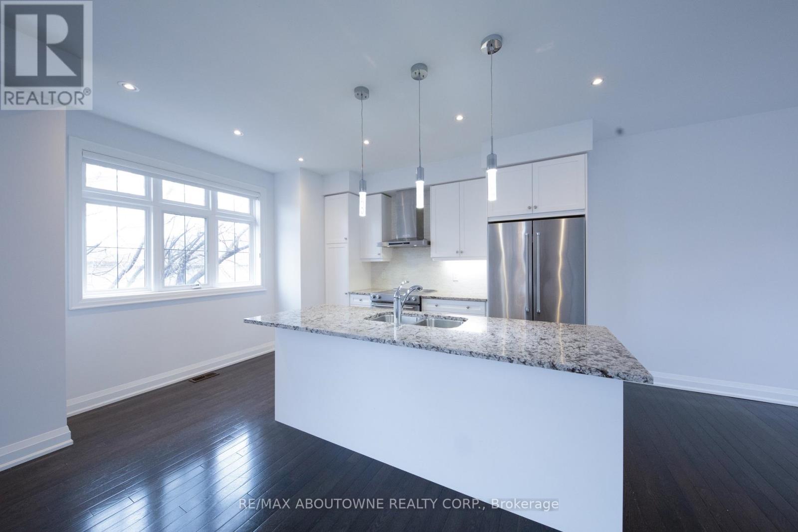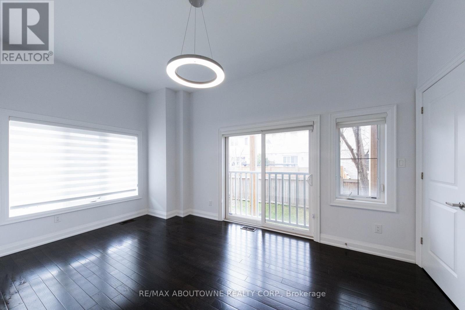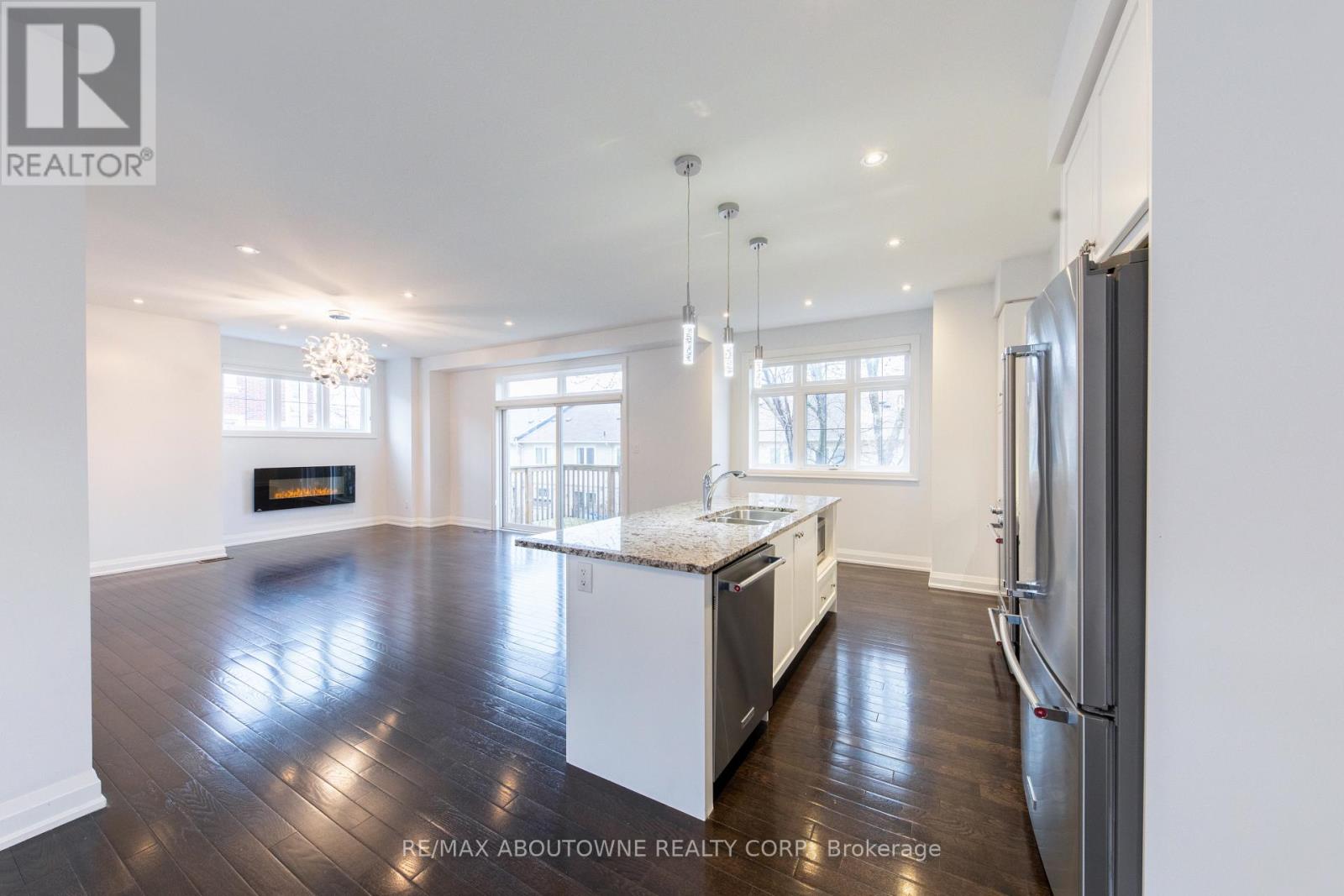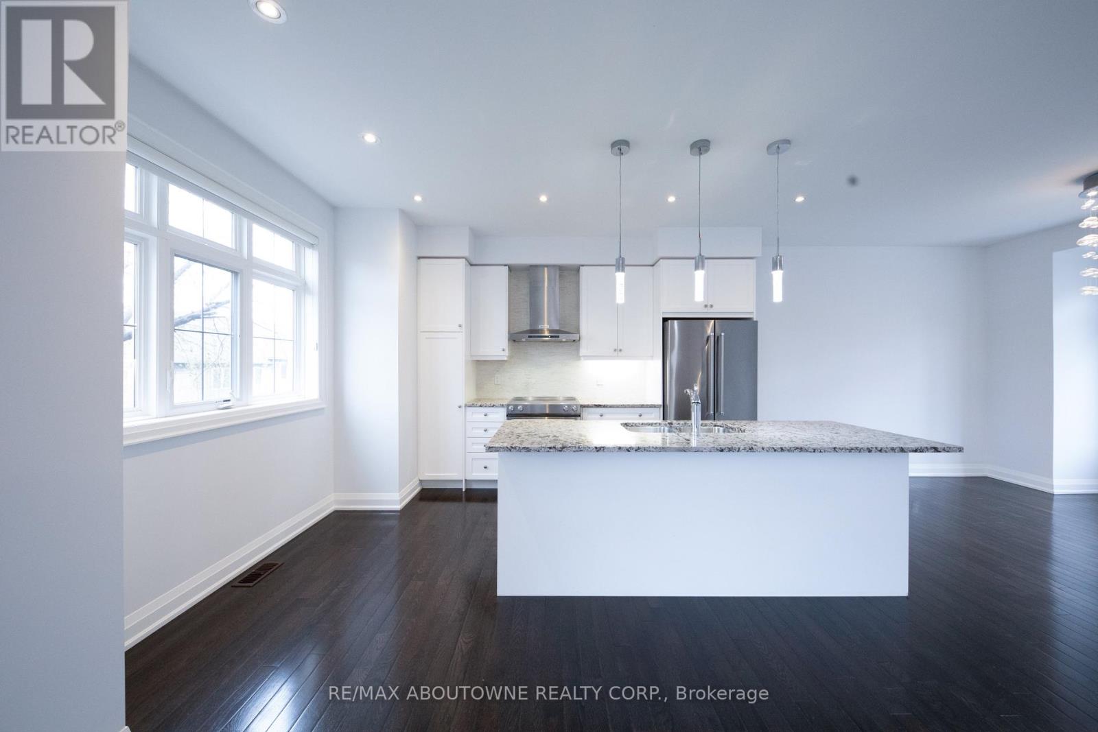 Welcome to this spacious executive corner-unit townhouse in the highly regarded Bronte Park Town Manors, a private enclave of just 20 townhomes by Markay Homes, surrounded by conservation lands and scenic trails.Positioned on a privately maintained road, the community offers a quiet, low-traffic environment with a sense of privacy rarely found in townhouse living. This well-planned home offers approximately 2,200+ sq ft of living space with a versatile layout across multiple levels. The ground floor features a fourth bedroom with a full bathroom and walkout access - ideal for extended family, guests, or a home office. The main living area on the second floor showcases an open-concept layout with a modern kitchen, seamlessly connected to the living and dining areas, creating a comfortable space for everyday living.Upstairs, three well-sized bedrooms provide functional family living, along with the convenience of a same-level laundry area. The finished basement adds additional flexible space for recreation or storage.Located just steps to Bronte Provincial Park and surrounded by trails and green space, with easy access to major highways, GO Transit, shopping, community centres, and top-rated schools. (id:43681)