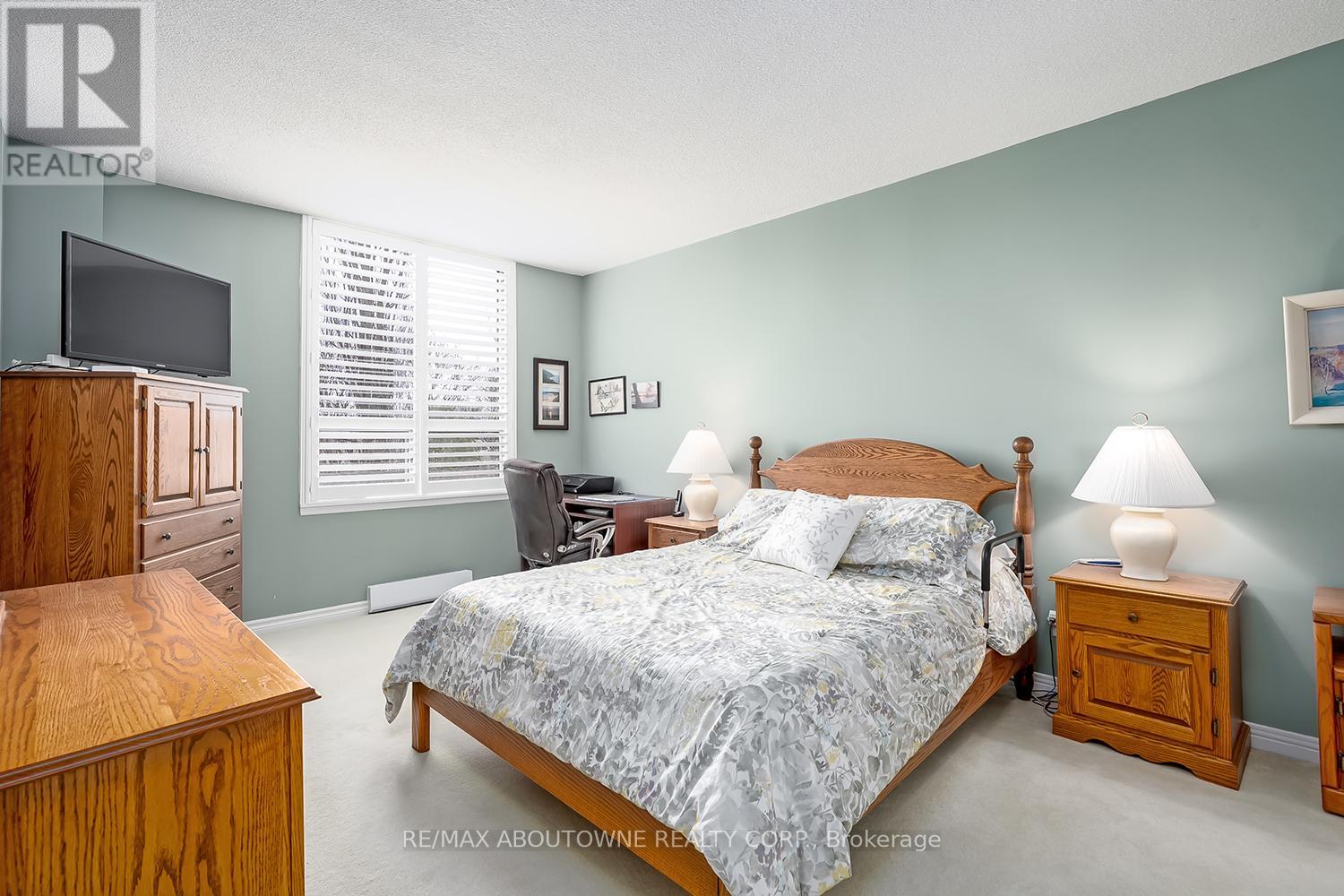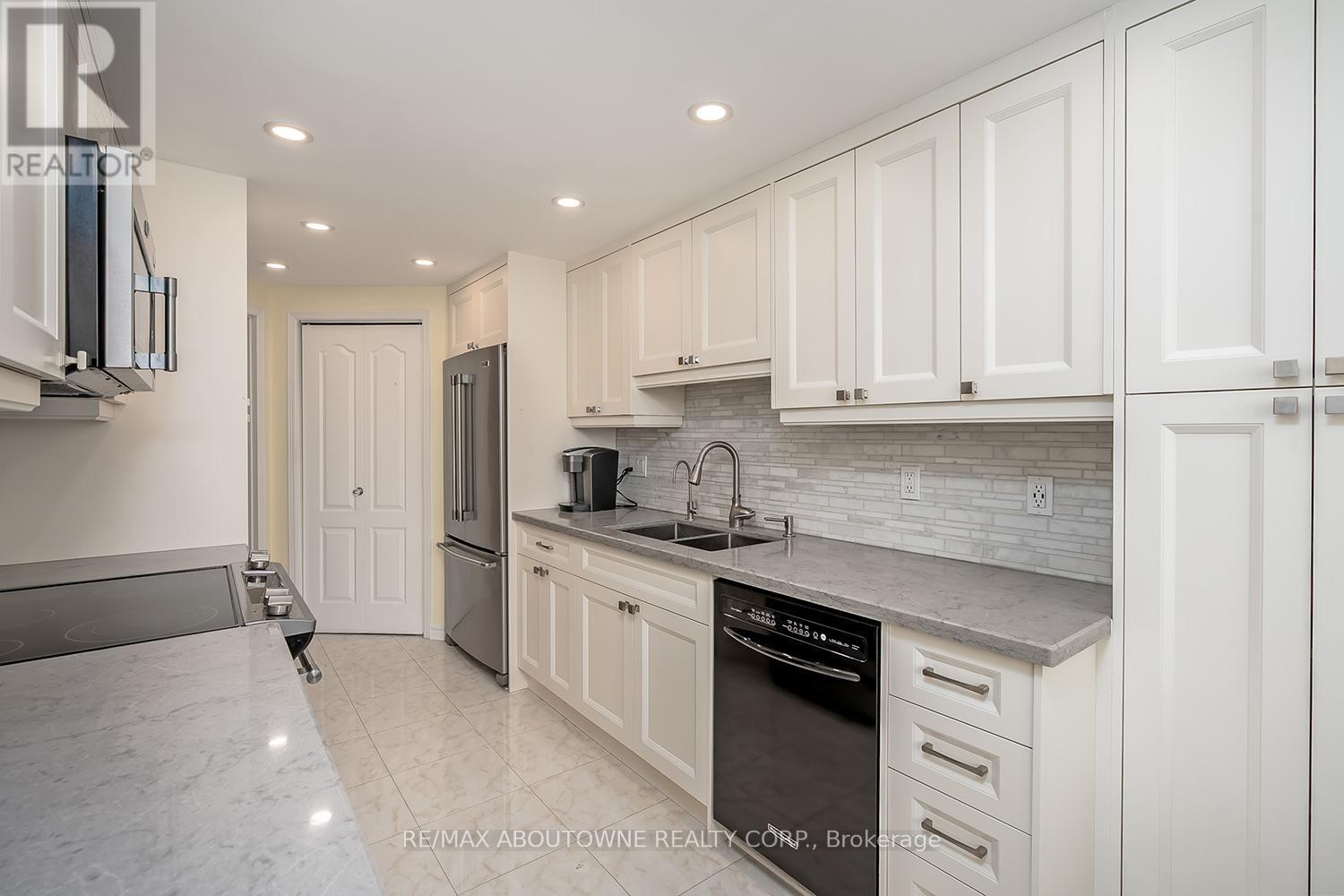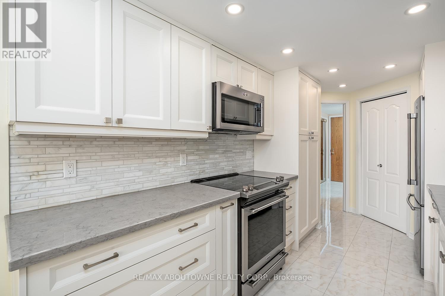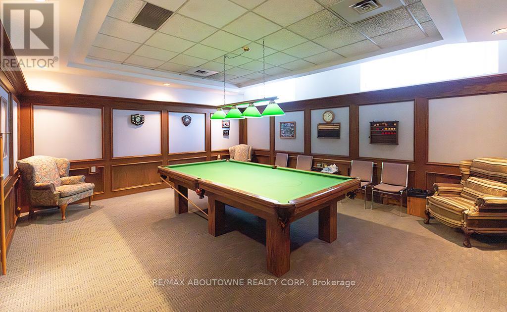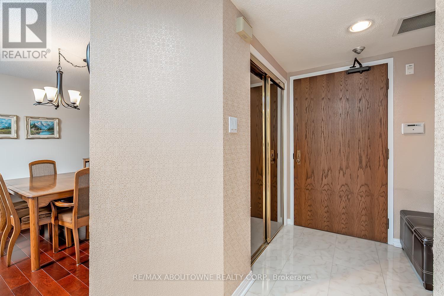 Enjoy private south east views in this bright, 2 bedroom, 2 full bathroom 1321 SF unit at the prestigious upscale Arboretum in sought after Glen Abbey. A well-appointed building lobby welcomes you home & each floor boasts newly updated hallway decor with six exclusive units per level. An oversized solid wood door greets you upon entering this suite. Elegant porcelain tile foyer & seamless engineered hardwood in the formal living & dining rooms. A gorgeous custom kitchen (2020) with white shaker style cabinetry, quartz counters, quality appliances include stainless french door fridge & 5 burner range, built in microwave & dishwasher. Stylish ceramic subway tile backsplash, porcelain tile flooring, pot lighting & open breakfast area with floor to ceiling windows providing spectacular views for morning coffee & casual dining. Sliding glass door to the private open balcony. The primary bedroom features a large window w/ cali shutters, broadloom, a large walk-in closet with shelving & private 5 piece ensuite with soaker tub & separate tiled shower. The second bedroom also features a large window with cali shutters, broadloom, & a large double door closet. In-suite laundry, heat pump (2016,) exclusive underground parking spot & a sizeable storage locker included. This beautifully maintained complex with gated access, lush grounds & mature trees offers extensive building amenities including indoor pool, hot tub, sauna & change rooms, party room w/ kitchen, fitness room, billiards, library, hobby/games room, tennis court, car wash bay, outdoor patio area with barbecues, plenty of visitor parking & guest suites. Never a dull moment at the Arboretum with its active social committee & extensive organized events. Prime location w/in walking distance to the famous Monastery Bakery. Close proximity to Glen Abbey rec centre & lush Taplow creek walking trail system just outside the door. Easy access to major highways, transit, & minutes to Oakville hospital. (id:43681)