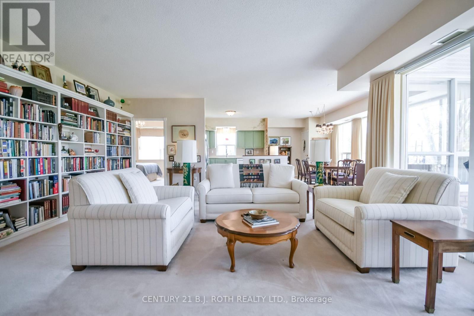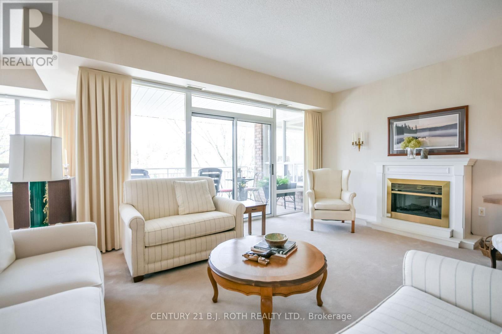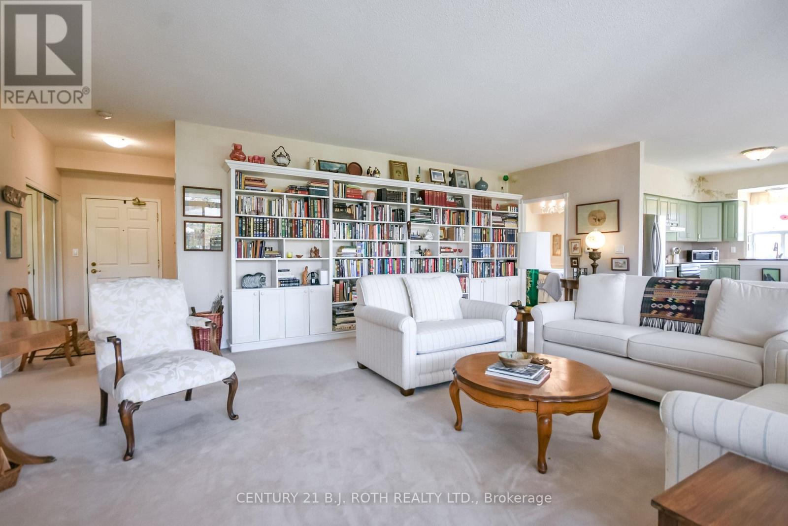 Welcome to The Villages of Leacock Point, one of Orillia's most cherished retirement communities ideally situated in the heart of The Sunshine City! This rarely available, beautiful, top-floor, corner unit, two-bedroom condo offers a bright, open-concept layout with 9' foot ceilings and custom-made built-in bookcase in the living room. Wall-to-wall windows and patio doors lead to a generous private north facing balcony shaded by mature trees, perfect for unwinding on warm summer evenings. The oversized primary bedroom boasts a walk-in closet and pass-through to a 3-piece bath and convenient in-suite laundry. The second bedroom includes generous closets and a 3-piece ensuite with walk-in tub. This meticulously maintained building offers everything from secure underground parking and elevator access to a games room, bike storage, private lockers, and even a full hobby shop for the creative soul. Roof replaced 3 years ago, unit patio doors planned for replacement next year. Step outside to the scenic Lightfoot Trail or stroll to Tudhope Park and Beach just moments away. Enjoy a bike ride or a relaxed walk to the picturesque, Leacock Museum, Port of Orillia and vibrant downtown core, home to waterfront festivals, unique shops and restaurants. On the bus route for convenience, and just minutes from all essentials. Maintenance fees include water, cable, internet and two parking spaces. The stove is new, with other appliances and carpeting in "as is" condition. (id:43681)