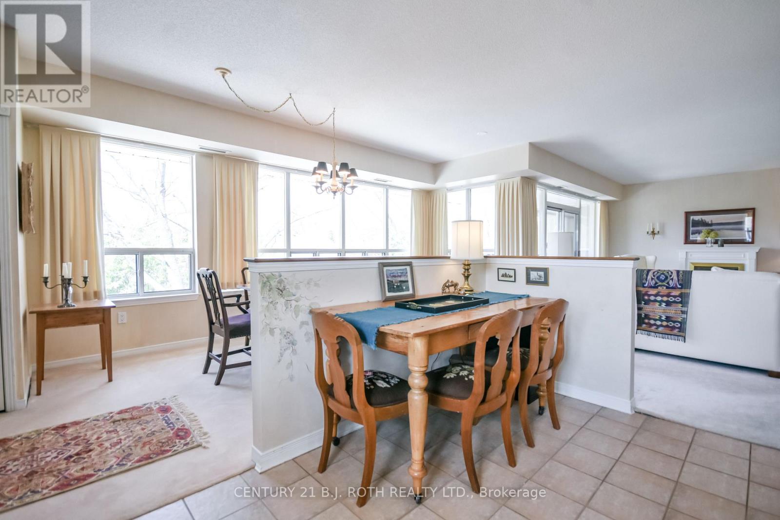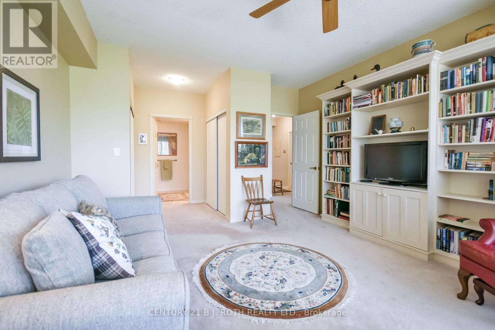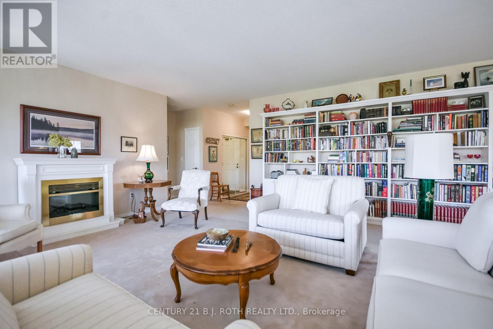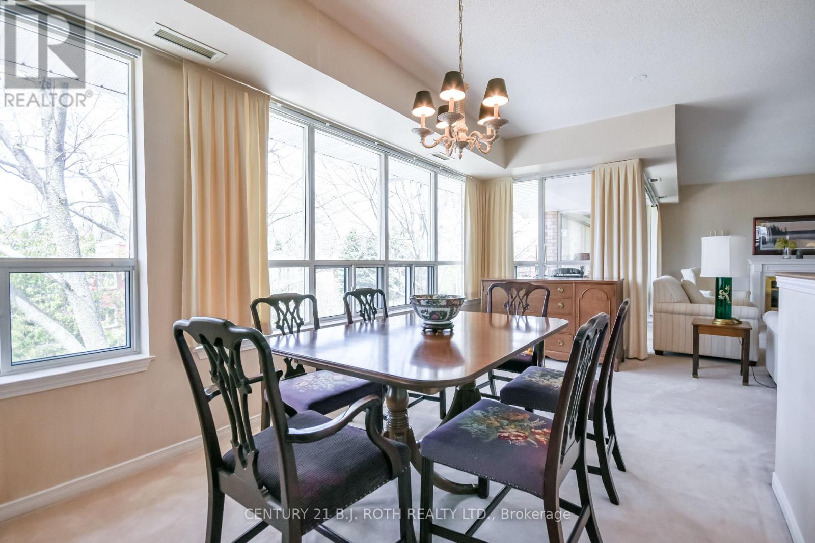 Welcome to The Villages of Leacock Point, one of Orillia's most cherished retirement communities ideally situated in the heart of The Sunshine City! This rarely available, beautiful, top-floor, corner unit, two-bedroom condo offers a bright, open-concept layout with 9' foot ceilings and custom-made built-in bookcase in the living room. Wall-to-wall windows and patio doors lead to a generous private north facing balcony shaded by mature trees, perfect for unwinding on warm summer evenings. The oversized primary bedroom boasts a walk-in closet and pass-through to a 3-piece bath and convenient in-suite laundry. The second bedroom includes generous closets and a 3-piece ensuite with walk-in tub. This meticulously maintained building offers everything from secure underground parking and elevator access to a games room, bike storage, private lockers, and even a full hobby shop for the creative soul. Roof replaced 3 years ago, unit patio doors planned for replacement next year. Step outside to the scenic Lightfoot Trail or stroll to Tudhope Park and Beach just moments away. Enjoy a bike ride or a relaxed walk to the picturesque, Leacock Museum, Port of Orillia and vibrant downtown core, home to waterfront festivals, unique shops and restaurants. On the bus route for convenience, and just minutes from all essentials. Maintenance fees include water, cable, internet and two parking spaces. The stove is new, with other appliances and carpeting in "as is" condition. (id:43681)