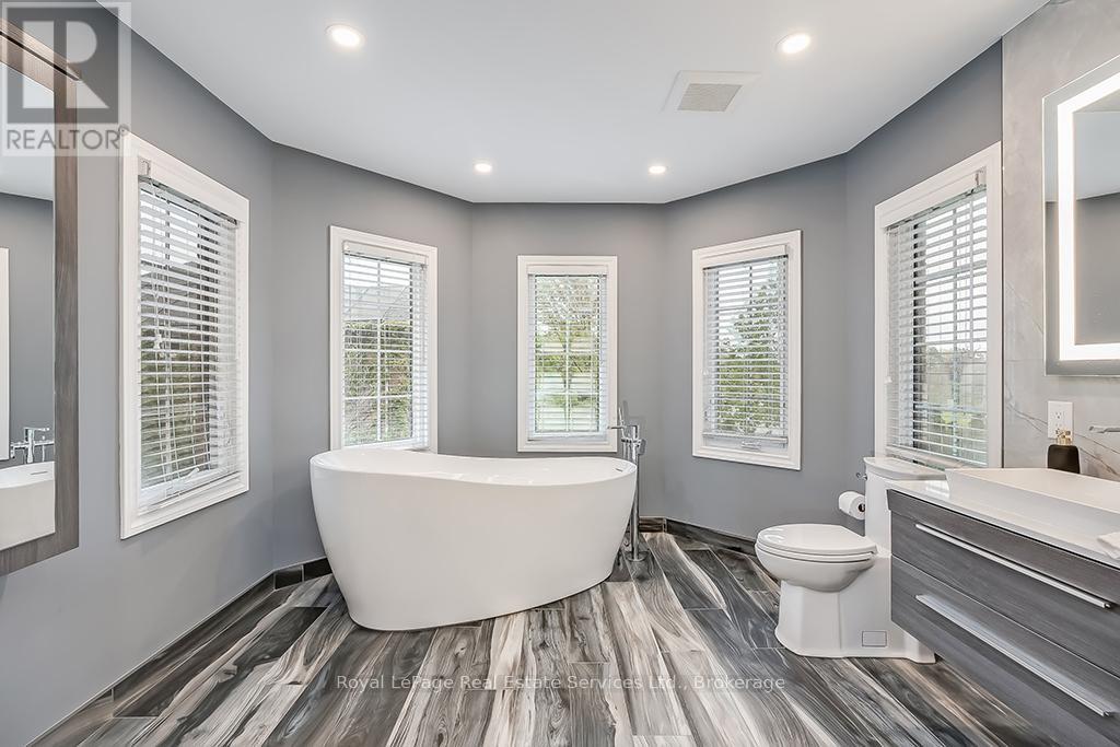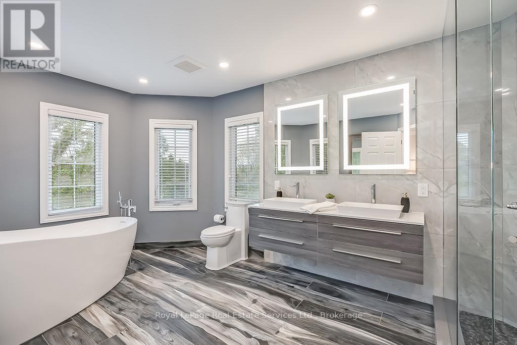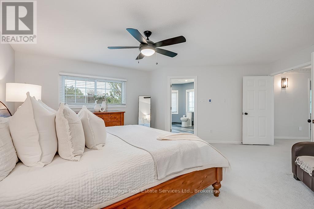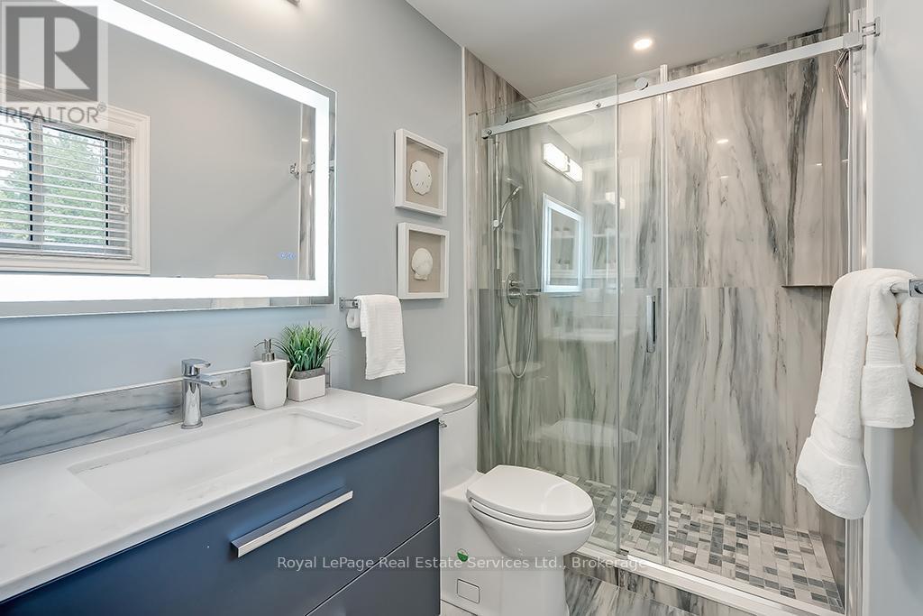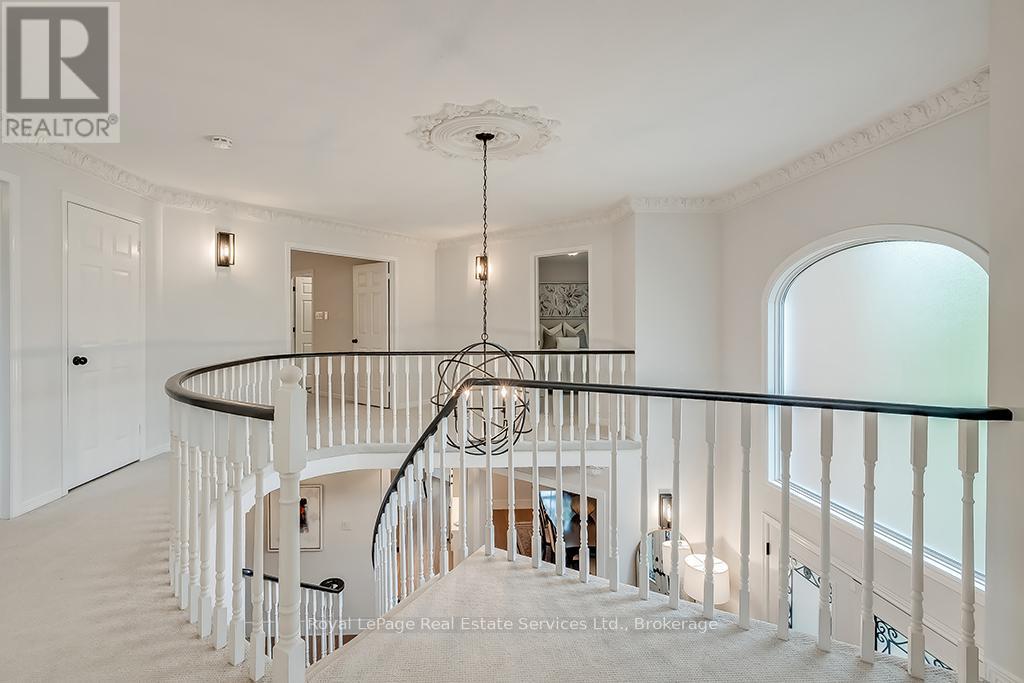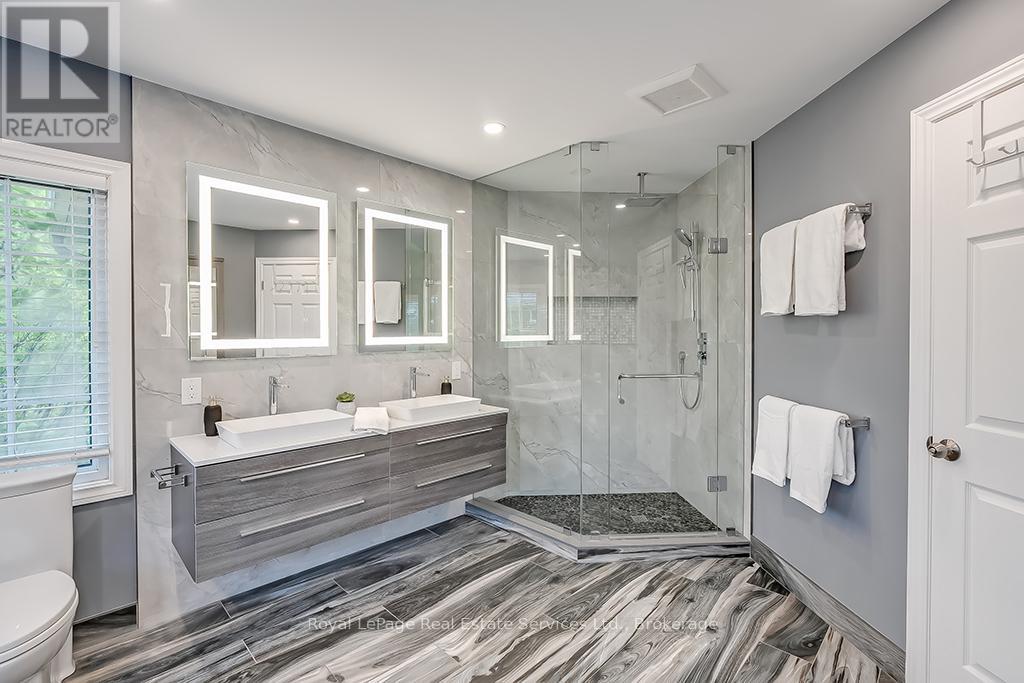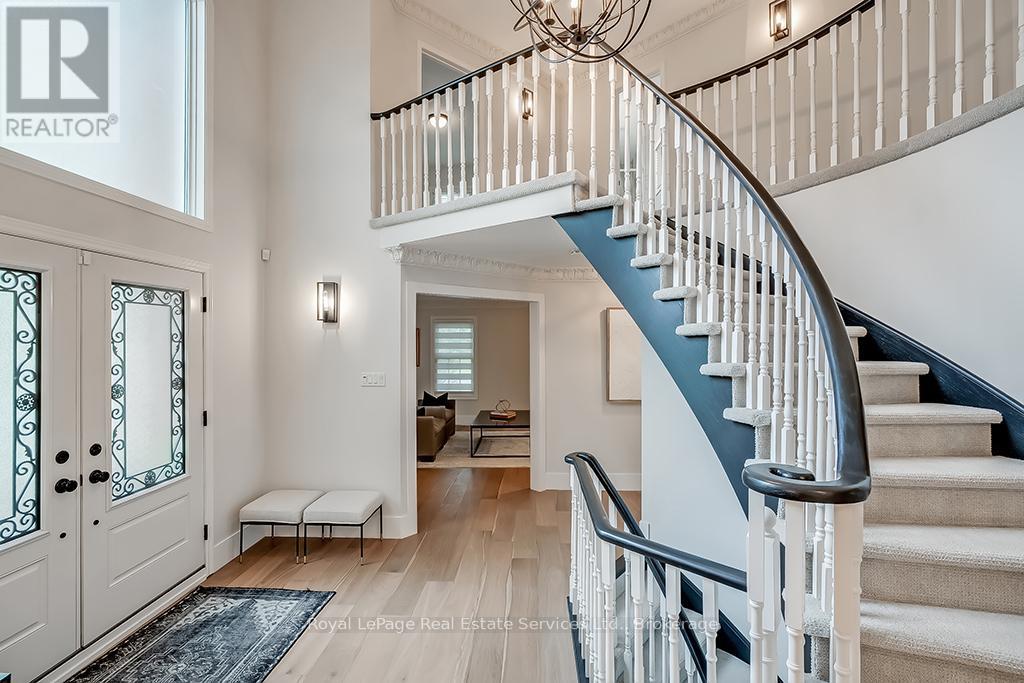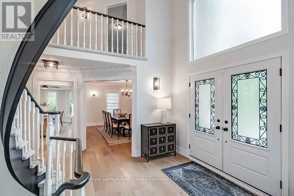 Recently upgraded Beautiful Executive Colonial Residence offering over 4,600 sq ft total of refined living space on a stunning corner lot. Meticulously maintained & thoughtfully updated, this home blends timeless elegance with everyday comfort. Step into the grand foyer with soaring 16-foot ceilings and make an unforgettable first impression. The main lvl showcases expansive principal rooms, including a formal living rm with a cozy gas f/p and a sophisticated dining rm with direct access to the renovated chef's kitchen. The kitchen is a true showpiece, featuring custom white cabinetry, quartz counters & backsplash, a breakfast bar, & high-end stainless steel appliances. The adjoining breakfast area walks out to the backyard patio-perfect for entertaining. Relax in the spacious great room with a wood-burning fireplace & an oversized window that fills the space with natural light. The main floor also offers a private home office, a renovated powder room, and a convenient laundry room with access to the double garage. Upstairs, retreat to the luxurious primary suite w/ double-door entry, dual walk-in closets, and a spa-inspired 5-piece ensuite w/heated floors, glass-enclosed shower, double vanity, & a soaker tub. Three additional generously sized bdrms and a reno'd 4-piece bath complete the upper lvl. The fully finished bsmt offers excellent in-law potential, featuring a large rec room with a gas f/p a full second kitchen, an exercise rm, a spacious fifth bdrm, and a 4-piece bath. Enjoy beautifully landscaped front and backyards with interlocking stone walkways, a large patio, & lush green space ideal for relaxing or entertaining. Ideally located directly across from Valleybrook Park, offering scenic walking trails, a playground, and tennis courts. It's also a short distance from a rec centre, library, shopping, & one of Ontario's top-ranked high schools. Exceptional opportunity to own a distinguished home in a highly sought-after neighbourhood! (id:43681)