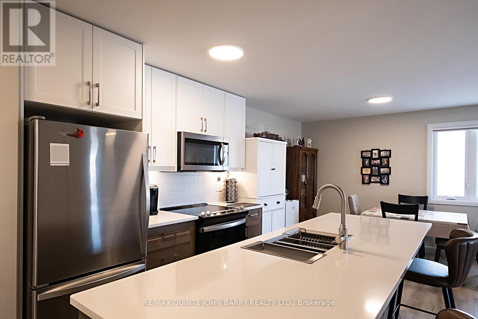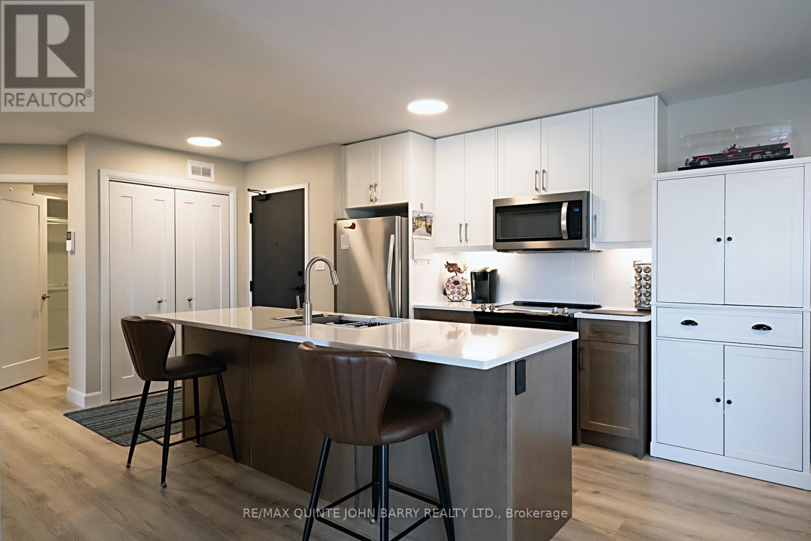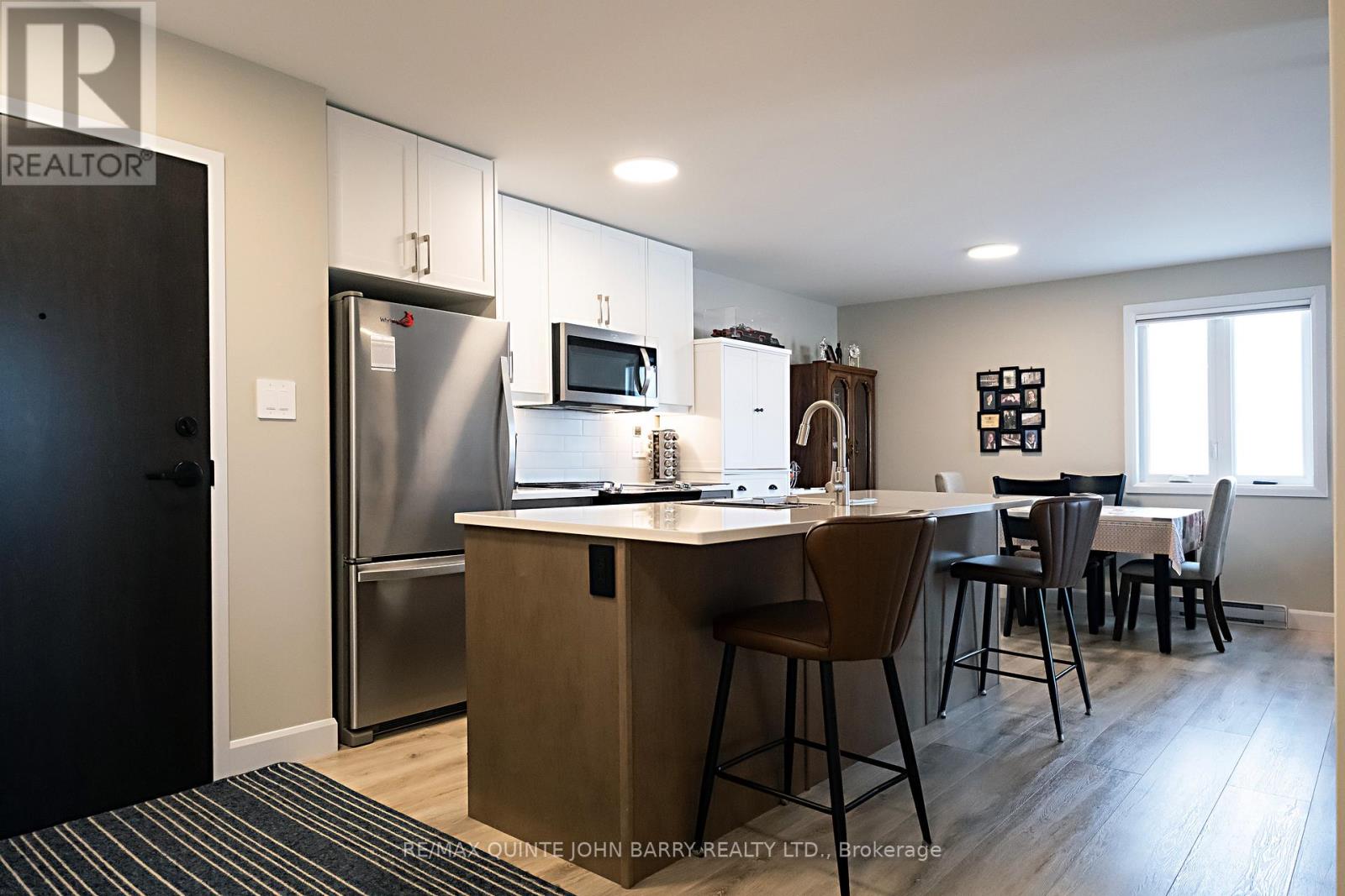 $470 每月Welcome to this well-maintained 908 sq ft second-floor condo in Hillside Flats, offering a bright and functional layout. Upon entry, you'll find a convenient double closet for added storage. The bright kitchen features two slide-out drawers, ample workspace, and an island with seating for two bar stools, perfect for casual dining or entertaining. The adjacent dining area flows seamlessly into the sun-filled living room, which offers direct access to the private balcony-an ideal spot to enjoy your morning coffee or relax while watching the sunset. This unit includes two comfortable bedrooms, a 3- pc bathroom, and a separate utility room with a stackable washer and dryer for added convenience. Located in a secure, beautifully landscaped building, Hillside Flats is ideally situated close to shopping, dining, and essential amenities, with quick access to Highway 401, making commuting easy. (id:43681)