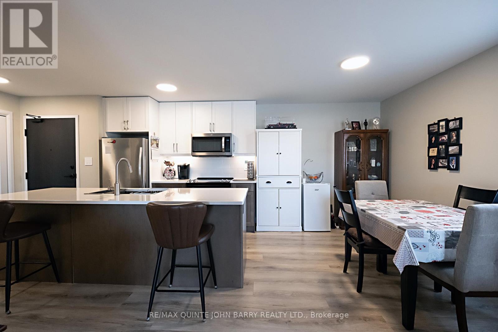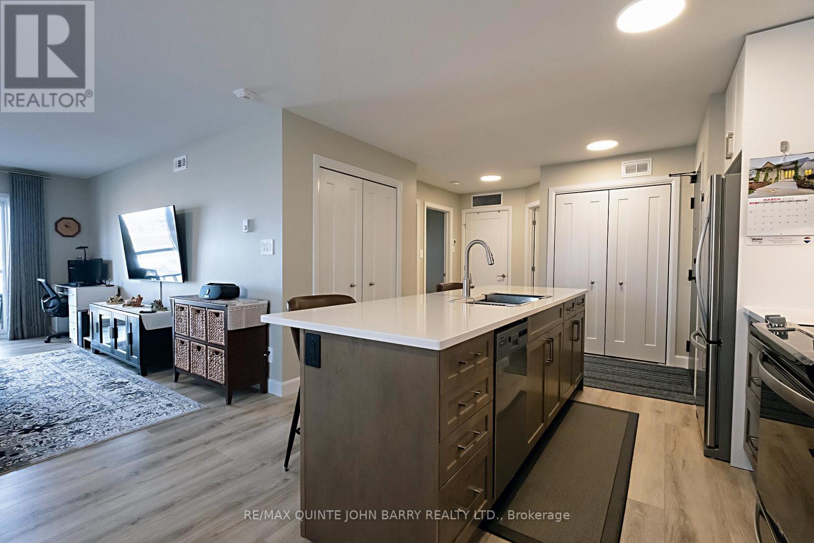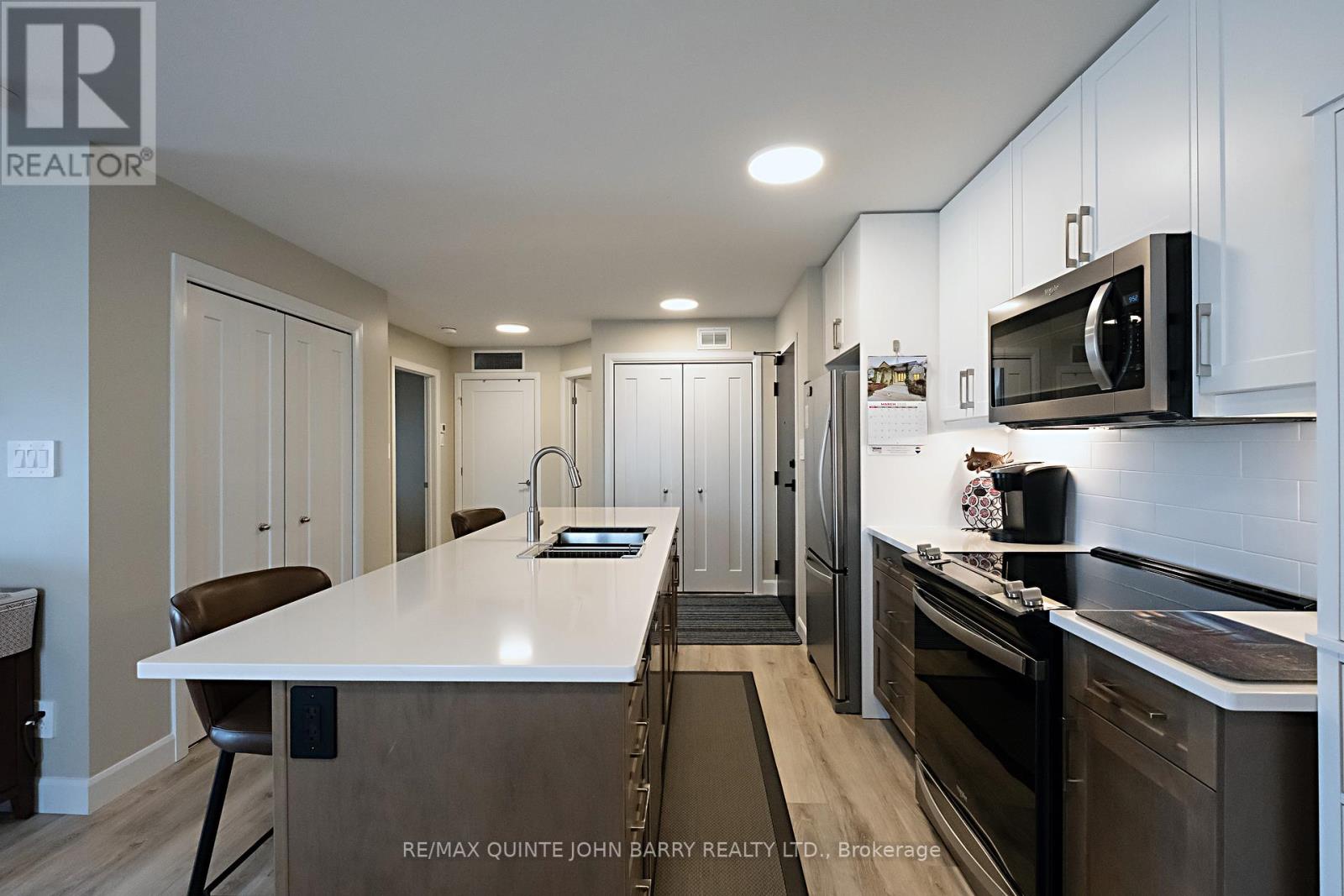 $470 每月Welcome to this well-maintained 908 sq ft second-floor condo in Hillside Flats, offering a bright and functional layout. Upon entry, you'll find a convenient double closet for added storage. The bright kitchen features two slide-out drawers, ample workspace, and an island with seating for two bar stools, perfect for casual dining or entertaining. The adjacent dining area flows seamlessly into the sun-filled living room, which offers direct access to the private balcony-an ideal spot to enjoy your morning coffee or relax while watching the sunset. This unit includes two comfortable bedrooms, a 3- pc bathroom, and a separate utility room with a stackable washer and dryer for added convenience. Located in a secure, beautifully landscaped building, Hillside Flats is ideally situated close to shopping, dining, and essential amenities, with quick access to Highway 401, making commuting easy. (id:43681)