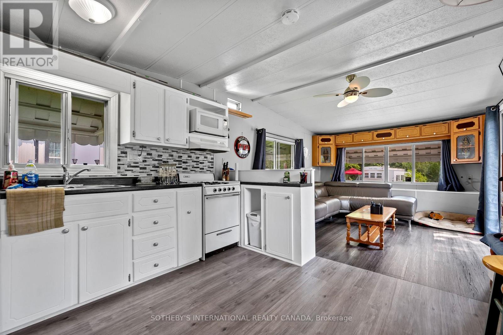 Welcome to 580 Beaver Creek Road Unit 215. This modular home is located on a quiet road within Green Acre Park in Waterloo - minutes from Universities, St. Jacobs, major highways and Laurel Creek Conservation. This home offers 452 sq. ft. of living space with one bedroom and one bathroom. Entering the home, living room and kitchen greet you for an open concept floor plan. With windows throughout allowing lots of natural light to shine through. Sliding doors off of the living room make it accessible to the yard. Steps away, you will find the bedroom and a three piece bathroom. The exterior space leaves plenty of room for outdoor dining, lounging and entertaining- picnics and a fire pit. Notable updates include freshly painted, newer floors, newer bathroom and plumbing, newer electric water heater and fridge. Enjoy the comforts of 10 month seasonal living (park closed Jan and Feb) with a turn key home, surrounded by nature, old growth trees and a spacious lot. Green Acre Park features a community swimming pool, a games room, a catch and release fishing pond for plenty of outdoor activities. This property is the perfect getaway for the ultimate cottage feel with the modern convenience of amenities around the corner and ample visitor parking. Monthly Land Lease fee $935.17 includes water & taxes (park closed Jan & Feb). (id:43681)