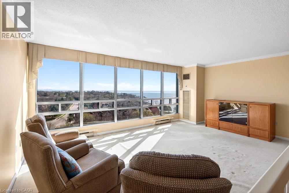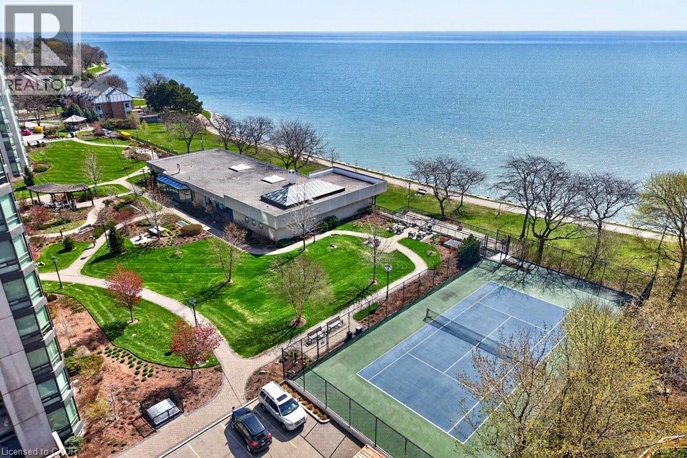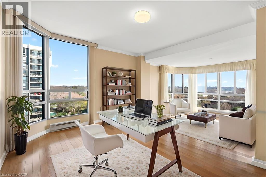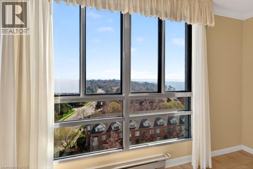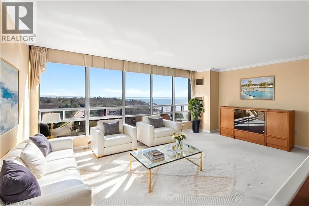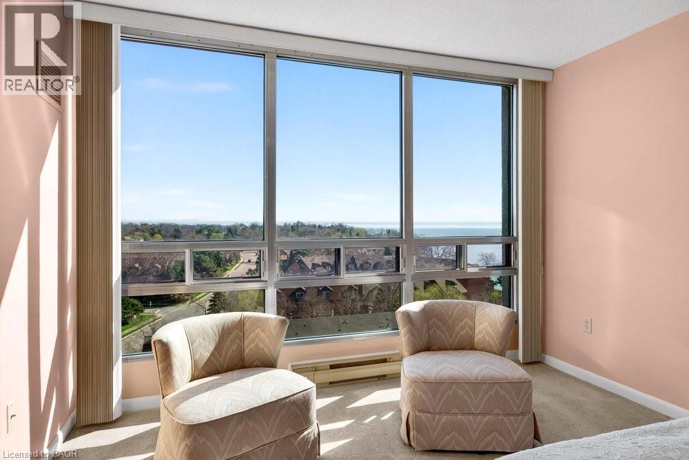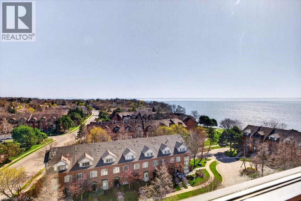 Ennisclare II on the Lake - enjoy lake views of Lake Ontario from this spacious 1,830 sq. ft. 2-bedroom, 2-bath suite with a combined den and solarium. From the moment you arrive to this gated community, the building makes an elegant first impression featuring a grand lobby with soaring ceilings, cascading stained-glass fixtures, and elegant marble columns. Up to the 10th floor, this beautifully laid-out unit offers generous living space and lovely lake views from the front rooms. The welcoming foyer opens to an open-concept dining area and sunken living room, where wall-to-wall windows showcase an expansive view as the lake wraps around the residential area below and curves inward, so on clear days, you can see the CN Tower in the distance and watch the waves roll on the south side from the comfort of your living room sofa or bedroom! The kitchen offers ample storage and a spacious eat-in area. The bonus room for this layout is the large den and solarium which have been combined to create a versatile, light-filled space. The primary suite features sunny views, a sitting area, a walk-in dressing area with three closets, and an ensuite bathroom with an updated step-in shower. A spacious second bedroom, full main bath, and in-suite laundry add to the convenience. Move in 'as is' or customize to your taste. Includes one underground parking space near the entrance (an extra spot may be available to rent, check with the property manager) plus one locker. Residents enjoy access to exceptional amenities at the Ennisclare II Club, including an indoor pool, spa, fitness centre, tennis court, party room, workshop, and serene gardens, waterfront lounge chairs, and trail along the lake, all included in the monthly fee. Easy walk over to the Bronte Harbourfront, shops, and restaurants in Bronte Village. (id:43681)