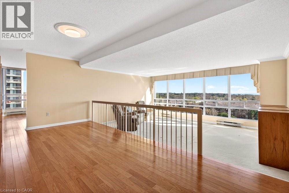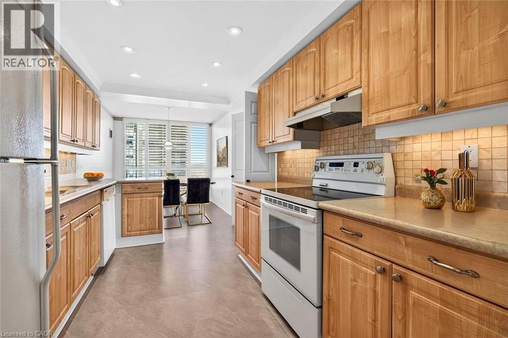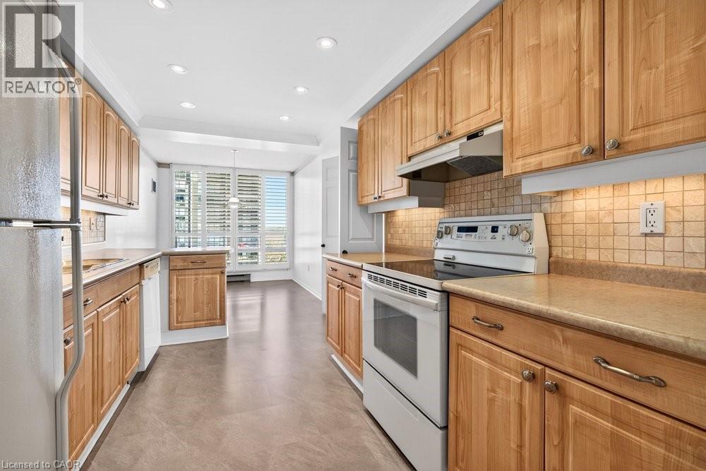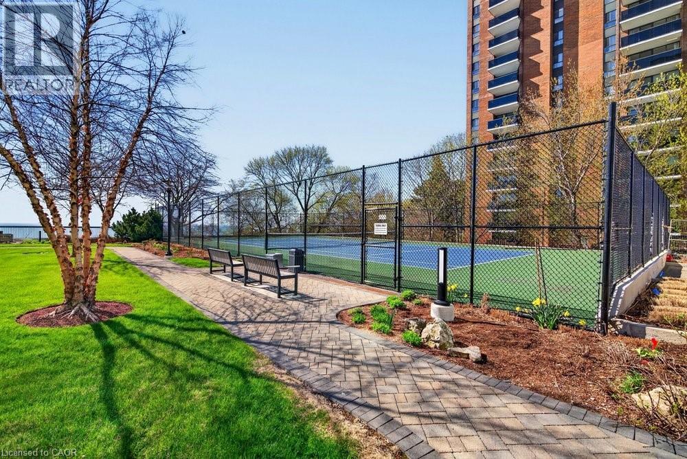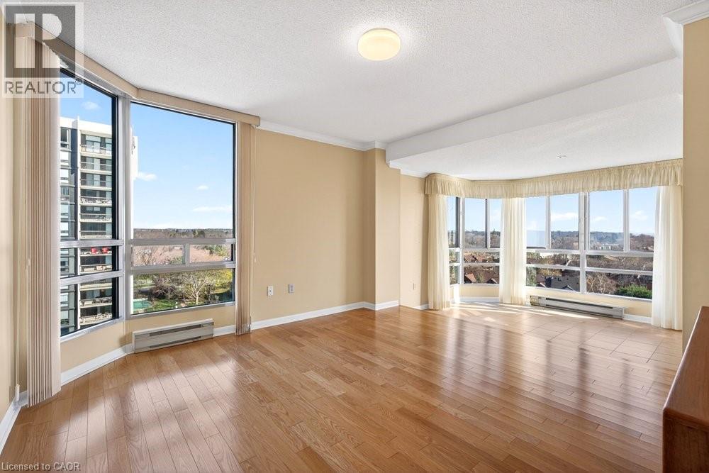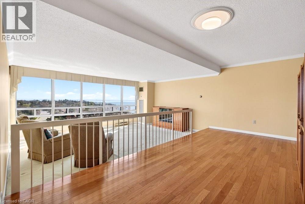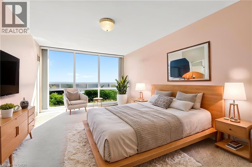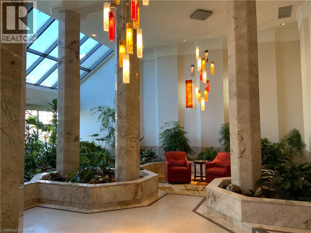 Ennisclare II on the Lake - enjoy lake views of Lake Ontario from this spacious 1,830 sq. ft. 2-bedroom, 2-bath suite with a combined den and solarium. From the moment you arrive to this gated community, the building makes an elegant first impression featuring a grand lobby with soaring ceilings, cascading stained-glass fixtures, and elegant marble columns. Up to the 10th floor, this beautifully laid-out unit offers generous living space and lovely lake views from the front rooms. The welcoming foyer opens to an open-concept dining area and sunken living room, where wall-to-wall windows showcase an expansive view as the lake wraps around the residential area below and curves inward, so on clear days, you can see the CN Tower in the distance and watch the waves roll on the south side from the comfort of your living room sofa or bedroom! The kitchen offers ample storage and a spacious eat-in area. The bonus room for this layout is the large den and solarium which have been combined to create a versatile, light-filled space. The primary suite features sunny views, a sitting area, a walk-in dressing area with three closets, and an ensuite bathroom with an updated step-in shower. A spacious second bedroom, full main bath, and in-suite laundry add to the convenience. Move in 'as is' or customize to your taste. Includes one underground parking space near the entrance (an extra spot may be available to rent, check with the property manager) plus one locker. Residents enjoy access to exceptional amenities at the Ennisclare II Club, including an indoor pool, spa, fitness centre, tennis court, party room, workshop, and serene gardens, waterfront lounge chairs, and trail along the lake, all included in the monthly fee. Easy walk over to the Bronte Harbourfront, shops, and restaurants in Bronte Village. (id:43681)