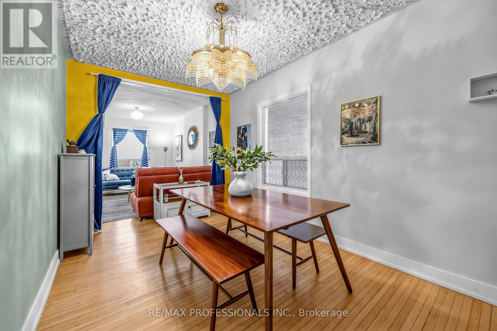 Located in Toronto's vibrant Dufferin Grove Neighbourhood, 219 St. Helens Ave is a true city gem offering many thoughtful updates and modern finishes throughout, plus a detached garage with laneway access - a valuable feature in the city. The main floor offers a bright, functional layout with a separate dining room and an eat-in kitchen, perfect for everyday living and entertaining. Upstairs you will find 3 bedrooms with a renovated bathroom, including a spacious and sun-filled primary bedroom. The finished basement, with separate entrance, includes a second kitchen, spacious rec room, bathroom, laundry, and storage, ideal for an in-law suite or potential income use. Outside, enjoy a fenced backyard with garden and patio, along with the detached garage which provides added convenience while also presenting the opportunity to build a two-storey laneway house, a compelling option for additional income and long-term value (see report). Recent upgrades include updated electrical (2017), roof and chimney (2017), skylight (2017), upstairs bathroom (2020), new main floor tile (2024), eavestroughs (2024), and main water valve/city connection (2025). Located on a quiet, family-friendly street with long-term neighbours, just steps to MacGregor Park and a short walk to Lansdowne subway station, with the new Lansdowne GO Station nearby. Enjoy exceptional connectivity with quick access to downtown via subway, GO Transit, UP Express, and streetcar routes, making commuting across the city fast and convenient. Close to High Park, Roncesvalles, and Dufferin Mall. A fantastic opportunity in a prime west-end location! (id:43681)