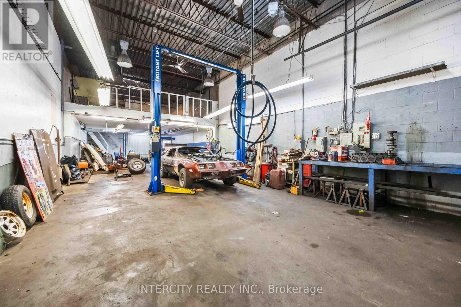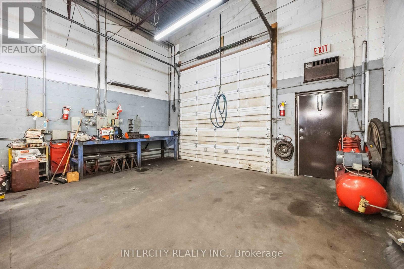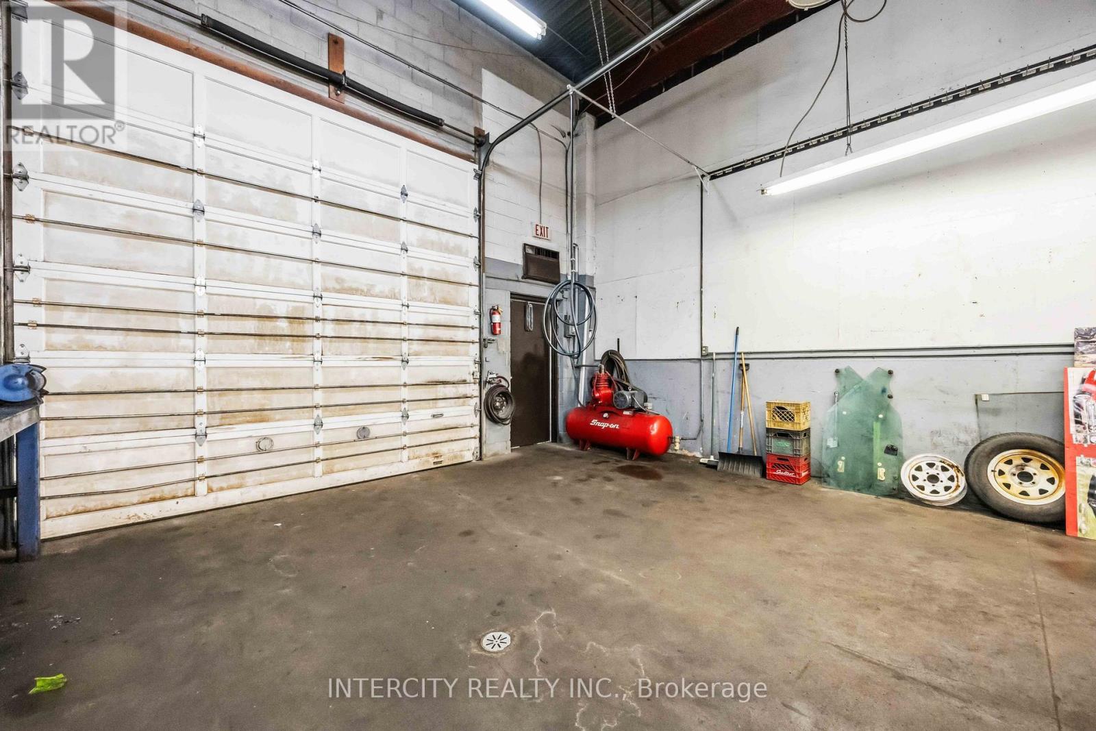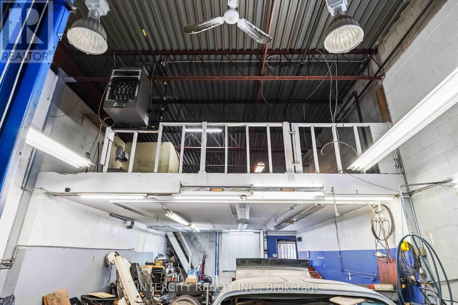 Well-maintained industrial unit offering approx. 1,347 sq. ft. plus upper mezzanine. Located in a high-demand employment corridor with excellent access to major routes. Zoned EM1 & EM2, permitting a wide range of uses including automotive, light manufacturing, warehousing, and service-related businesses. Unit is equipped with 1 hoist, 1 air compressor, and 2 work benches, making it ideal for automotive or trades and left for tenants use. Features include a large rear drive-in bay door for shipping/receiving and a separate rear man door for convenient access. Functional layout with efficient use & added mezzanine for storage or office. (id:43681)
