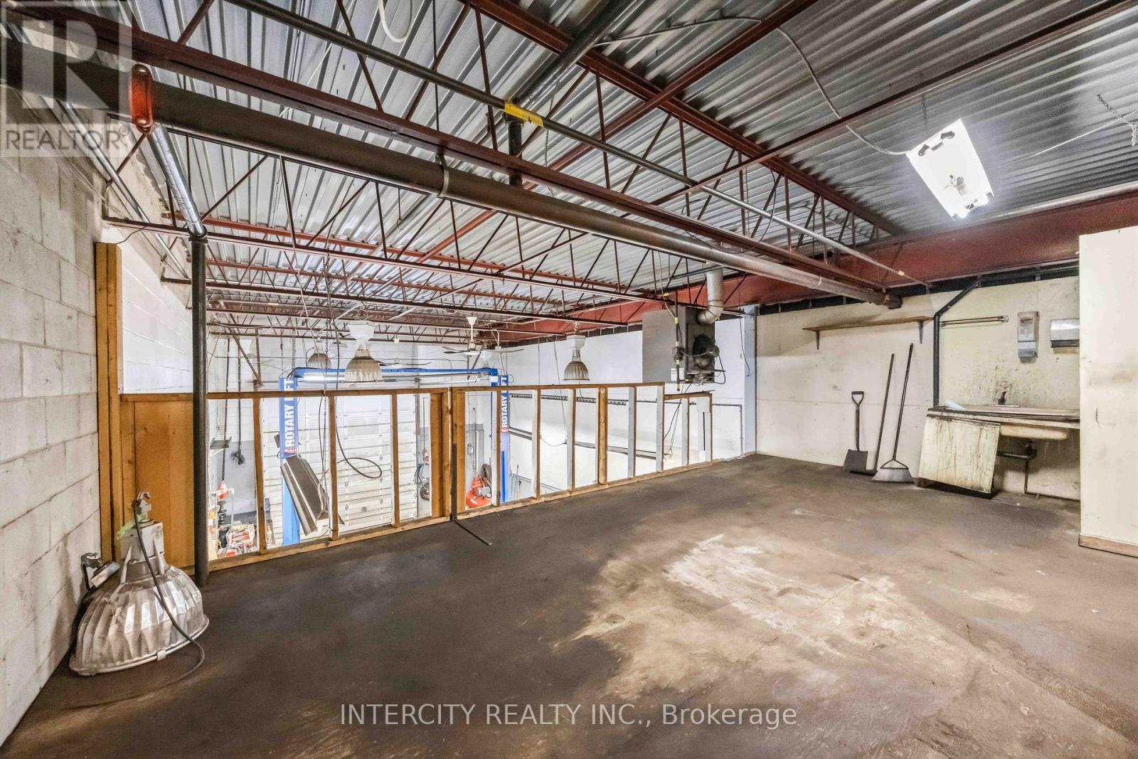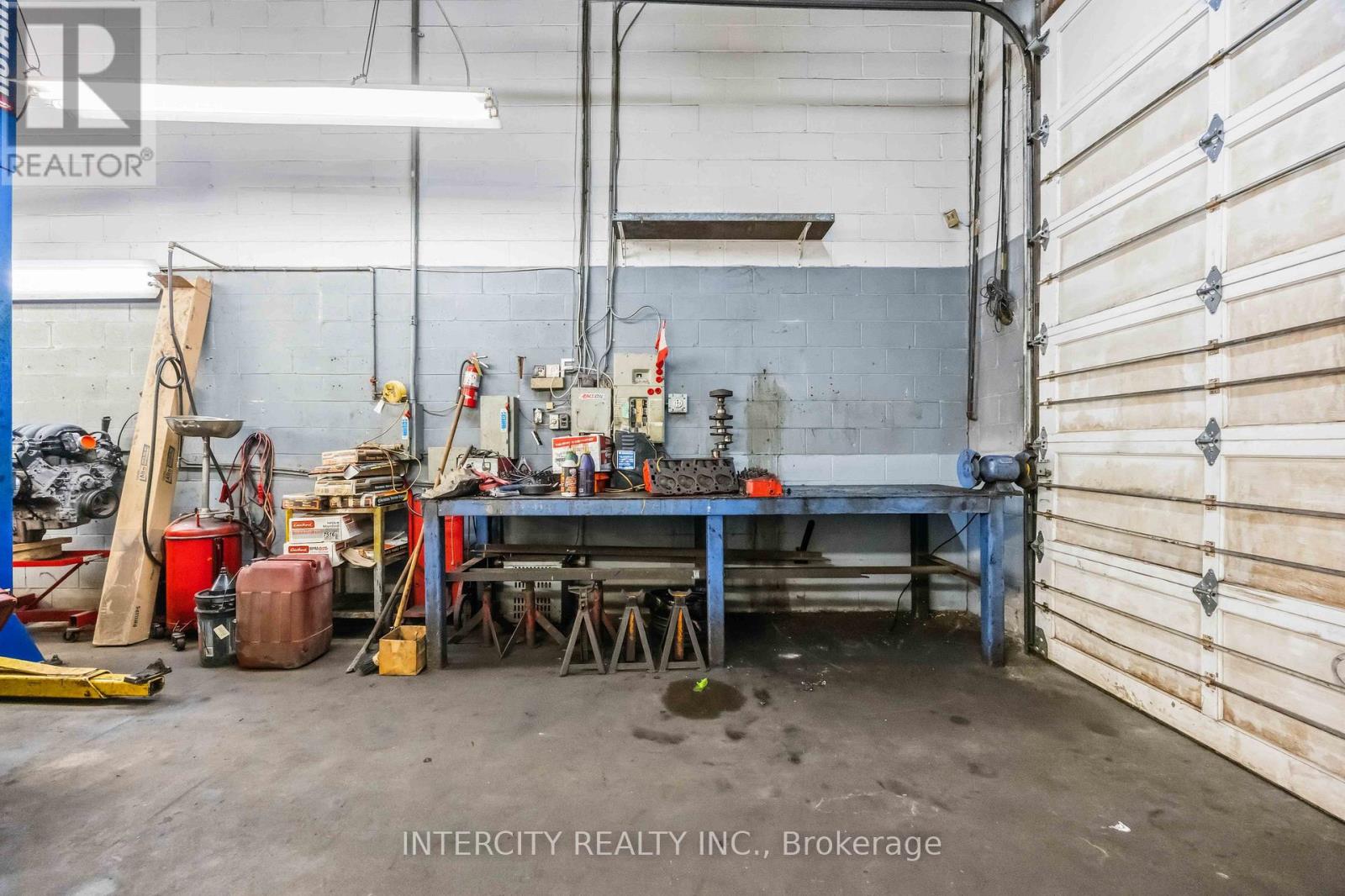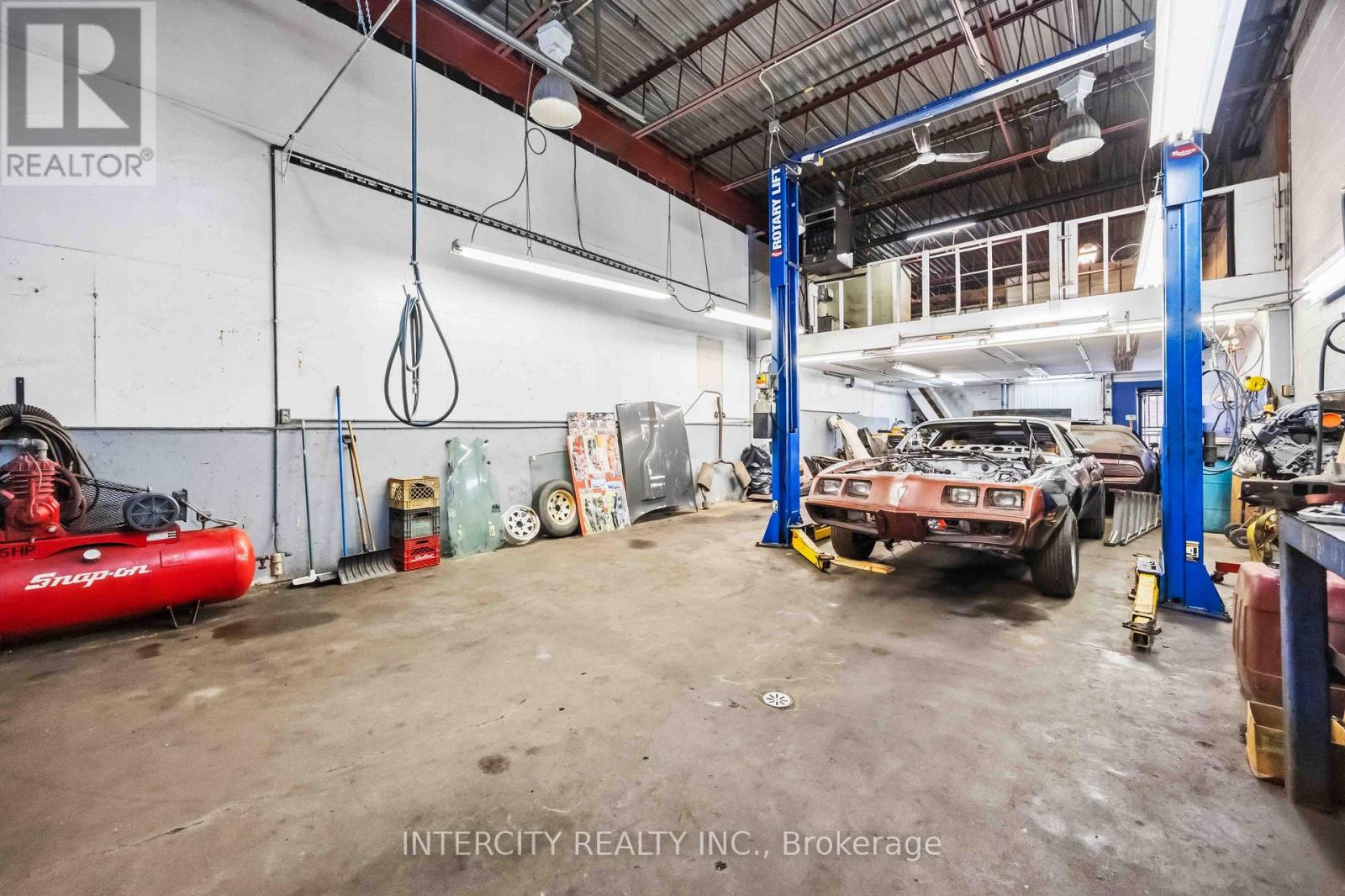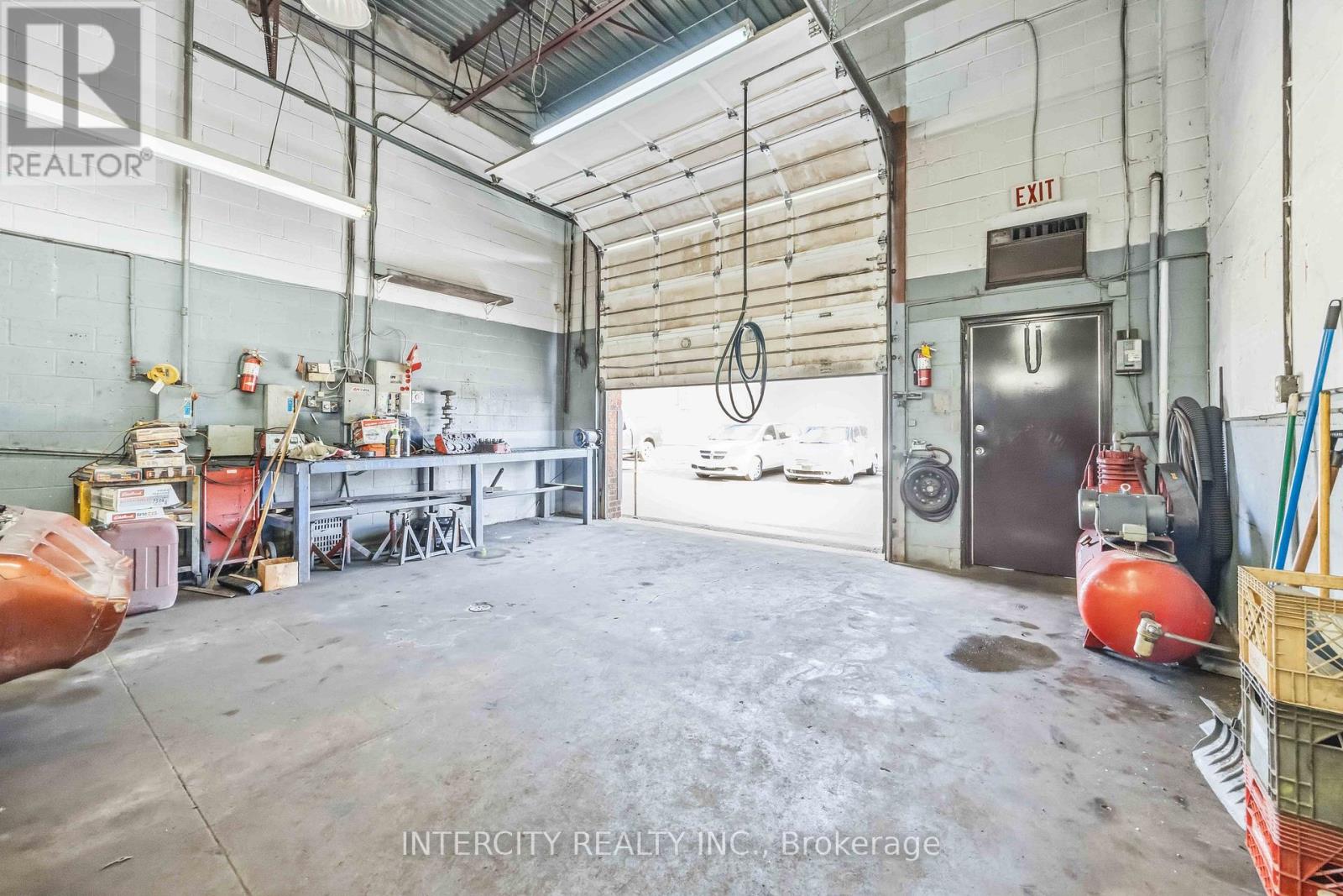 Well-maintained industrial unit offering approx. 1,347 sq. ft. plus upper mezzanine. Located in a high-demand employment corridor with excellent access to major routes. Zoned EM1 & EM2, permitting a wide range of uses including automotive, light manufacturing, warehousing, and service-related businesses. Unit is equipped with 1 hoist, 1 air compressor, and 2 work benches, making it ideal for automotive or trades and left for tenants use. Features include a large rear drive-in bay door for shipping/receiving and a separate rear man door for convenient access. Functional layout with efficient use & added mezzanine for storage or office. (id:43681)