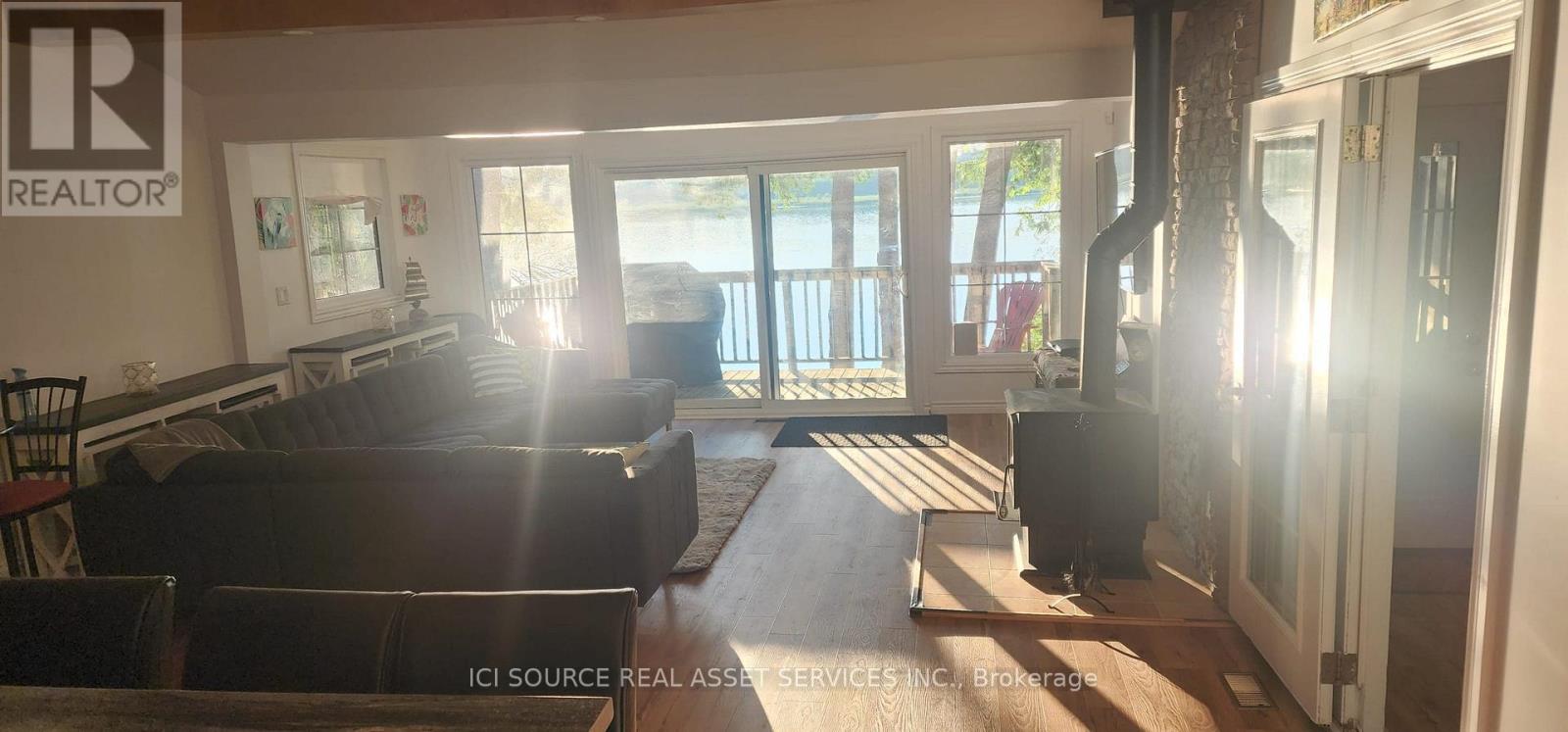 Step into a storybook setting with this cozy 3-bedroom, 2-bath retreat nestled among mature pine trees. Enjoy serene lake views from your private deck, or curl up by the wood stove fireplace on chilly evenings. Featuring hardwood floors and sun-drenched rooms, with big beautiful windows. This lovingly maintained cottage offers the perfect, simple getaway. Just minutes from the town of Hastings, you're close to amenities yet feel worlds away. This cottage features an open-concept layout, the chef's kitchen boasts custom cabinetry and stainless steel appliances, flowing seamlessly into a bright, airy living space with panoramic lake views. Multiple decks at the front and back, with plenty of space to host your family and friends. This is a 4 season home/cottage and is also a great investment property as it comes with its Top Tier VRBO account, which is fully booked every summer. The cottage is sold furnished, with pedal boats, and kayaks, and with a separate 18x20 bunkie that can be used as a workshop or converted as an extra cottage. Don't miss this rare opportunity to own your slice of paradise. *For Additional Property Details Click The Brochure Icon Below* (id:43681)