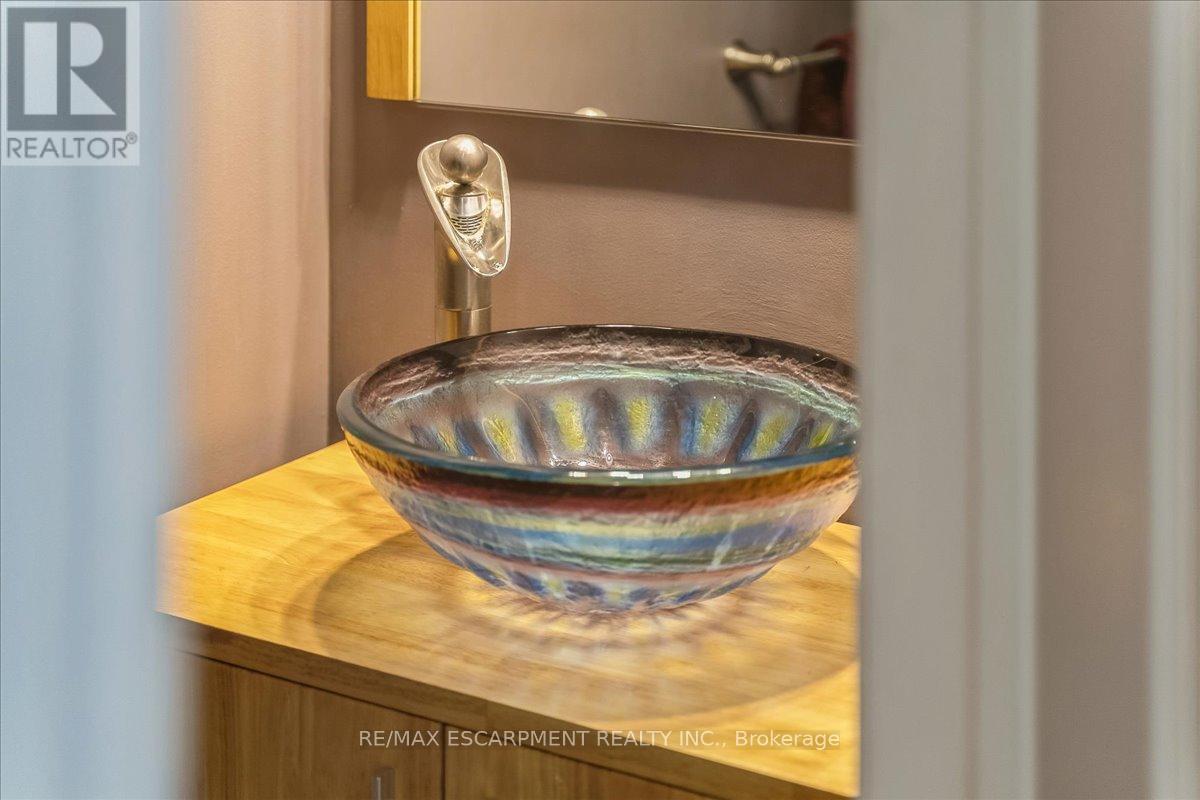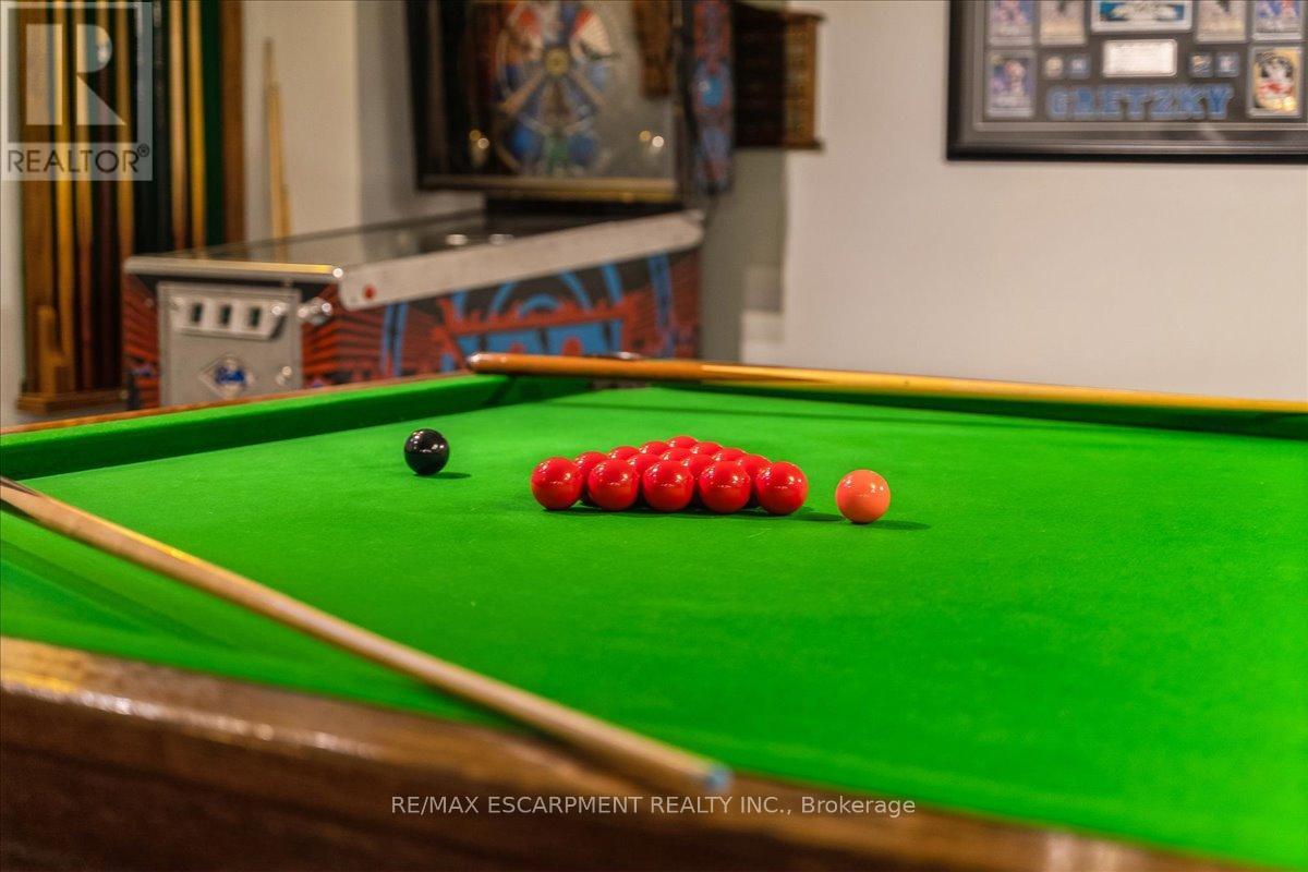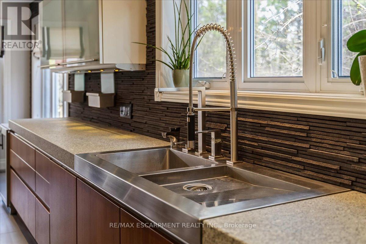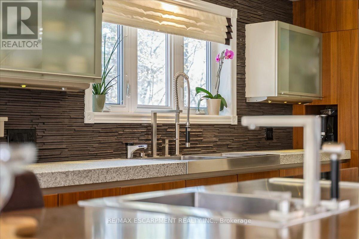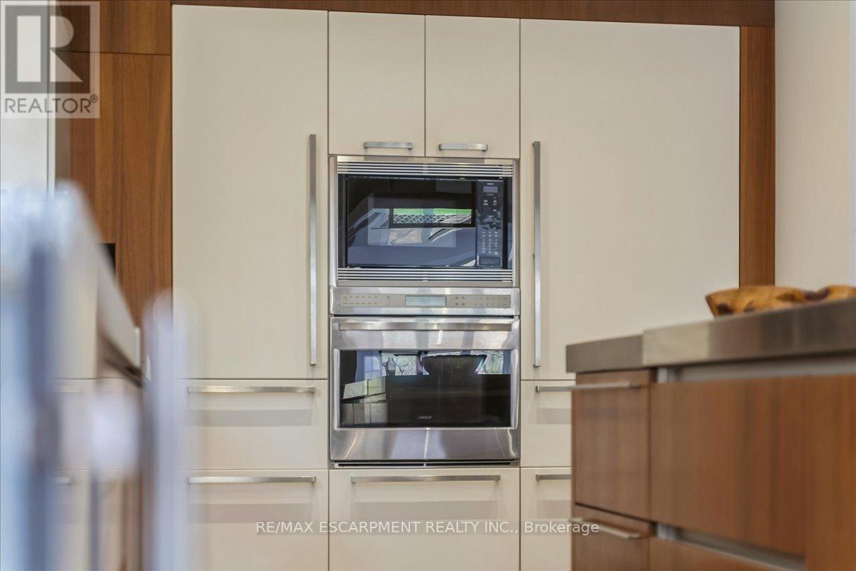 Set on one of River Oaks' most coveted streets, known for its estate-sized lots and executive homes, this is a rare opportunity to own a residence that feels completely immersed in nature. With forest and walking paths wrapping the rear and south side, and a ravine beyond, the setting is incredibly private-something almost unheard of in Oakville. Offering over 4,200 sq. ft. above grade and 6,000 sq. ft. of finished living space, the home has been impeccably maintained and thoughtfully upgraded, blending scale, warmth, and timeless character. At its heart is a truly exceptional custom kitchen by BINNS Kitchens of Toronto, a $285K investment designed for those who love to cook and entertain. Anchored by a dramatic 15 ft island and equipped with Sub-Zero and Wolf appliances, the space is as functional as it is striking. It flows effortlessly into a sun-filled solarium with four skylights and garden doors on both sides, opening to two private decks and creating a seamless indoor-outdoor experience. The main floor offers beautifully proportioned principal rooms, a welcoming family room with wood-burning fireplace, a refined dining space with architectural openings that allow light to move through the home, and a versatile front den perfect as a library or office. Upstairs, four generous bedrooms and three full baths provide comfort for family and guests, along with a separate study tucked behind French doors. The lower level is designed for unforgettable evenings, featuring a classic wood bar with brass rail, a full-size snooker table, gas fireplace, and abundant space to relax, entertain, or unwind-complete with a steam shower bathroom. Surrounded by mature landscaping, enhanced with stonework, lighting, irrigation, and modern conveniences including a Tesla charger, this is a home that offers not just space, but a lifestyle-private, inviting, and truly rare. (id:43681)