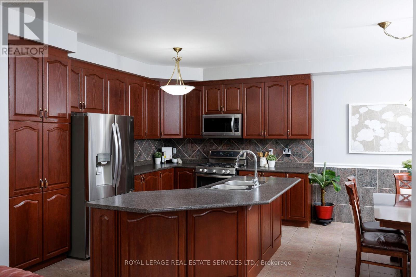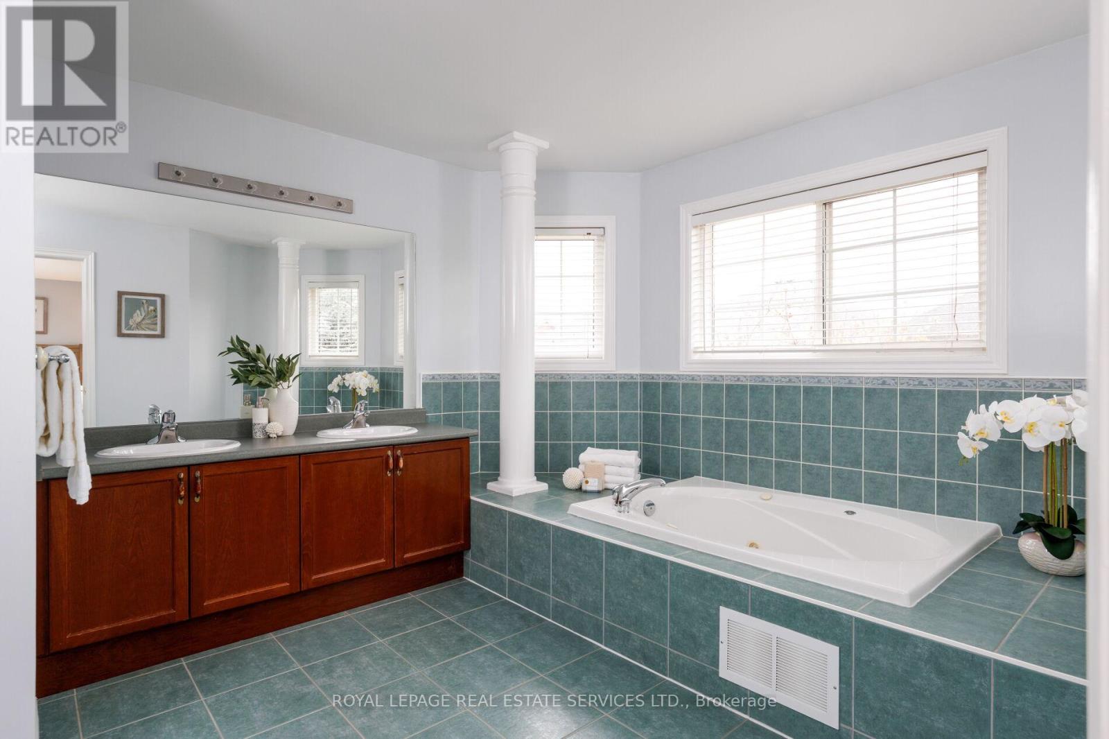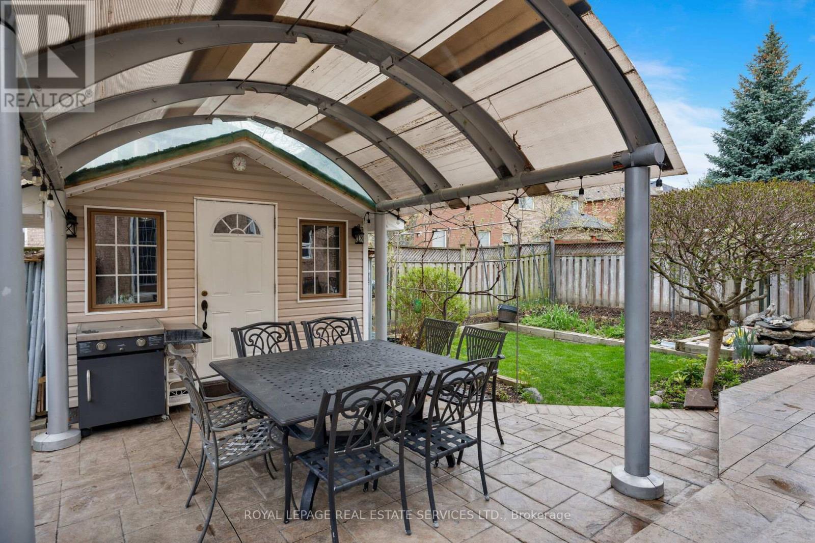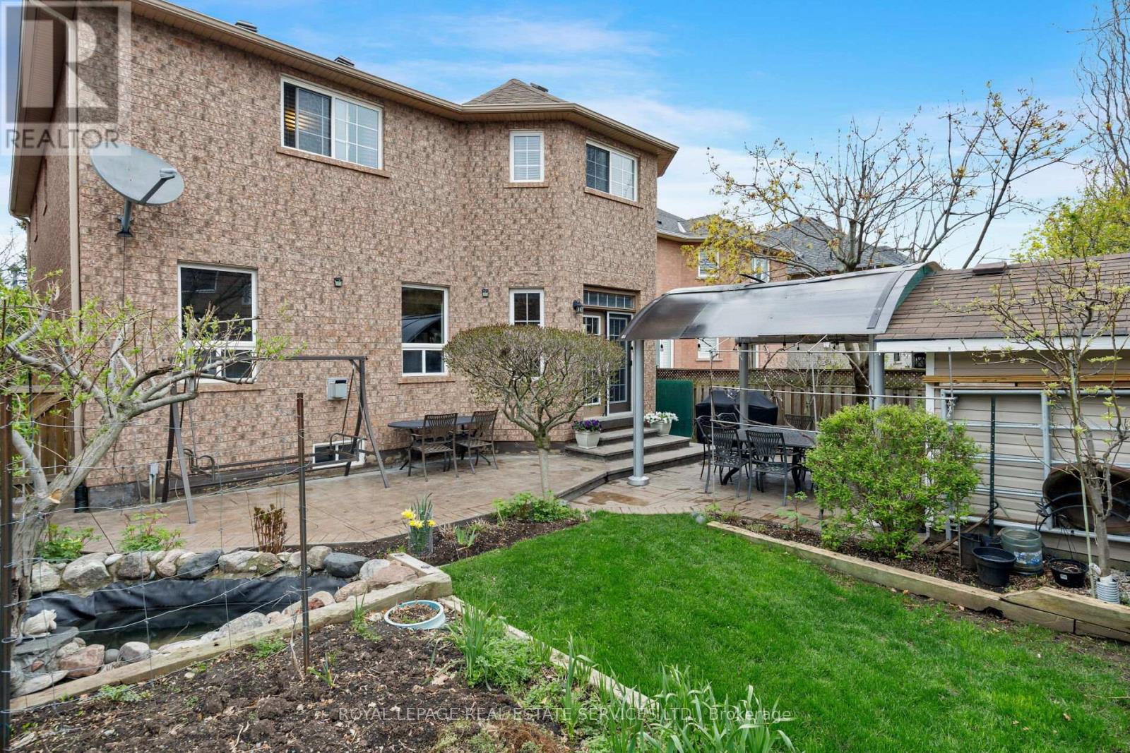 Beautifully presented 5-bedroom, 4-bathroom National Home in Oakville's sought-after Westmount community, renowned for its parks, scenic trails, top-rated schools, and proximity to Oakville Trafalgar Memorial Hospital. Easy access to shopping, restaurants, recreation centres, and major commuter routes, including the QEW and 407 ETR. Showcasing exceptional curb appeal, the home features a triple-wide Hosta lined, 6 car patterned concrete driveway, manicured front gardens with ornamental trees and blue spruce, and patterned concrete walkways leading to a private, fully fenced backyard retreat with lush landscaping, a garden shed, and a two-tier patio with a water feature-perfect for outdoor entertaining. Inside, refined finishes include 9-foot ceilings, hardwood flooring, wainscotting, and a striking, solid oak staircase. The main level offers an open-concept living and formal dining room with tray ceiling and decorative column, a private den with French doors, and a spacious eat-in kitchen with chestnut-stained cabinetry, a custom island with breakfast bar, stainless steel appliances including a gas range, and a bright breakfast area with walkout to the patio. The adjoining family room features a cozy gas fireplace and direct sightlines to the kitchen. A powder room and sunken laundry with inside entry to the double garage complete the main level. The mid-level boasts a private fifth bedroom suite with 11-foot ceilings, a bay window, a walk-in closet, and a 4-piece ensuite-ideal for guests or in-laws. Upstairs offers four generous bedrooms and two full baths, including a spacious primary retreat with a luxurious 5-piece ensuite with whirlpool tub and separate shower. Additional highlights include a cold room and bathroom rough-in in the basement, plus updated roof shingles and furnace (2017/18)-an exceptional family home in a prime Oakville location. (id:43681)