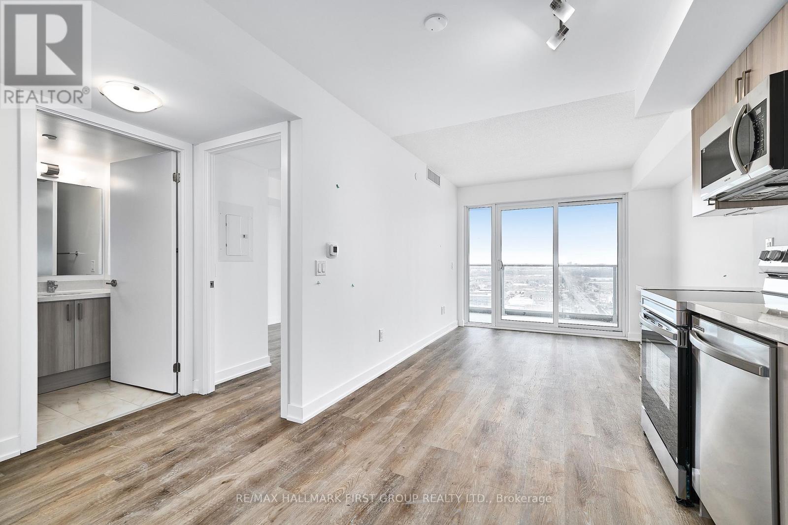 Step into modern living with this brand new, never-lived-in 1-bedroom, 1-bathroom condo in Pickering's newest condominium building. Designed with a sleek, carpet-free interior, the unit features durable vinyl flooring throughout and a bright, open-concept layout that maximizes both space and natural light. The contemporary kitchen is beautifully finished with quartz countertops, stainless steel appliances, and elegant under-cabinet lighting-perfect for everyday living and entertaining alike. Situated on a high floor, the unit boasts unobstructed east-facing views with additional south views toward Lake Ontario. The spacious bedroom features floor-to-ceiling windows that flood the space with natural light and showcase the beautiful eastern exposure. Residents enjoy access to exceptional building amenities including a fully equipped gym, pet spa, three outdoor patios, an outdoor pool with rooftop terrace, and two party rooms-perfect for entertaining or relaxing. Ideally located just steps from Pickering GO Station and Pickering Town Centre, with the Pickering waterfront and Frenchman's Bay only a short drive or a 15-minute walk away. This is a fantastic opportunity to enjoy brand-new condo living in a vibrant and convenient community. (id:43681)
