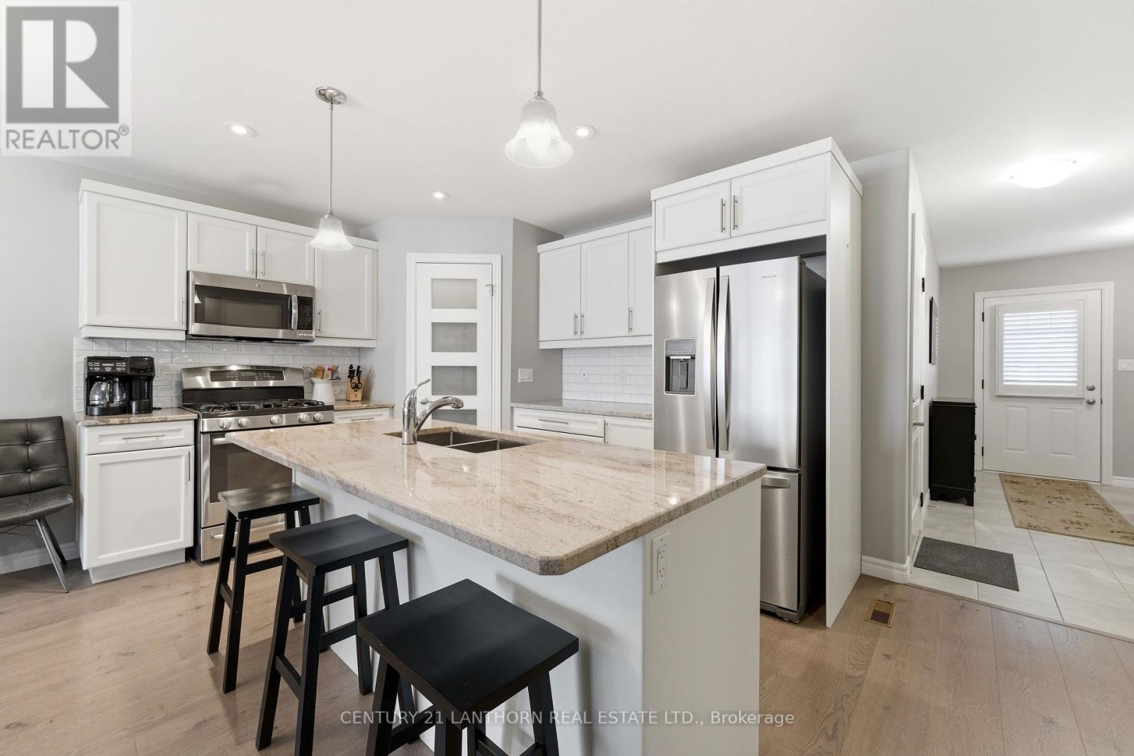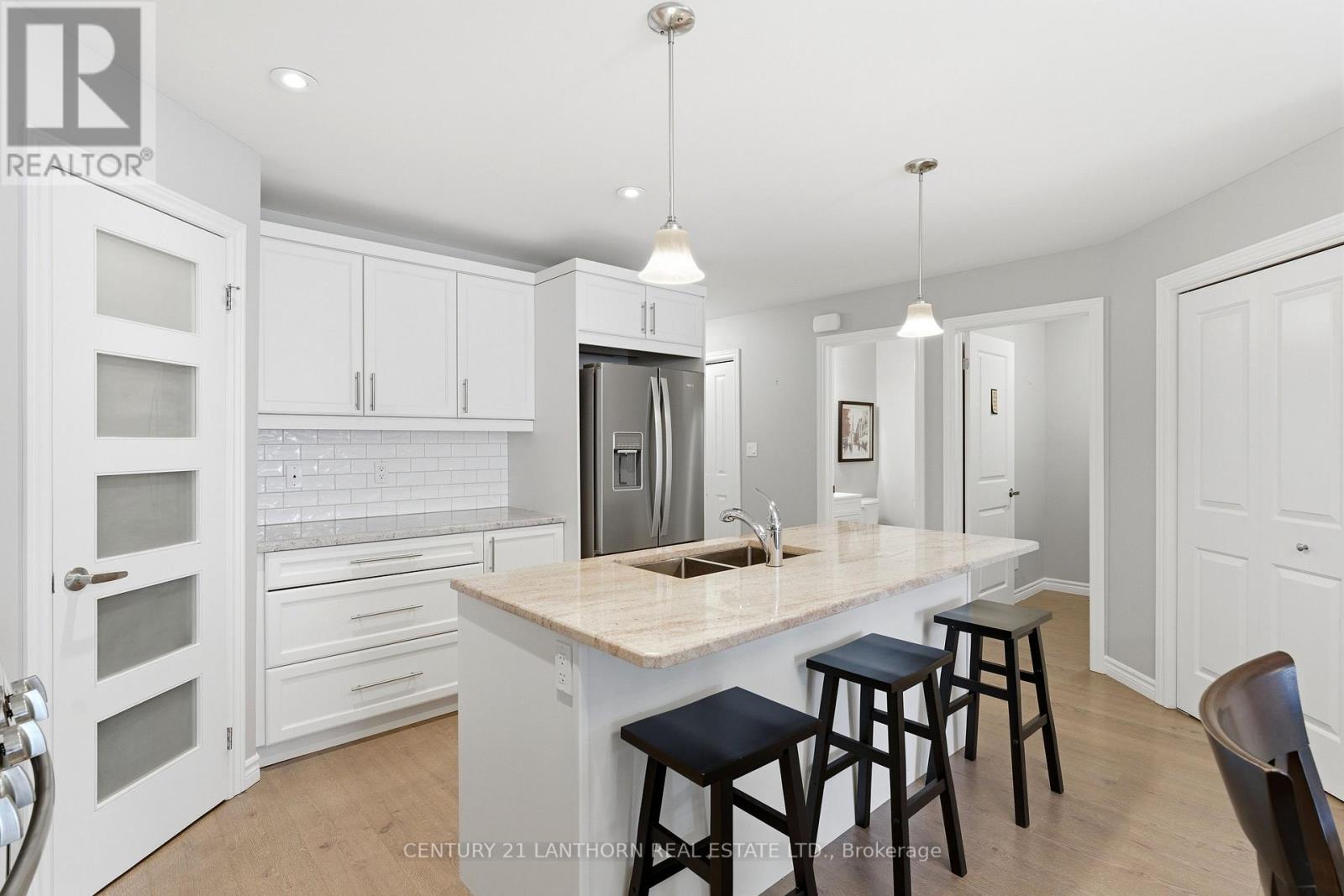 Welcome to 25 Cobblestone Street in Belleville's desirable southwest neighborhood of Potter's Creek. This beautifully finished home offers tasteful one level living with a thoughtfully designed layout that balances comfort and functionality throughout. The main floor features seamless flooring, elegant cabinetry, granite countertops in the kitchen and bathrooms, custom closet shelving, and a well designed laundry space with built in cabinetry. With 2 bedrooms, 3 bathrooms, and a versatile den, this home provides flexible living options ideal for guests, hobbies, or working from home. The fully finished lower level expands the living space with a large recreation area, additional bedroom, full bathroom, and den. The true highlight of this property is the peaceful backyard setting overlooking the stormwater pond, offering no rear neighbors, open views, natural wildlife, and a calm waterfront style backdrop rarely found within the city. Located in one of Belleville's most sought after southwest neighborhoods, this home offers a wonderful opportunity to enjoy comfort, privacy, and lifestyle in a fantastic location. (id:43681)