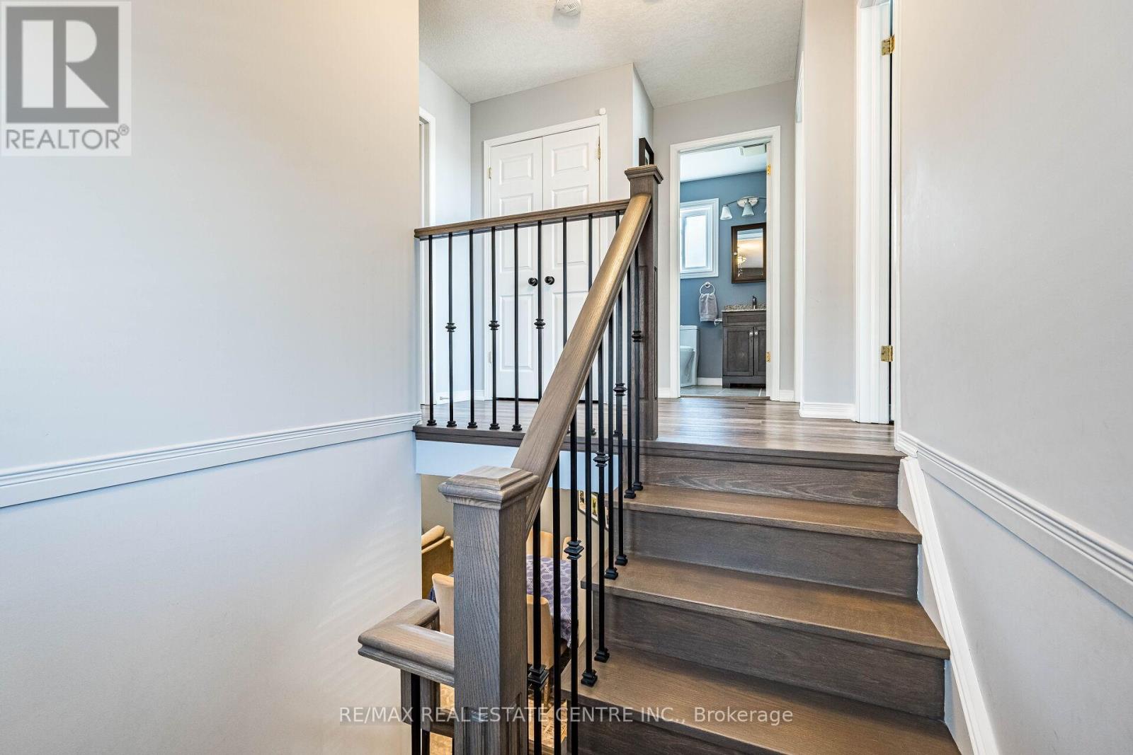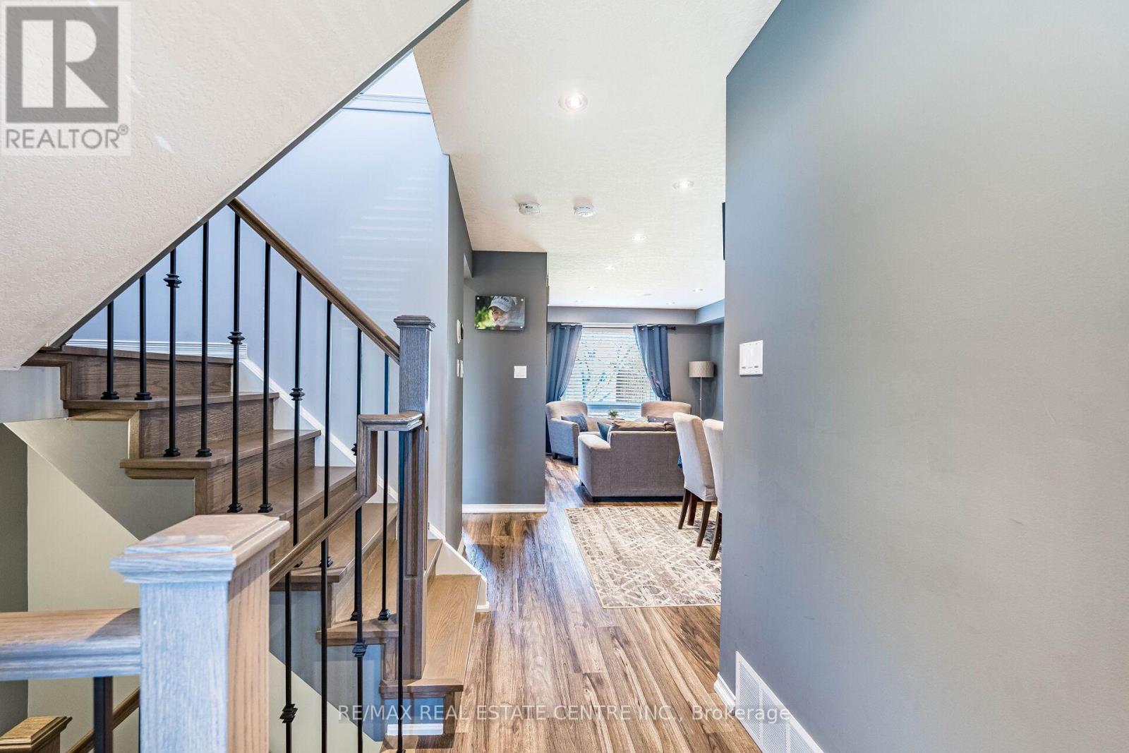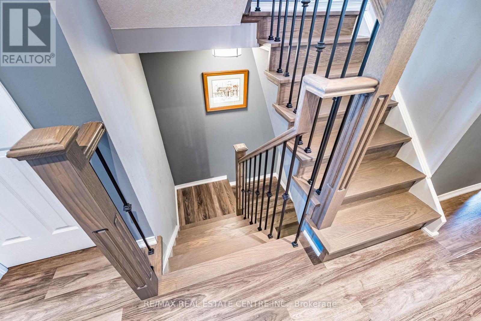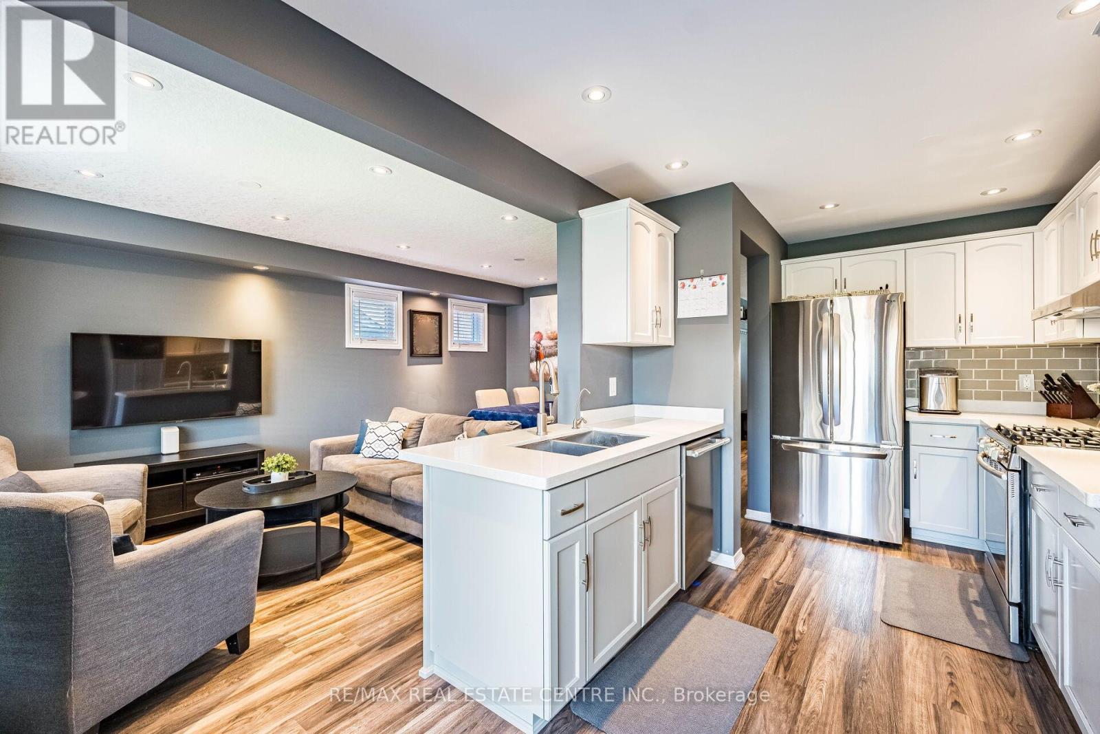 Welcome to 25 Settlers Road, perfectly situated in the heart of beautiful West Orangeville. This Detached Stunning 2-Storey Home is professionally painted and offers tasteful finishes throughout and plenty of space for the whole family to grow and gather. The main floor features a bright, open-concept living and dining room, an inviting modern kitchen with walkout to the backyard and new deck, featuring stainless steel appliances with gas stove and Corian counter tops, fully fenced yard-ideal for entertaining or relaxing outdoors. Enjoy the added convenience of inside access to the garage. Upstairs, you'll find three generously sized bedrooms and two four-piece bathrooms with primary bedroom ensuite with double sink and Glass Shower, providing comfortable accommodations for the entire household. Basement is professionally finished for the ideal rec/family room with vinyl flooring making the home carpet free. True Pride of Ownership this home shows beautifully and has been thoughtfully maintained with major updates, Furnace (2020), A/C (2021) Windows (2020), Oak Stair Railings Vinyl Flooring Thru-Out (2020), Reverse Osmosis Filter (2020), Back fence (2021), Deck (2025) Front exposed concrete entry and driveway border (2025)Attic Insulation (2025) Garage Door and Wi-Fi Opener (2025). pot lights Thru-Out Main and Lower Level.Truly Maintenance Free Just Move In Priced To Sell Great Value In Great Family Town! (id:43681)
