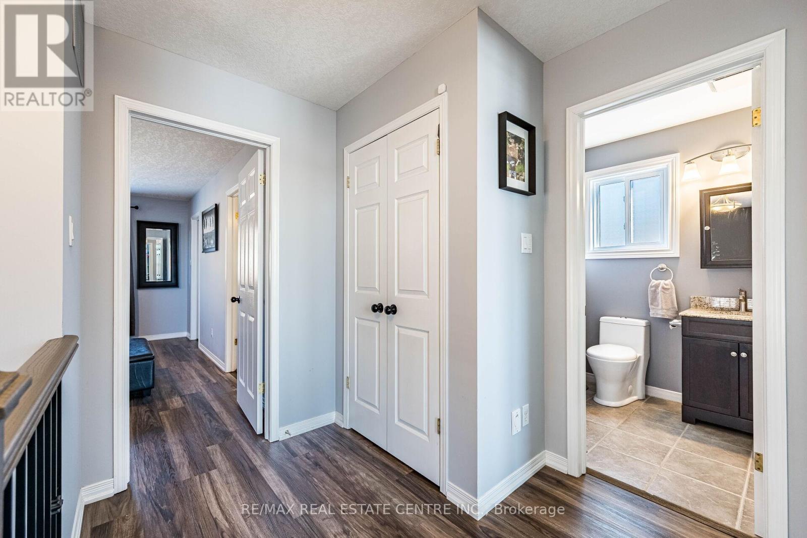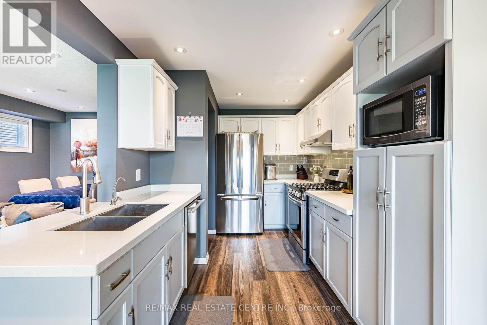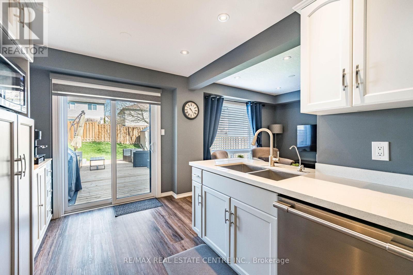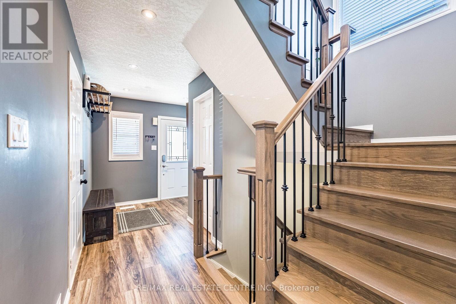 Welcome to 25 Settlers Road, perfectly situated in the heart of beautiful West Orangeville. This Detached Stunning 2-Storey Home is professionally painted and offers tasteful finishes throughout and plenty of space for the whole family to grow and gather. The main floor features a bright, open-concept living and dining room, an inviting modern kitchen with walkout to the backyard and new deck, featuring stainless steel appliances with gas stove and Corian counter tops, fully fenced yard-ideal for entertaining or relaxing outdoors. Enjoy the added convenience of inside access to the garage. Upstairs, you'll find three generously sized bedrooms and two four-piece bathrooms with primary bedroom ensuite with double sink and Glass Shower, providing comfortable accommodations for the entire household. Basement is professionally finished for the ideal rec/family room with vinyl flooring making the home carpet free. True Pride of Ownership this home shows beautifully and has been thoughtfully maintained with major updates, Furnace (2020), A/C (2021) Windows (2020), Oak Stair Railings Vinyl Flooring Thru-Out (2020), Reverse Osmosis Filter (2020), Back fence (2021), Deck (2025) Front exposed concrete entry and driveway border (2025)Attic Insulation (2025) Garage Door and Wi-Fi Opener (2025). pot lights Thru-Out Main and Lower Level.Truly Maintenance Free Just Move In Priced To Sell Great Value In Great Family Town! (id:43681)