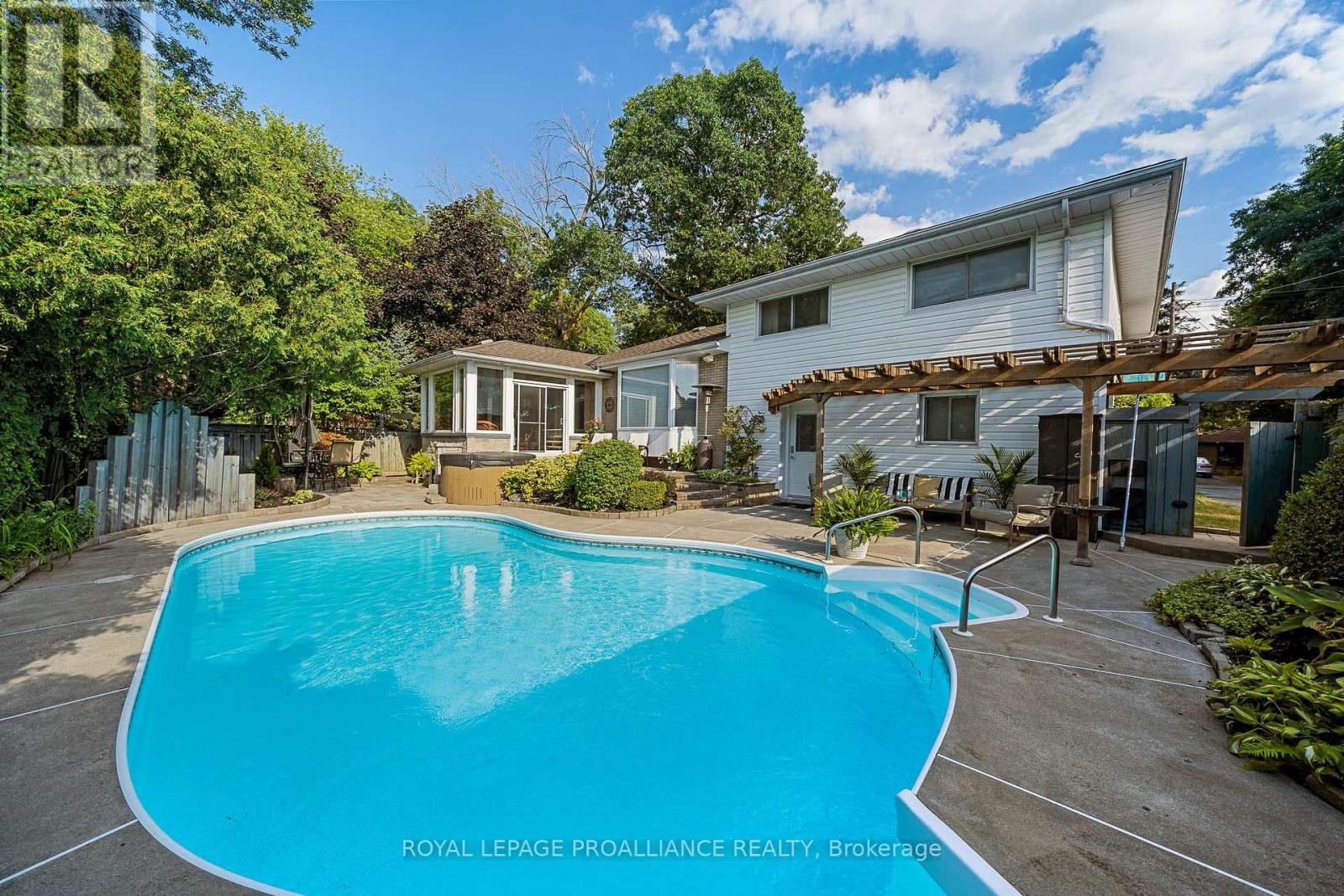 Nestled in a sought after peaceful neighbourhood this East end beauty has been thoughtfully renovated for the discriminating Buyer. Featuring new flooring, baths, lights, doors, trim and freshly painted throughout this multilevel home has been lovingly maintained and offering over 2,700sf of finished living space, it is perfect for today's busy families. An oversized dining and living room (with wall to wall custom oak built-ins and gas fireplace) opens to a three season sun room overlooking the professionally designed back yard.The chef's style galley kitchen is flooded with light from the large windows and offers loads of storage & counter space. Up just a few steps you will find the king sized primary suite with a new walk in closet and a 4pc ensuite with a custom tile shower featuring multiple shower heads, 2 large guest bedrooms and a new 4pc bath. The 4th bedroom is conveniently located on the main floor and also makes an amazing office overlooking the pool. A secondary mudroom entrance with a 2pc bath, access to the attached garage, a super handy change room and additional access to the pool finishes out the ground floor. The lower level features a large finished recroom, a fresh new laundry room and even more storage space. Designed with entertaining in mind, the gorgeous private back yard features an inground pool, multi level patios, multiple seating areas, a fire pit and is wired for sound. Ideally situated right next to Stanley Park means your yard space is extended exponentially. Walking distance to schools, shopping and the Bayshore Trail. (id:43681)