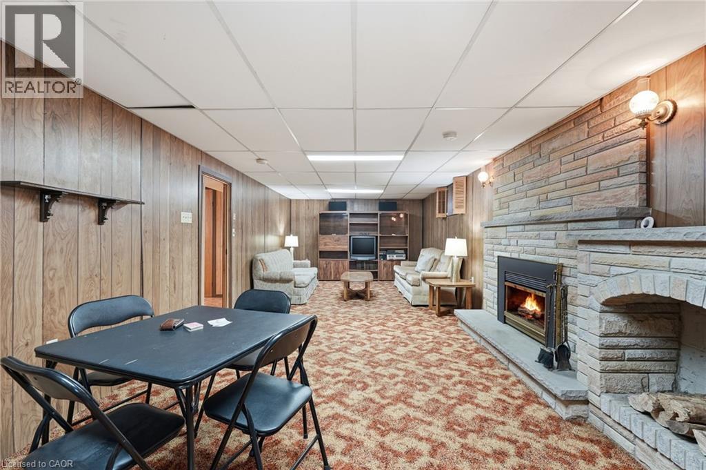 Welcome to this Charming West Hamilton 4-bedroom Bungalow. This well cared and spotless home features 3+1 bedrooms, 2 baths, Spacious eat-in kitchen with plenty of cupboard space. Spacious main floor living area, main floor bedroom currently being used as dining area, original Hardwood floors under the main floor carpeting, large windows creating ample lighting throughout. Separate entrance to full finished basement, large recreation room with gas fireplace, 4th Bedroom, spacious storage and laundry area. Step outdoors, relax and enjoy the privacy of your own walk out cement patio, overlooking mature trees, large fenced yard and green park space, shed, ample parking available. Roof replaced in (2019), AC (2024). This home is conveniently located just minutes to all amenities, a short walk to schools and McMaster University, large city park across the street, rail trail access, grocery and retail stores, and on public transit bus and school route. Don’t miss your chance to own this charming and conveniently located home! An absolute must-see!! (id:43681)