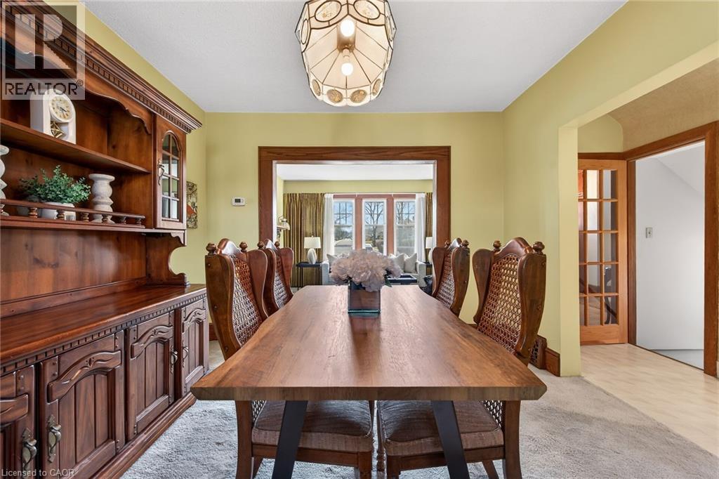LOCATION, LOCATION, LOCATION! Situated in highly desirable Hamilton Mountain, this immaculately maintained 2-storey, 4-bedroom home is within walking distance to top-rated schools, parks, & all amenities, w/quick access to Downtown Hamilton, Red Hill Valley Parkway, Lincoln M. Alexander Parkway, Hwy 403 & the QEW. Step into timeless character & charm beautifully showcasing original craftsmanship throughout. From the handmade gumwood doors & trim to the original vents, this home is full of old-school elegance & warmth. A stunning wooden staircase leads to the upper level, while the main floor offers inviting principal rooms including a formal dining room w/custom interior window overlooking the sunken family room. Enjoy cozy evenings by the wood-burning fireplace in the living room or relax in the bright sunken family room featuring a gas fireplace & an abundance of natural light. The eat-in kitchen offers ample cabinetry & functional space for everyday living. Both the main & upper levels are equipped with 4-piece bathrooms for added convenience. Upstairs, one of the bedrooms opens onto a spacious private patio, ready to be transformed w/your own personal vision & style. The large unfinished basement w/separate side entry offers incredible potential for future customization & features interior waterproofing for added peace of mind. Complete w/generous backyard & shed w/hydro, this lovingly cared-for home is a rare blend of character, space & opportunity. (id:43681)