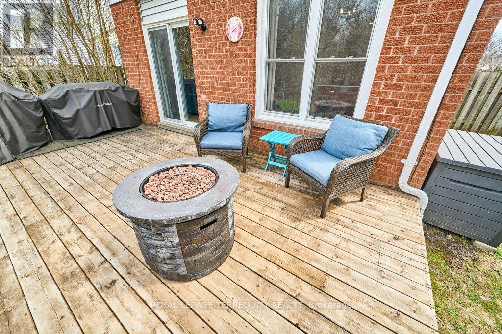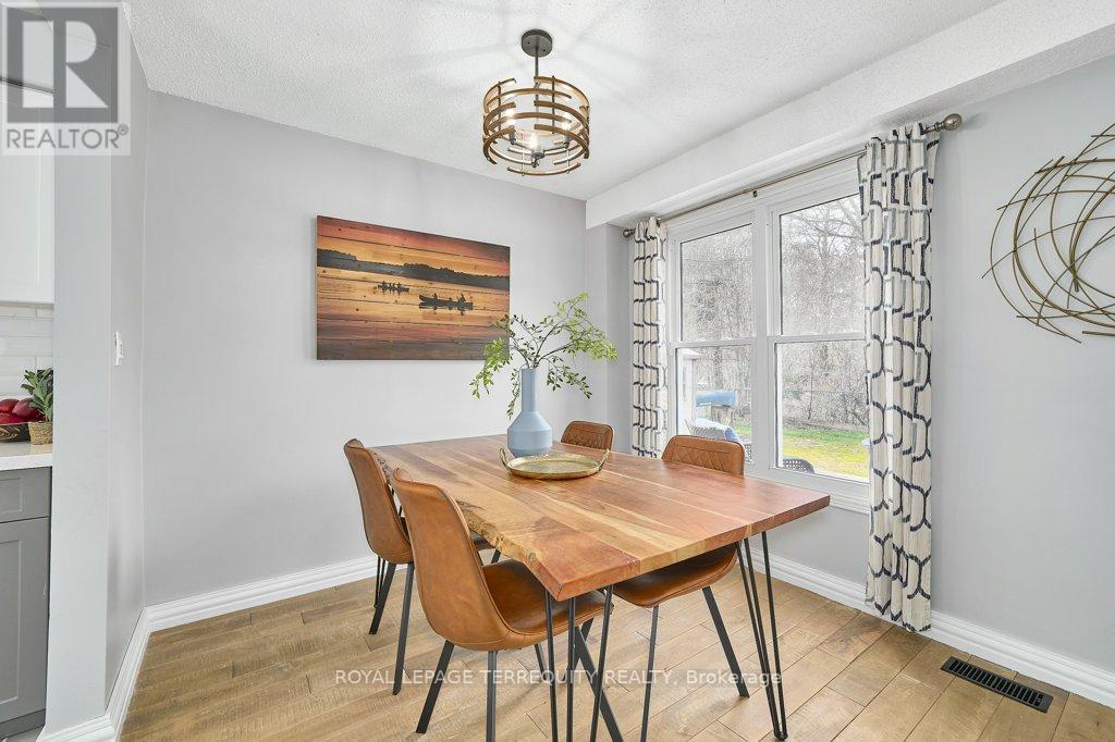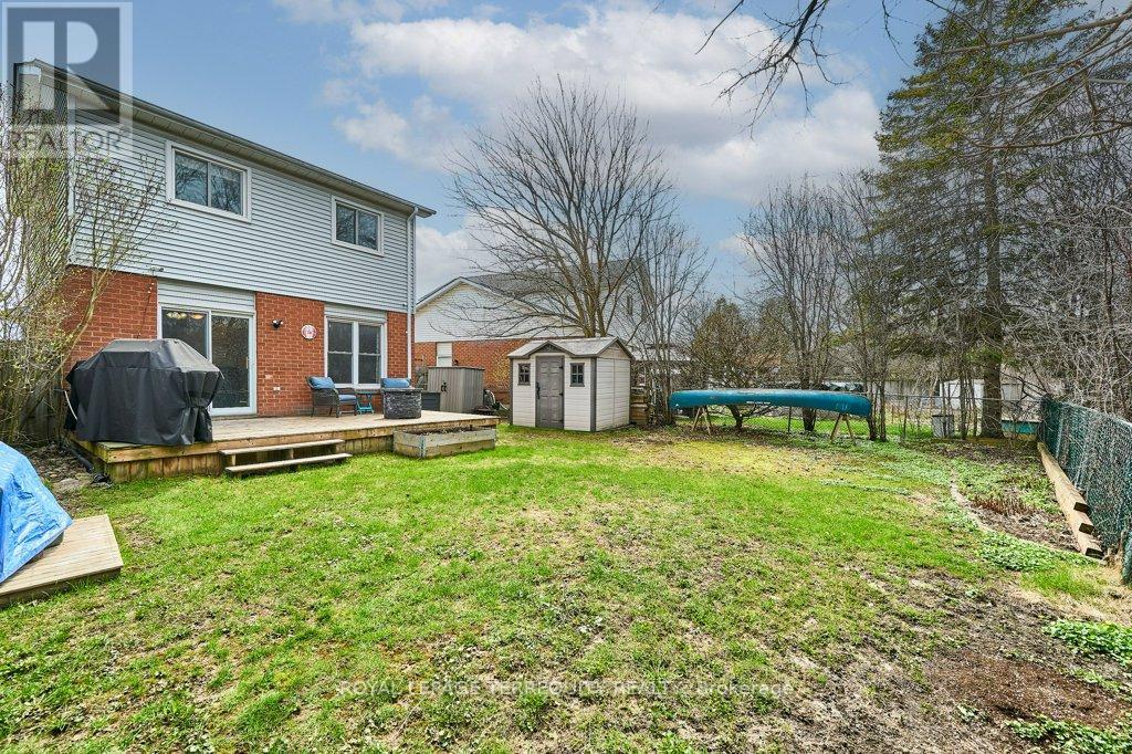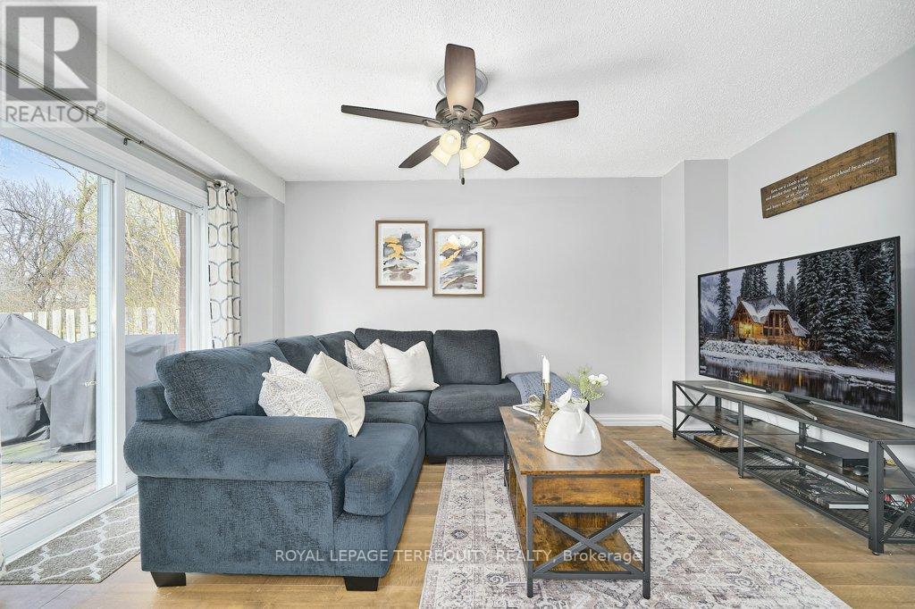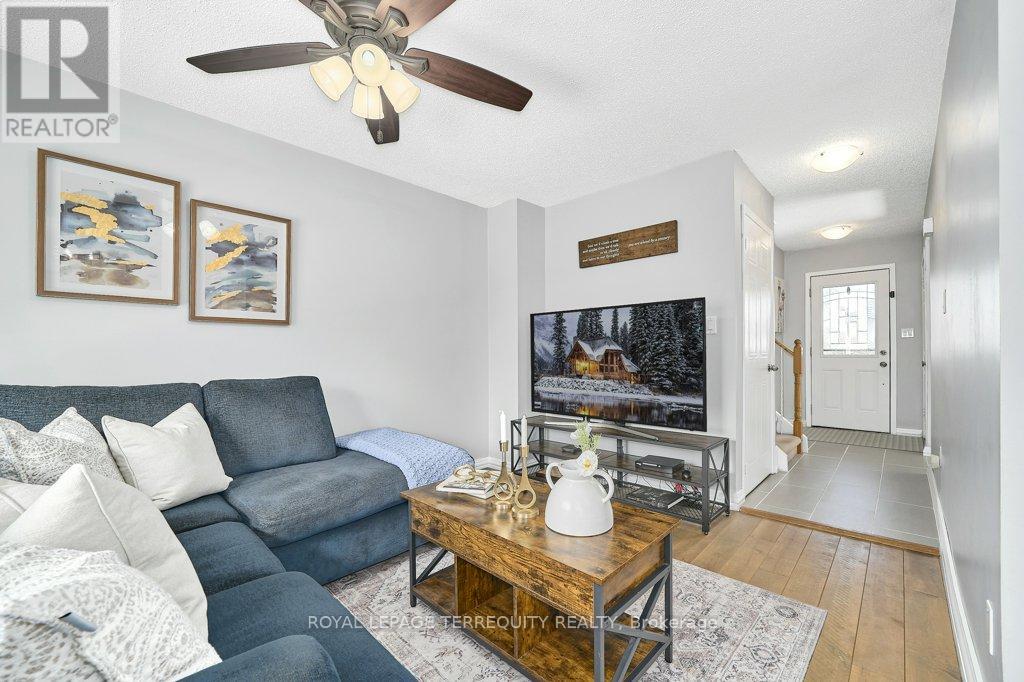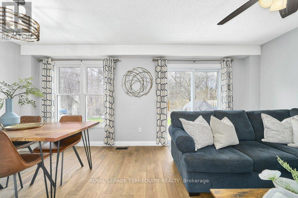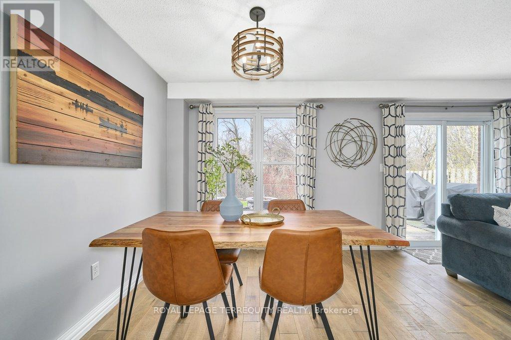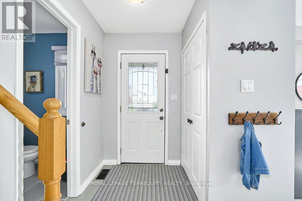 Peaceful, private, perfect! Welcome to this beautifully updated family home nestled in a desirable Courtice neighbourhood! Ideally located just minutes from shopping, transit, schools, and with convenient access to Highways 401 and 407, this home offers the perfect balance of tranquility and connectivity. Step inside to a warm and inviting foyer that leads into the open-concept living and dining area, highlighted by hand-scraped silver maple hardwood flooring. The updated kitchen is a true standout, featuring sleek quartz countertops, abundant cabinetry, and generous prep space - perfect for both everyday living and entertaining. Enjoy your morning coffee in the sunlit breakfast nook, where large windows flood the space with natural light. A walkout patio door seamlessly connects indoor and outdoor living, creating an ideal setting for relaxing or hosting guests. Upstairs, you'll find three generously sized bedrooms, each with ample closet space, along with a beautifully updated family bathroom. The finished lower level expands your living space with a versatile recreation room - perfect for movie nights, a playroom, or a home gym, plus an additional nook that can easily adapt to your lifestyle needs. Outdoors, the impressive pie-shaped backyard is your private retreat. Whether you're hosting summer barbecues on the deck or enjoying peaceful afternoons surrounded by nature, there's plenty of room for the whole family to unwind and play. This exceptional home truly has it all-don't miss your chance to make it yours! ** This is a linked property.** (id:43681)