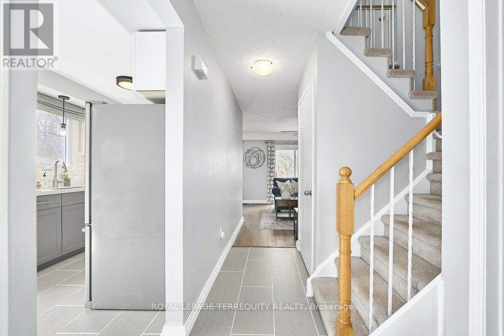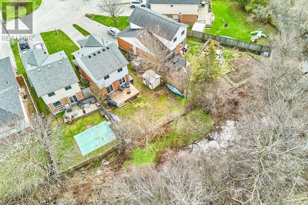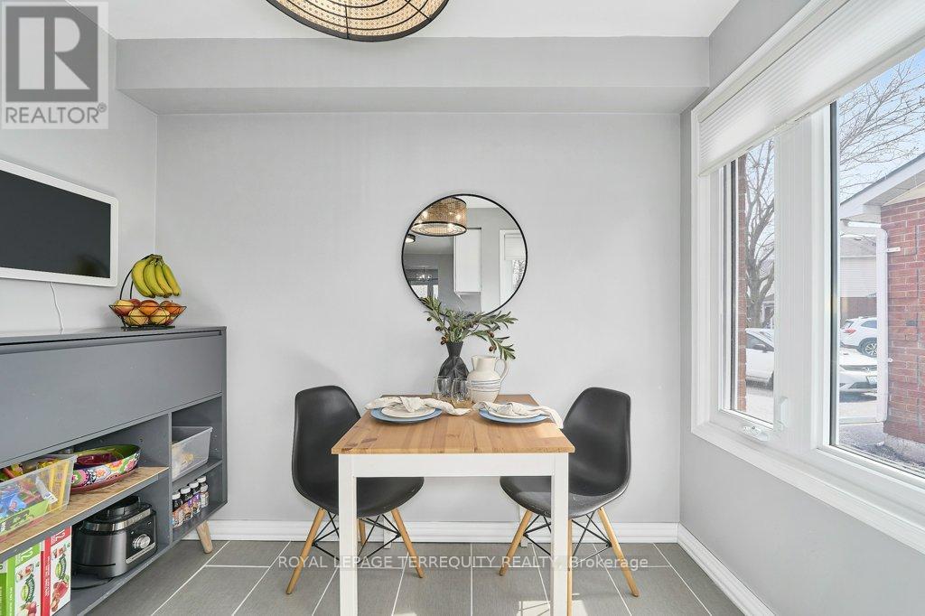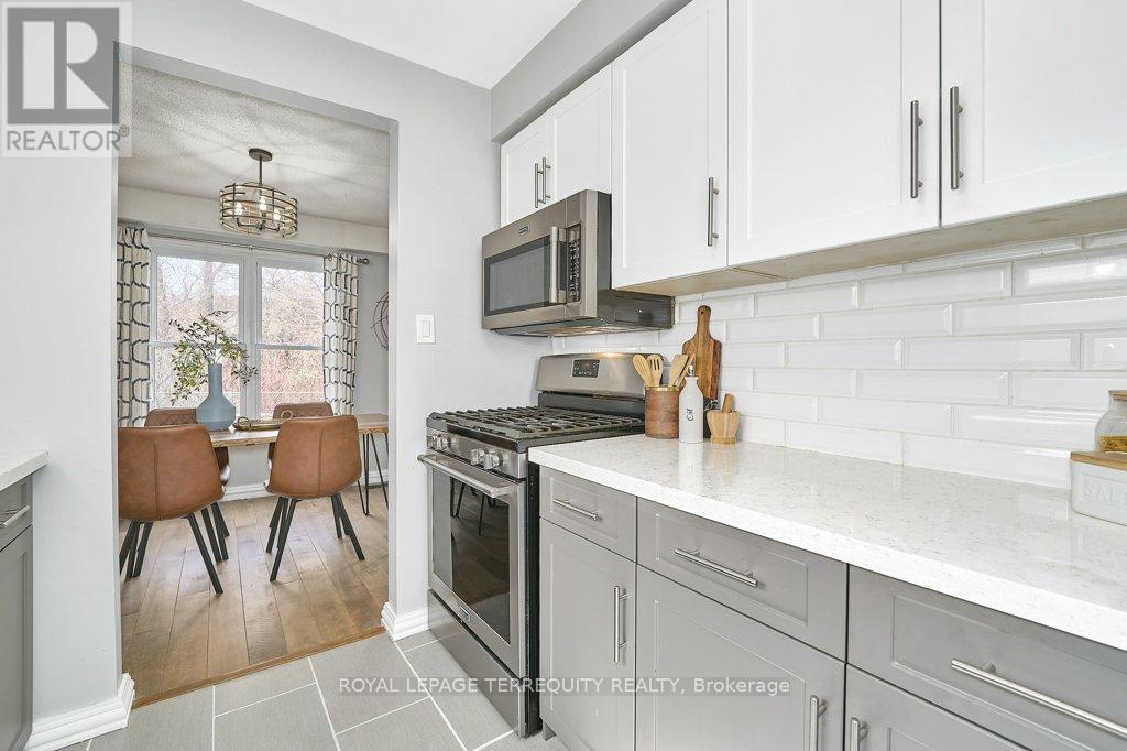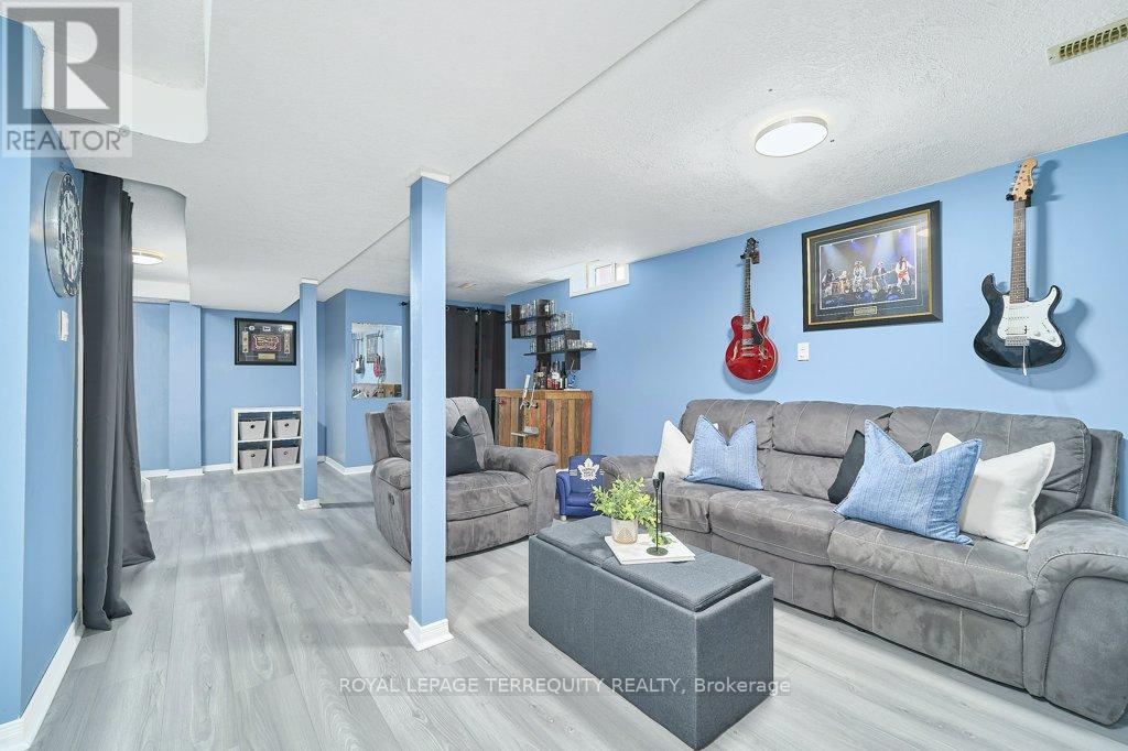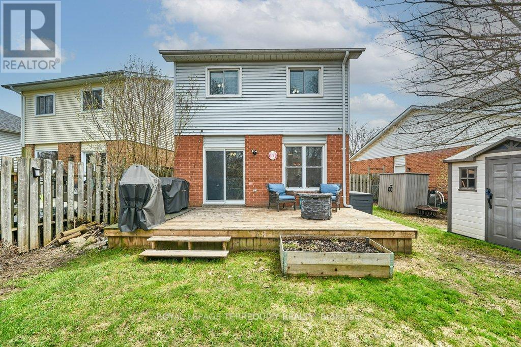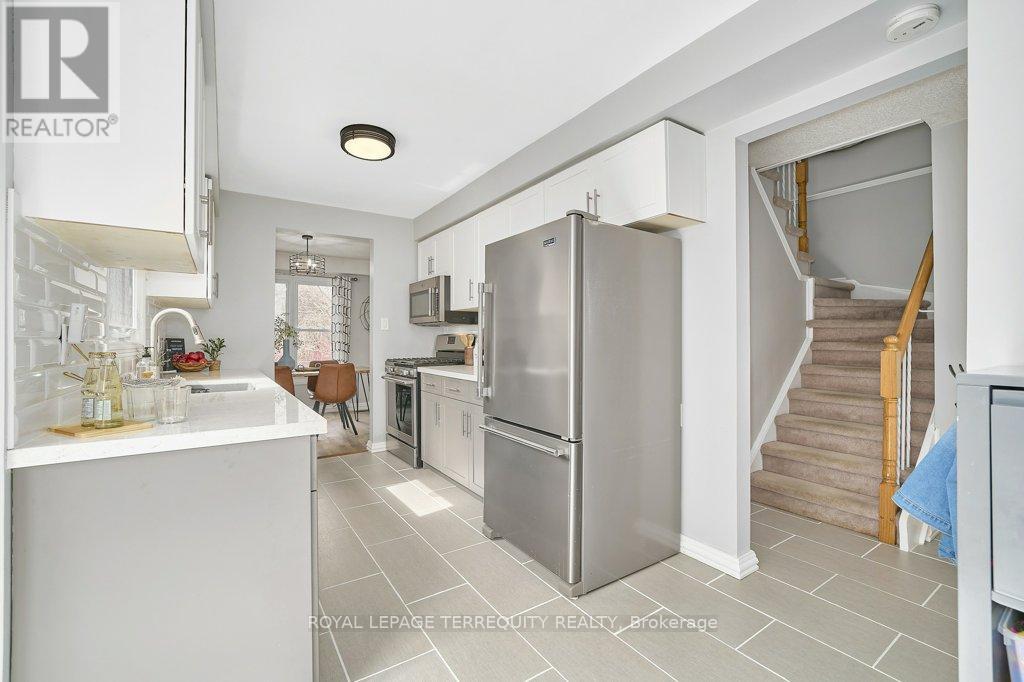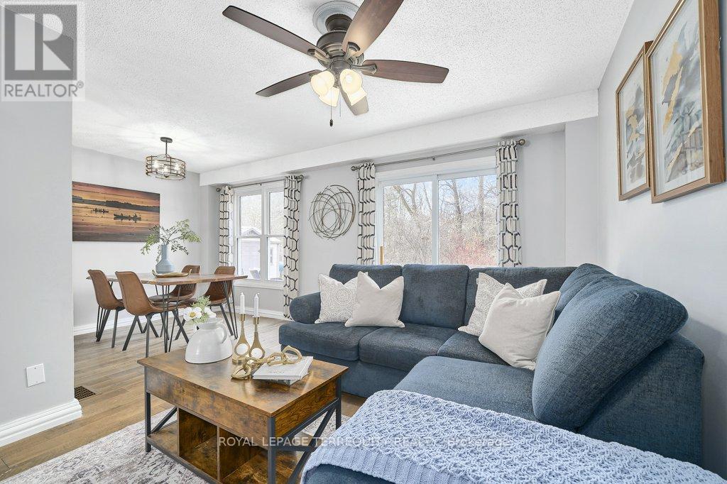 Peaceful, private, perfect! Welcome to this beautifully updated family home nestled in a desirable Courtice neighbourhood! Ideally located just minutes from shopping, transit, schools, and with convenient access to Highways 401 and 407, this home offers the perfect balance of tranquility and connectivity. Step inside to a warm and inviting foyer that leads into the open-concept living and dining area, highlighted by hand-scraped silver maple hardwood flooring. The updated kitchen is a true standout, featuring sleek quartz countertops, abundant cabinetry, and generous prep space - perfect for both everyday living and entertaining. Enjoy your morning coffee in the sunlit breakfast nook, where large windows flood the space with natural light. A walkout patio door seamlessly connects indoor and outdoor living, creating an ideal setting for relaxing or hosting guests. Upstairs, you'll find three generously sized bedrooms, each with ample closet space, along with a beautifully updated family bathroom. The finished lower level expands your living space with a versatile recreation room - perfect for movie nights, a playroom, or a home gym, plus an additional nook that can easily adapt to your lifestyle needs. Outdoors, the impressive pie-shaped backyard is your private retreat. Whether you're hosting summer barbecues on the deck or enjoying peaceful afternoons surrounded by nature, there's plenty of room for the whole family to unwind and play. This exceptional home truly has it all-don't miss your chance to make it yours! ** This is a linked property.** (id:43681)