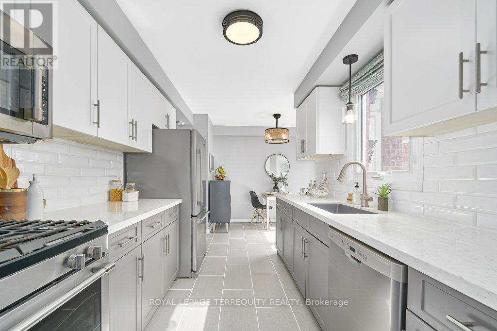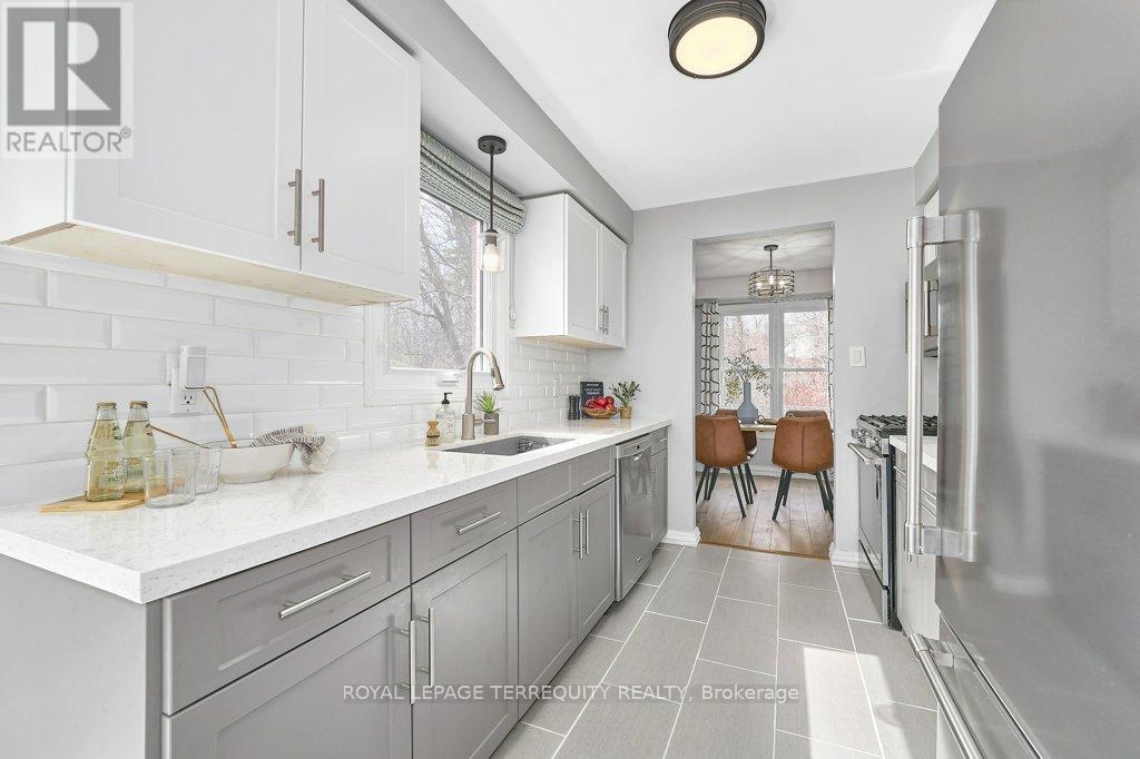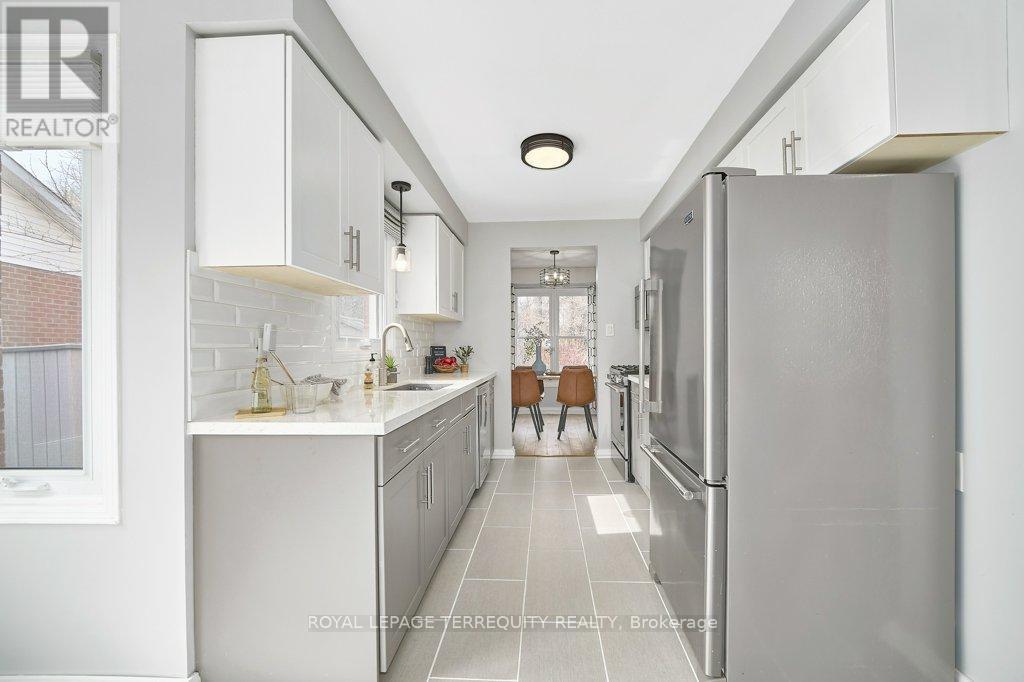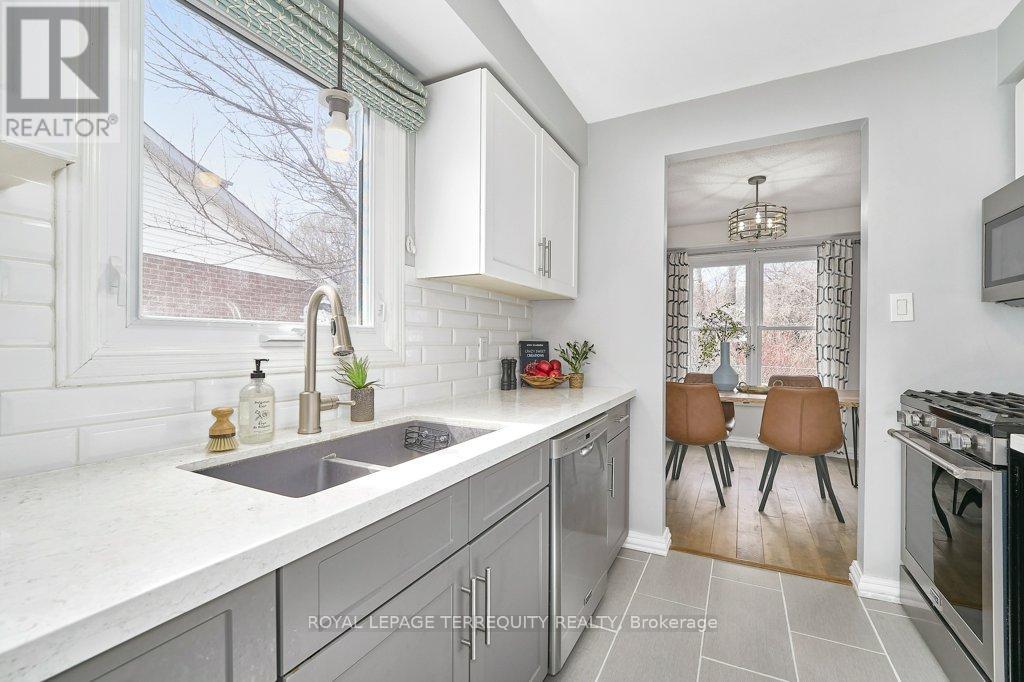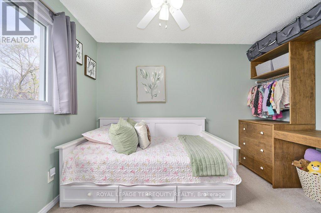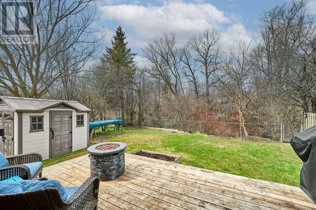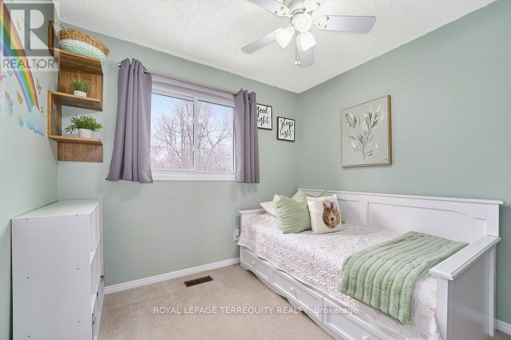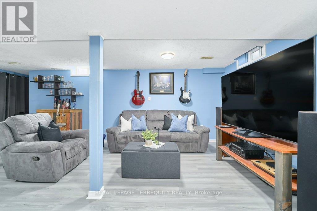 Peaceful, private, perfect! Welcome to this beautifully updated family home nestled in a desirable Courtice neighbourhood! Ideally located just minutes from shopping, transit, schools, and with convenient access to Highways 401 and 407, this home offers the perfect balance of tranquility and connectivity. Step inside to a warm and inviting foyer that leads into the open-concept living and dining area, highlighted by hand-scraped silver maple hardwood flooring. The updated kitchen is a true standout, featuring sleek quartz countertops, abundant cabinetry, and generous prep space - perfect for both everyday living and entertaining. Enjoy your morning coffee in the sunlit breakfast nook, where large windows flood the space with natural light. A walkout patio door seamlessly connects indoor and outdoor living, creating an ideal setting for relaxing or hosting guests. Upstairs, you'll find three generously sized bedrooms, each with ample closet space, along with a beautifully updated family bathroom. The finished lower level expands your living space with a versatile recreation room - perfect for movie nights, a playroom, or a home gym, plus an additional nook that can easily adapt to your lifestyle needs. Outdoors, the impressive pie-shaped backyard is your private retreat. Whether you're hosting summer barbecues on the deck or enjoying peaceful afternoons surrounded by nature, there's plenty of room for the whole family to unwind and play. This exceptional home truly has it all-don't miss your chance to make it yours! ** This is a linked property.** (id:43681)