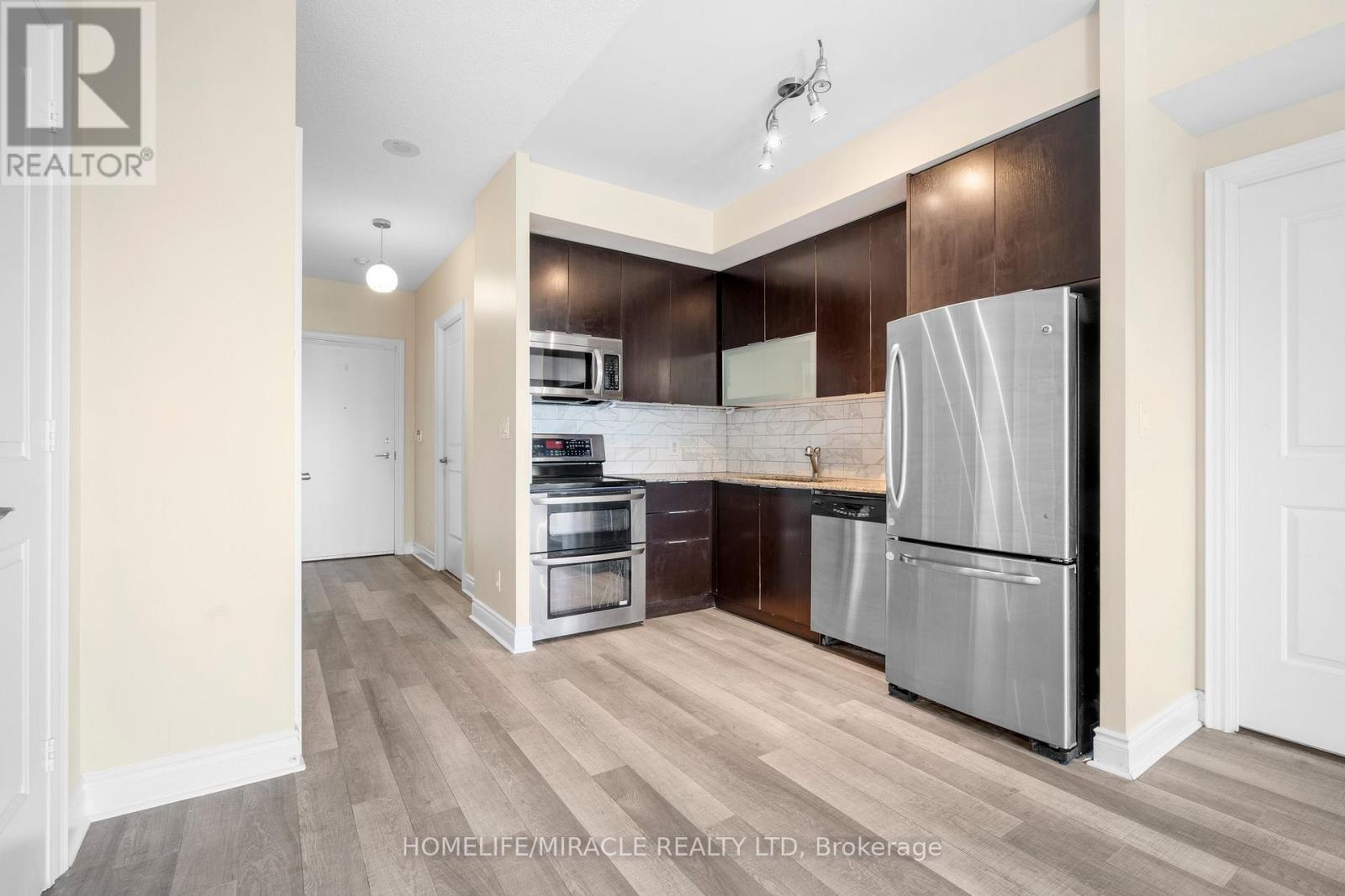 Experience elevated waterfront living in this exceptional 2-bedroom, 2-bathroom residence at Nautilus at Waterview, perfectly positioned in Toronto's vibrant Mimico community. Perched on the 26th floor, this beautifully designed 802 sq. ft. suite delivers a rare combination of style, comfort, and truly breathtaking southeast views stretching across Lake Ontario and the iconic CN Tower. From the moment you step inside, you're welcomed by a bright, open-concept layout with soaring 9-foot ceilings and dramatic floor-to-ceiling windows that flood the space with natural light. The contemporary kitchen is thoughtfully upgraded with sleek stone countertops, s/s appliances, and ample cabinetry-perfectly flowing into the living and dining area, making it ideal for both relaxed everyday living and effortless entertaining. The spacious primary bedroom offers a private retreat, complete with a walk-in closet and a modern 3-piece ensuite. The second bedroom stands out with direct balcony access-perfect for morning coffee or evening unwinding with skyline views. Step outside to your large private balcony and take in uninterrupted lake and city vistas that truly set this home apart from anything else on the market. Includes 1 parking & locker, adding practicality to its luxurious appeal. Residents enjoy resort-style amenities including a 24-hr concierge, fitness center, indoor pool, hot tub, sauna, yoga studio, party and media rooms, rooftop terrace with BBQs, guest suites, and more-everything designed to enhance your lifestyle. Located just steps from the waterfront, scenic trails, parks, and transit, with seamless access to the Gardiner Expressway, this condo offers unmatched connectivity. Whether commuting downtown or enjoying lakeside leisure, everything is at your doorstep. (id:43681)
