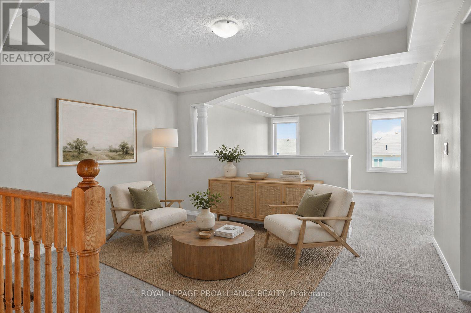 Welcome to this attractive end-unit townhome in the sought-after Jackson Creek Meadows neighbourhood. This 2-storey home offers 3 bed and 2.5 bath, with a functional layout designed for comfortable everyday living. A lovely, spacious front porch leads into a welcoming foyer and bright, open-concept main floor. The kitchen, dining, and living areas flow seamlessly together, with convenient access to the back deck. Upstairs, you'll find three large bedrooms, including the primary suite complete with a walk-in closet and ensuite. A second 4-piece bathroom and upper-level laundry add to the home's practical appeal. The unfinished lower level features a walk-out to the backyard and offers excellent potential for future living space. Located in a family-friendly west-end neighbourhood, this home is steps to the neighbourhood park, neighbourhood mall, and close to local schools, and the Jackson Creek Rotary Trail; perfect for walking, biking, and enjoying the outdoors. A wonderful opportunity to settle into one of Peterborough's welcoming and established communities. Pre-Inspected for added peace of mind. (id:43681)