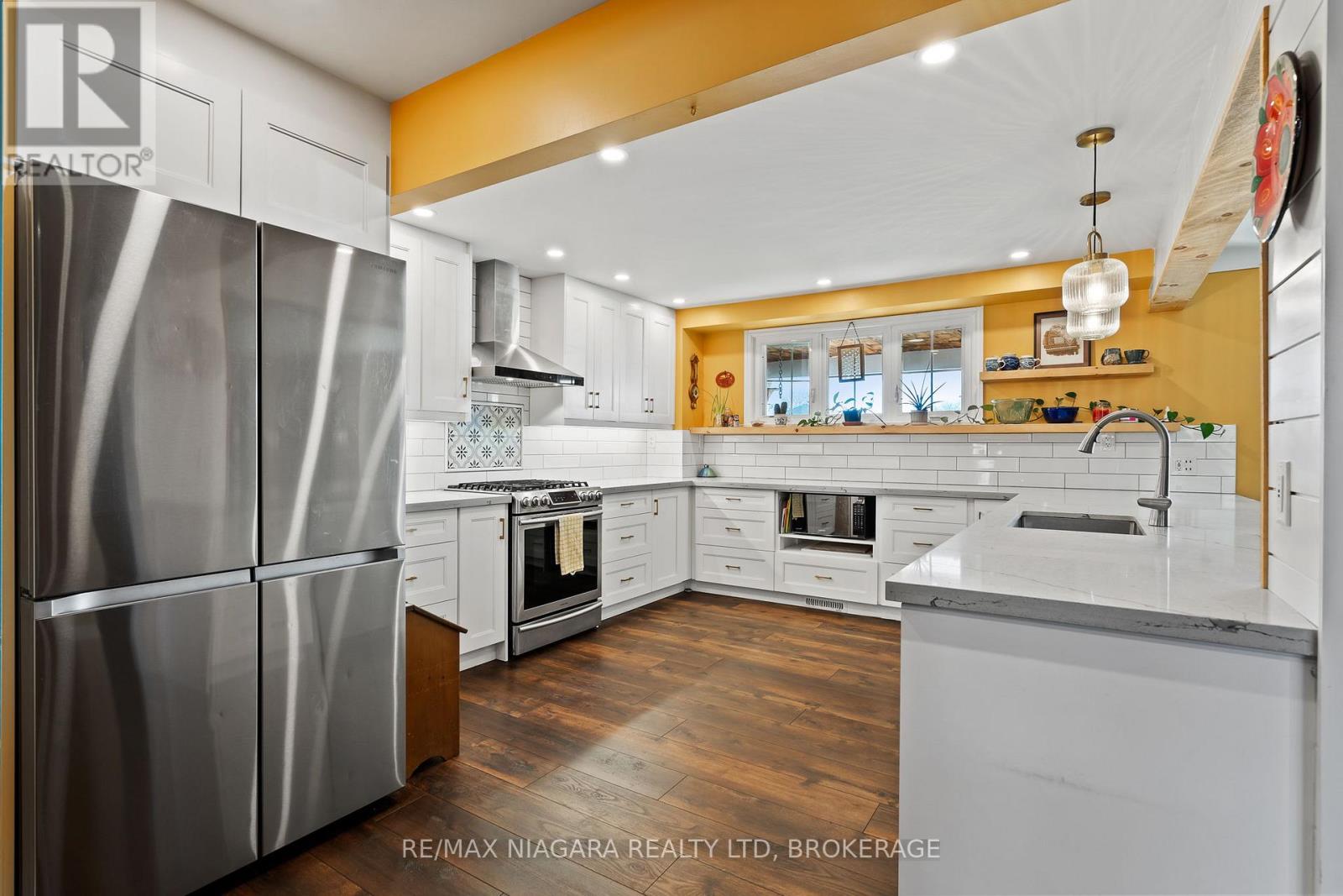 **OPEN HOUSE SAT/SUN MARCH 14 & 15 from 2-4PM** This is it! An updated 4+1 bed family home with new sunroom located in St. Catharines. Features a one-bedroom in-law suite in the basement with a separate entrance-ideal for multi-gen living or extra rental income. The bright and inviting main floor showcases an open-concept layout filled with natural light and warm hardwood flooring. Expansive living and dining area that flows seamlessly into the spacious kitchen, new in 2024. The kitchen features a large island, stainless steel appliances making this a chef's dream. Large walk-in pantry is a ideal for home cooks and bakers alike. The main level is completed by a convenient 2-piece powder room, mud room, spacious laundry room and new sunroom recently added in 2024. Upstairs, the large primary bedroom offers a walk-in closet and a private 3-piece ensuite. Three additional bedrooms and a stylish 5-piece bathroom provide plenty of space for family and guests. The fully finished basement includes a separate one-bedroom in-law suite with its own entrance, offering flexibility for extended family or potential rental income. Step outside to enjoy a private backyard designed for relaxation and entertaining. The outdoor space features an above-ground pool with new liner/filter/pump, hot tub, and beautiful landscaping creating a peaceful garden setting. EXTRAS: 200-amp electrical service with new wiring (2021), roof (2020), furnace (2020), and owned HWT (2021). Conveniently located close to schools, parks, shopping, and a major transit route, this move-in-ready home offers space, comfort, and versatility for today's modern family. (id:43681)