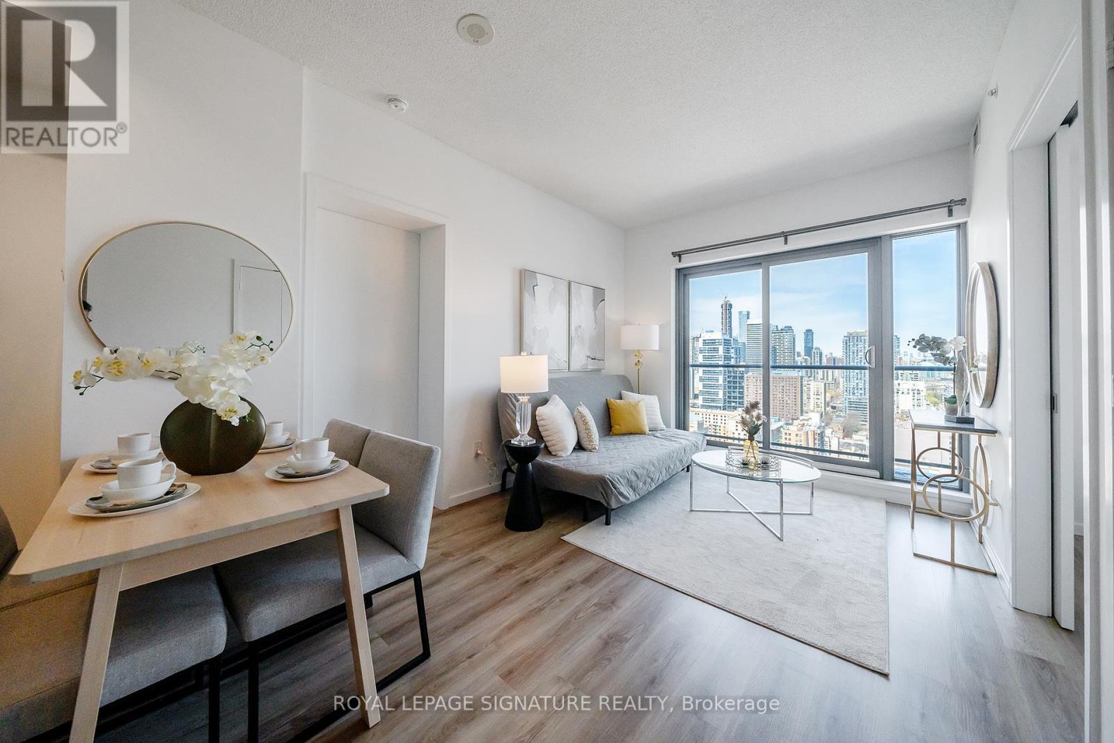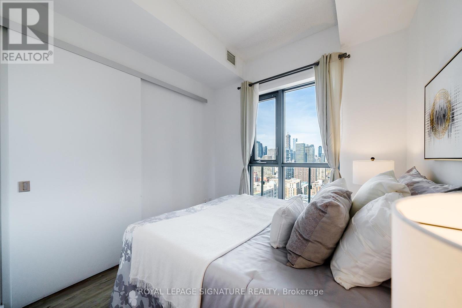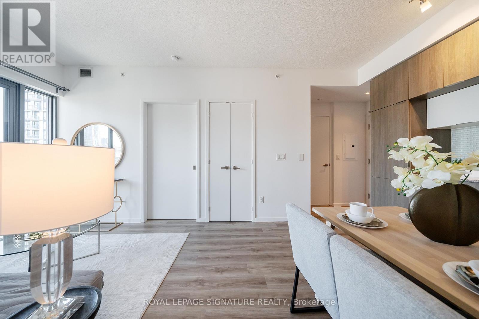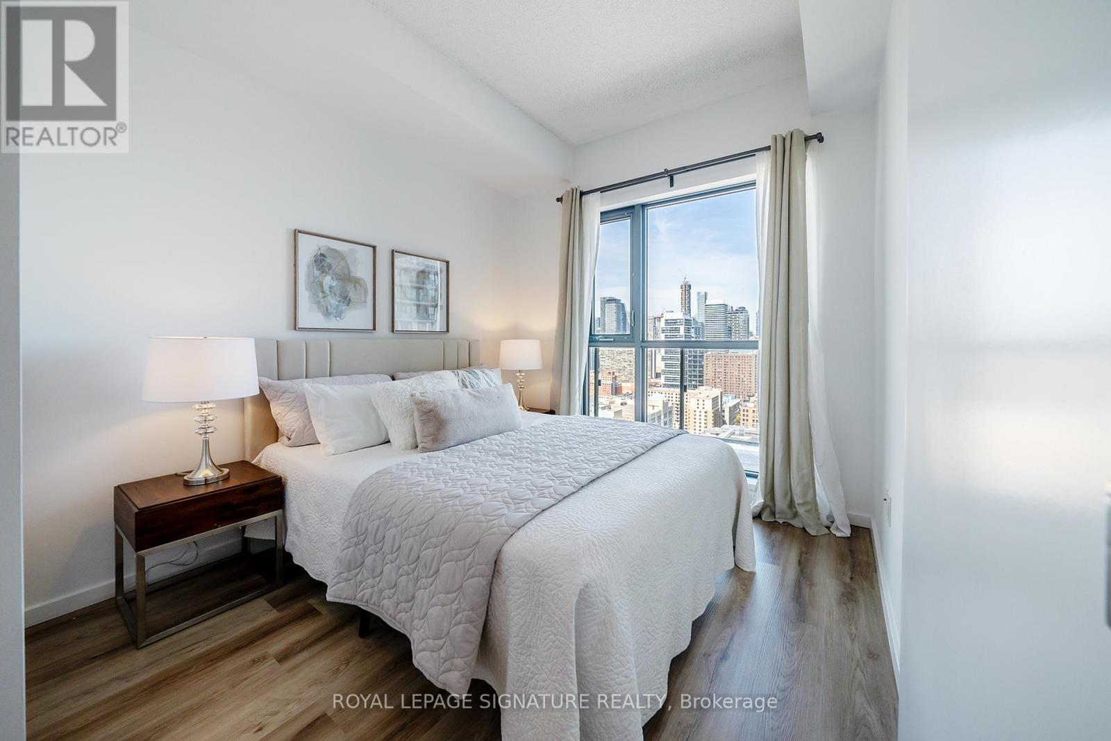 $665.53 每月Welcome to this bright and thoughtfully designed 2-bedroom, 2-bathroom suite features a highly desirable split-bedroom layout with excellent use of space, perfect for comfortable urban living. Vinyl flooring runs throughout, while the open-concept living, dining, and kitchen area offers plenty of room for both everyday living and entertaining, with walk-out access to the balcony. Both bedrooms showcase floor-to-ceiling windows that bring in abundant natural light. The generously sized primary bedroom includes a private ensuite bathroom for added convenience and comfort. Enjoy clear north-facing views, modern finishes, and contemporary appliances throughout. Situated in one of downtown Toronto's most convenient locations, just steps to Toronto Metropolitan University, CF Toronto Eaton Centre, Yonge-Dundas Square, TTC transit, grocery stores, restaurants, hospitals, and everyday essentials. Walkable to University of Toronto, with easy access to the Financial District, waterfront, and major highways. Residents enjoy 24-hour security, and the unbeatable central location offers strong long-term value for tenants seeking lifestyle and convenience. (id:43681)