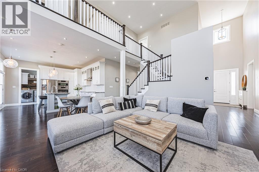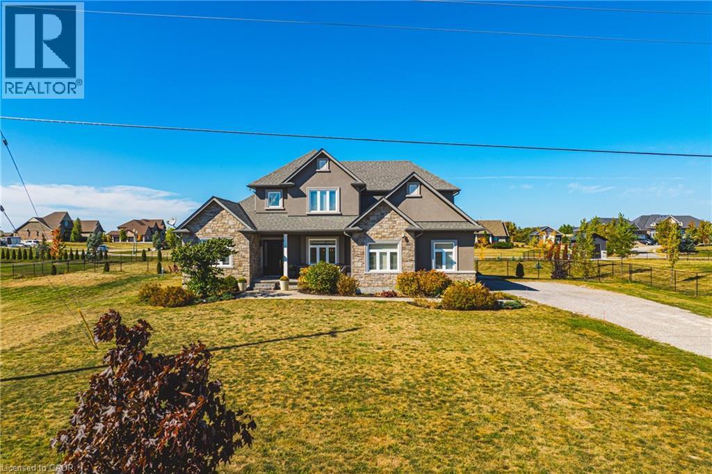 Welcome to 2855 Haldimand Road #9, an executive two-story luxury home on nearly one acre in the prestigious Empire Estates community. Built in 2017 with exceptional detail, this residence blends elegance, space, and versatility , ideal for multigenerational living. From the moment you arrive, the scale and privacy are clear. A wide driveway and 3-car garage provide ample parking for families or guests. Inside, 10-foot main-floor ceilings and 9-foot upstairs ceilings set an impressive tone, complemented by Hunter Douglas blinds and custom built-in closets throughout. The formal dining room offers refined entertaining, while opposite, a main-floor primary suite with ensuite and walk-in closet delivers everyday luxury. At the heart of the home, an open-concept living room and chef’s kitchen form the perfect hub. Outfitted with an induction cooktop, built-in wall oven and microwave, integrated dishwasher, and elegant cabinetry, the kitchen opens to the private backyard. A spacious mudroom with main-floor laundry connects seamlessly to the garage and yard, blending function with style. Upstairs, a lofted sitting area adds openness, while two oversized bedrooms provide flexibility. One includes an ensuite and walk-in closet, ideal as a guest suite or secondary primary. The finished lower level offers a potential in-law suite with sleek kitchen, bedroom, three-piece bath, laundry, and cozy fireplace , perfect for extended family or guests. Mechanical highlights include a new pressure tank for the 3000-gallon cistern (2025), professionally cleaned septic (2024), air exchanger, and alarm system, while the chain-link fence (2022) secures the property. 2855 Haldimand Road #9 is more than a home , it’s a lifestyle investment. Move-in ready, meticulously designed, and offering space to grow, entertain, and live in luxury within the serene Empire Estates. (id:43681)