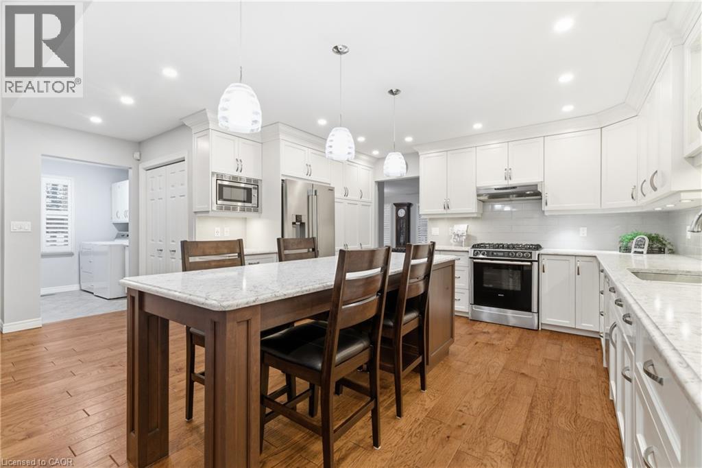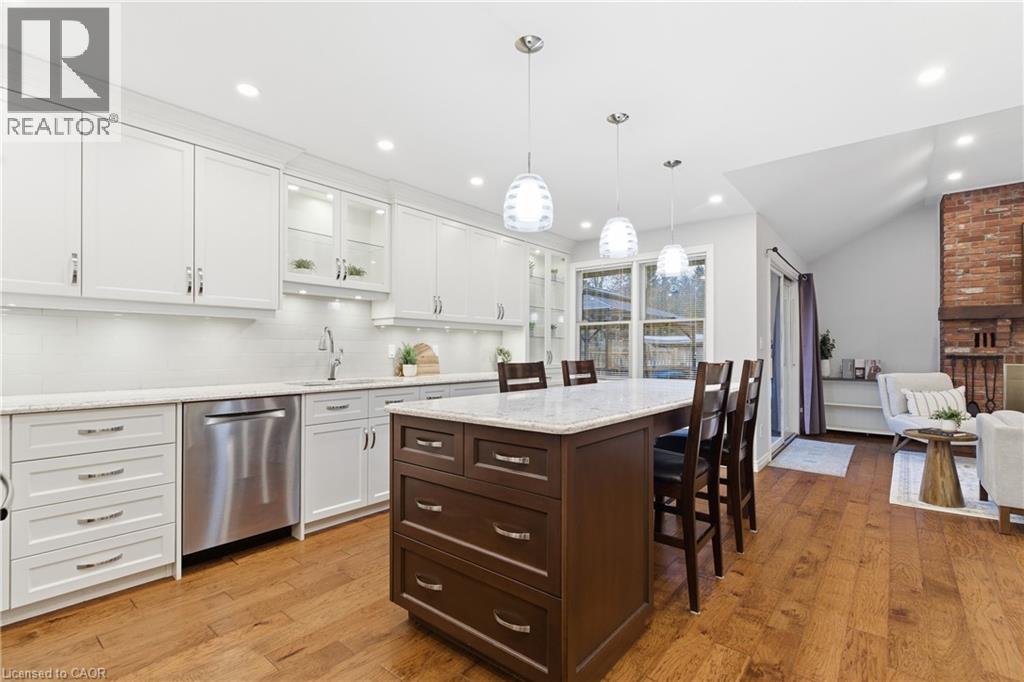 Welcome to this beautifully maintained and fabulously updated Bungalow offering over 3000 sq ft of finished living space with beautiful finishes, exceptional space, and functionality. The renovated Kitchen boasts Custom Cabinetry, a spacious Island, Quartz Countertops, Large Pantry, SS Appliances, Pot lights, and Accent lighting. Adjacent to the Kitchen is a family room with Vaulted Ceiling, brick Fireplace with Gas insert, Pot lights, large Window and Patio Door leading to the private deck. Hickory Engineered Hardwood flows beautifully through the open concept family room from the main floor laundry and throughout the Kitchen. Rich earth toned tile leads to the separate Dining Room, Living Room, Powder Room and Main Foyer. Along with a 4pc bath and 2 additional bedrooms, the Primary bedroom hosts both a great walk in closet and 3 pc ensuite with glass enclosed 5' Shower. The full basement offers a finished rec room with wet bar, full sized SS Fridge, 2 additional bedrooms, and 4 pce bath. Need more space?? No problem! There are still 2 additional areas that can be used for workout area, craft rooms, workshop or even create a great media room! You decide! Situated on a 93'x189' lot, the Fenced Yard, lovely Private Deck, Gazebo, Gas Fire Table, Dble car garage, Oversized Shed, Sprinkler System, and large Circular Front driveway just add to the appeal of this great home! There's no place like home and this could be yours! (id:43681)
